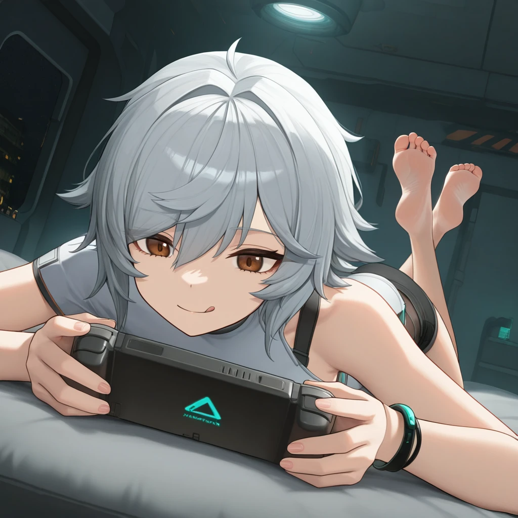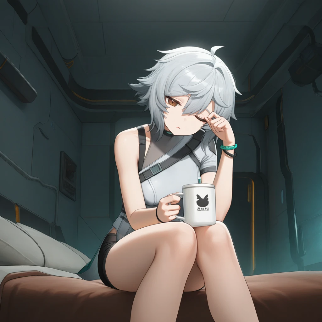 Mechty, grey hair, brown eyes, short hair,Default Outfit: