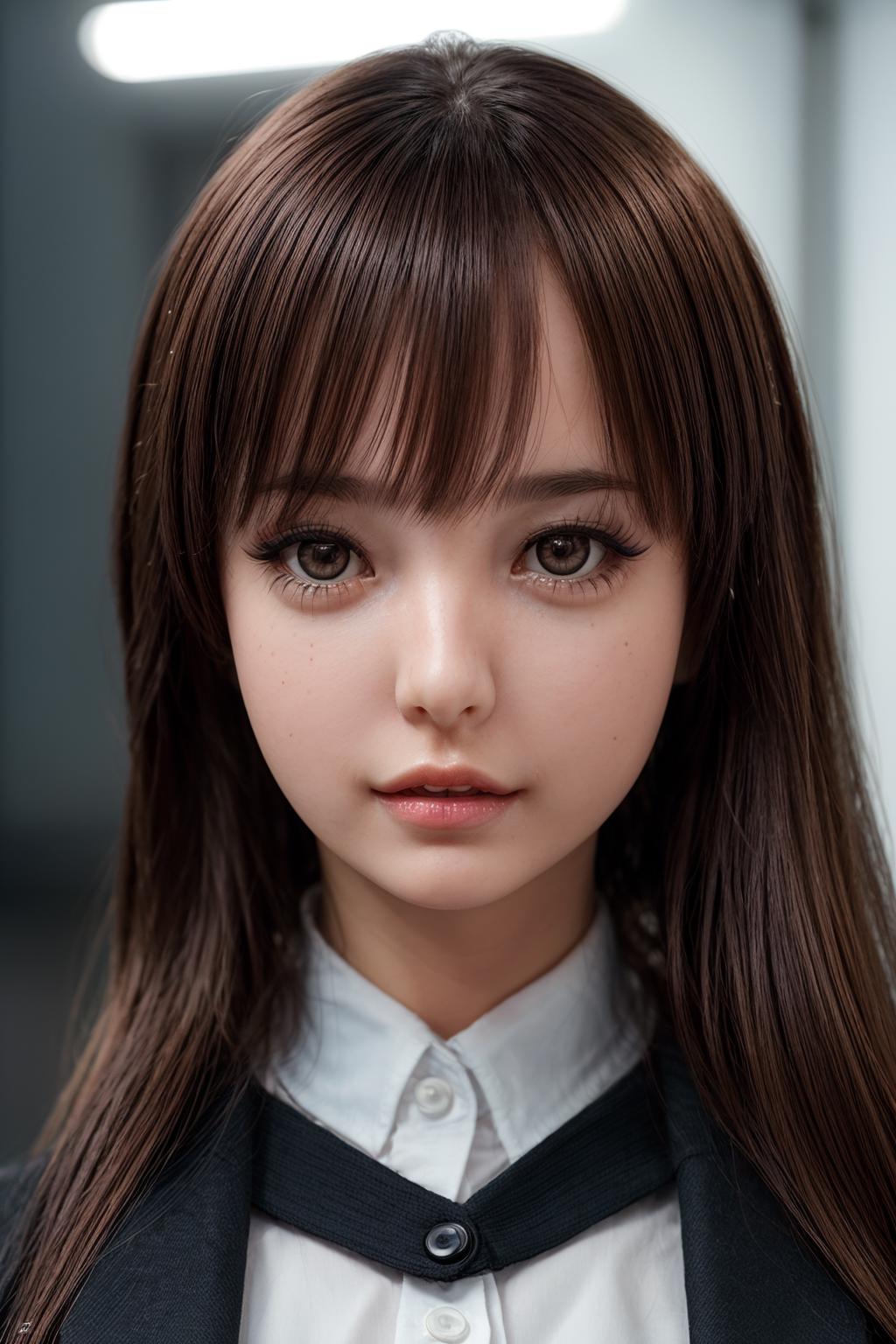 LoRA of Nina (aka Aoi) bestseller real sized silicone doll head produced by DSdoll (aka EXdoll) Chinese lovedoll manufacturer. This head mostly compatible with DS145 (aka UT145, arte145) bodies. For training I chose close up SFW photos of Nina with reddish brown or black eyes and brunet or black wigs. Nina has very interesting and cute look with big eyes and very small nose. She is on half way between real person and anime character.