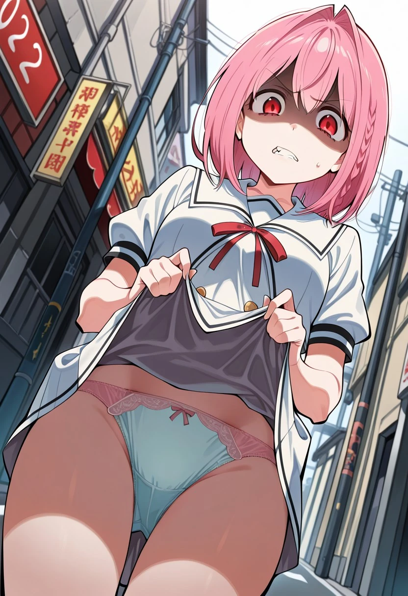 Appearance: Short pink hair (red eyes: 1.2)