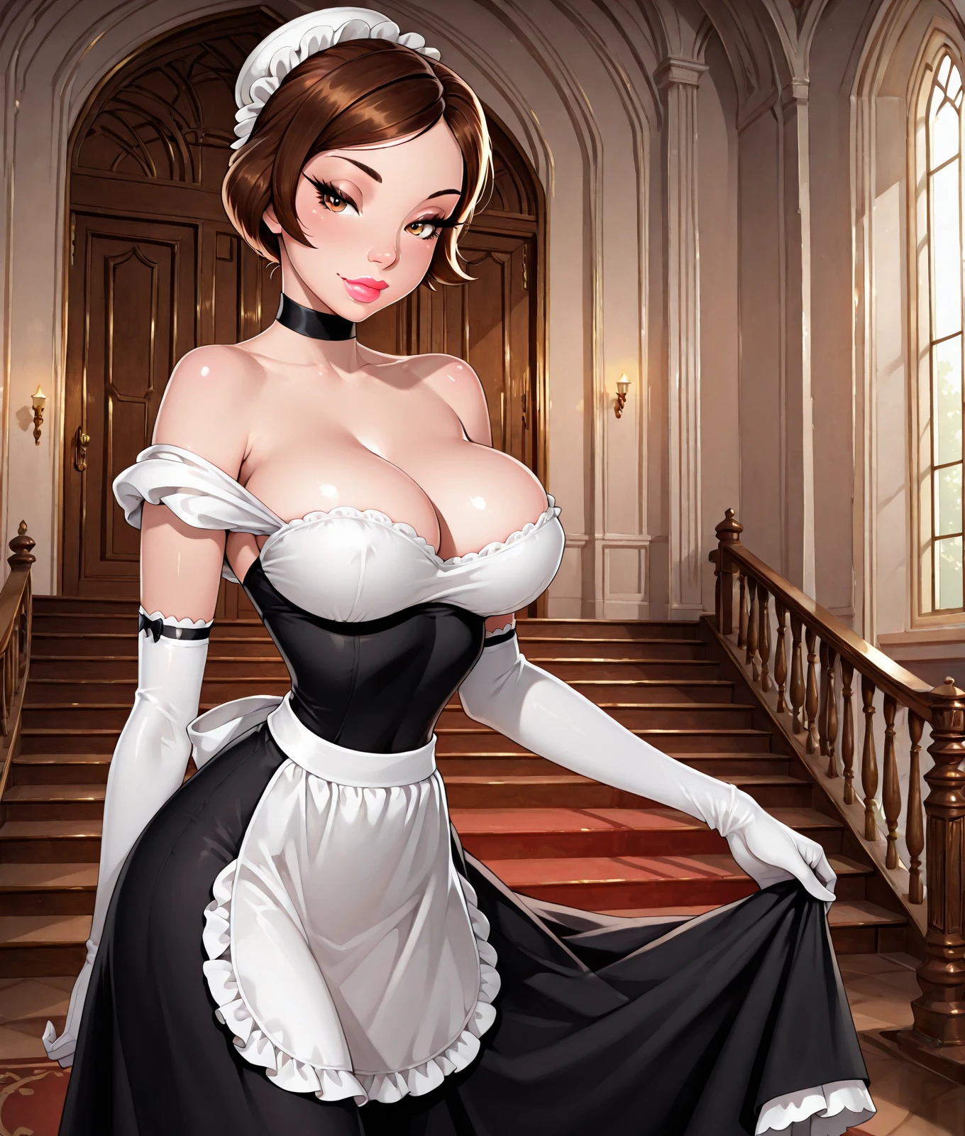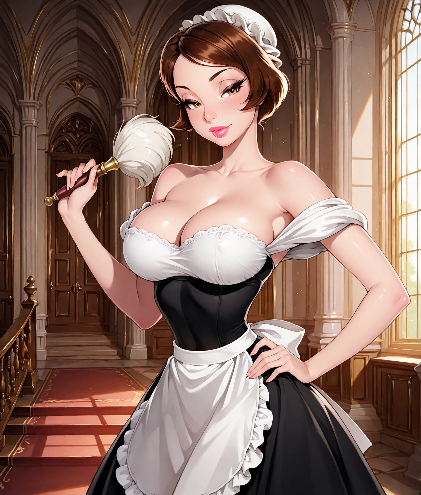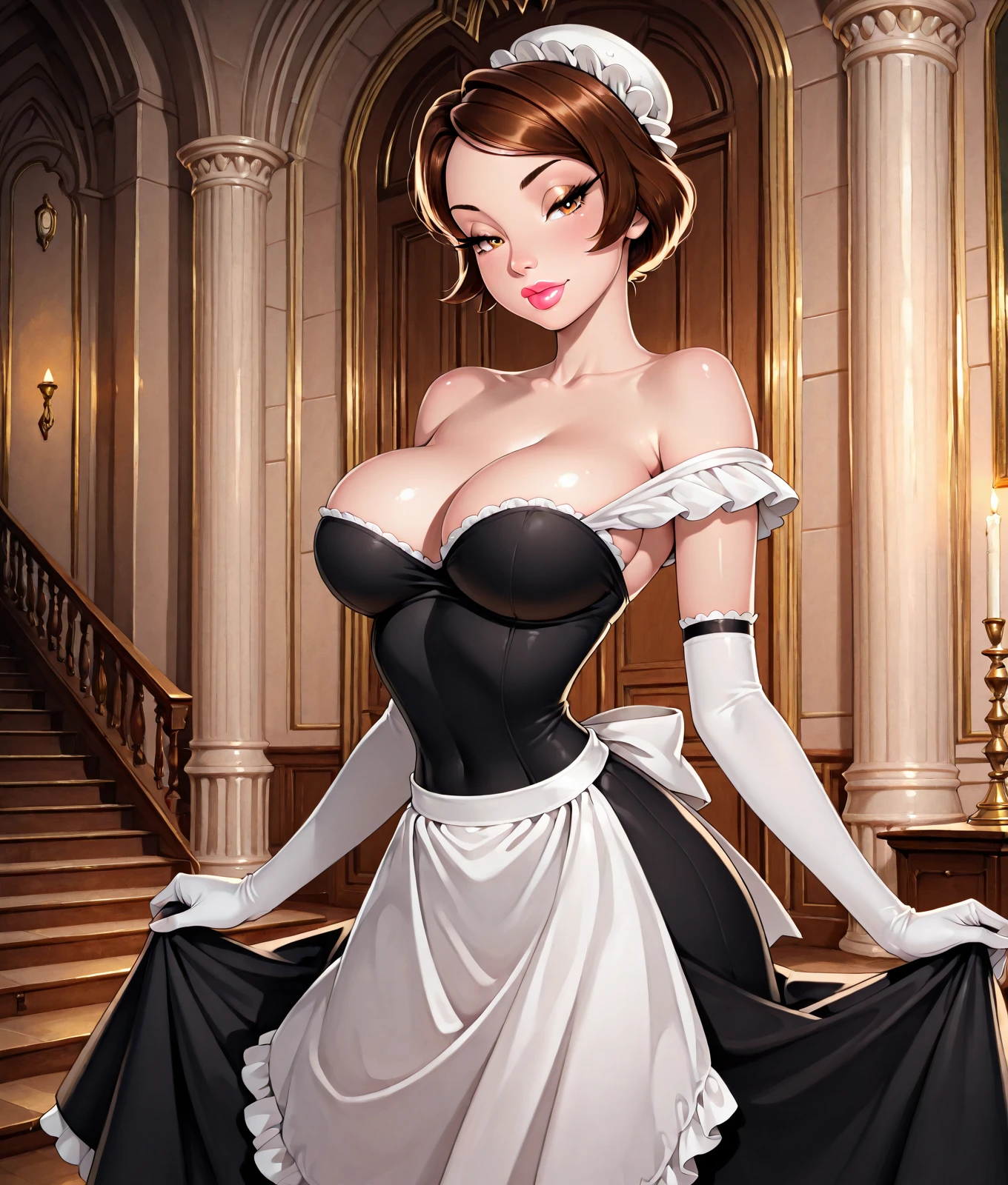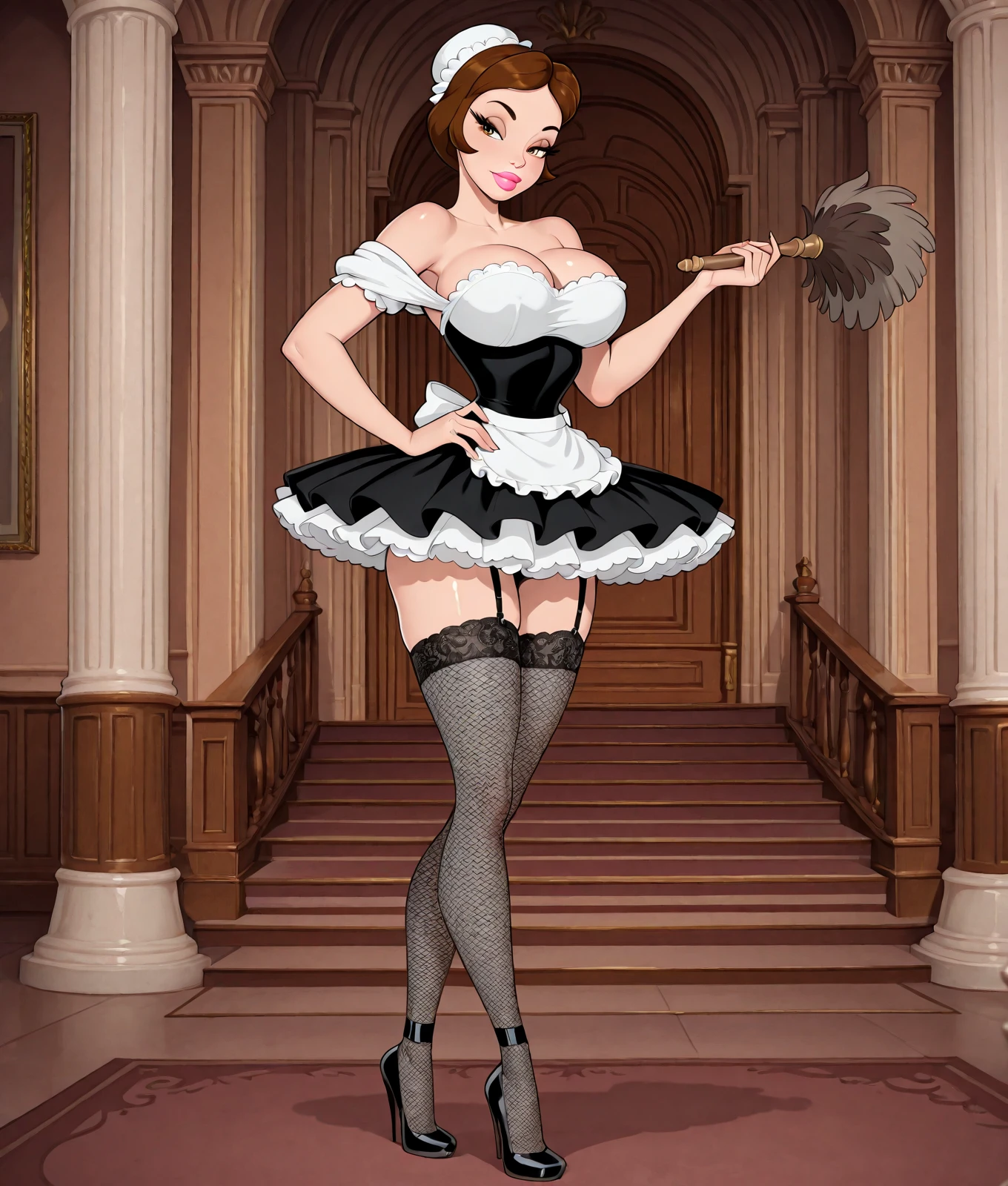 babette, babette_hairstyle, original, parody, brown hair, huge breasts, narrow waist,