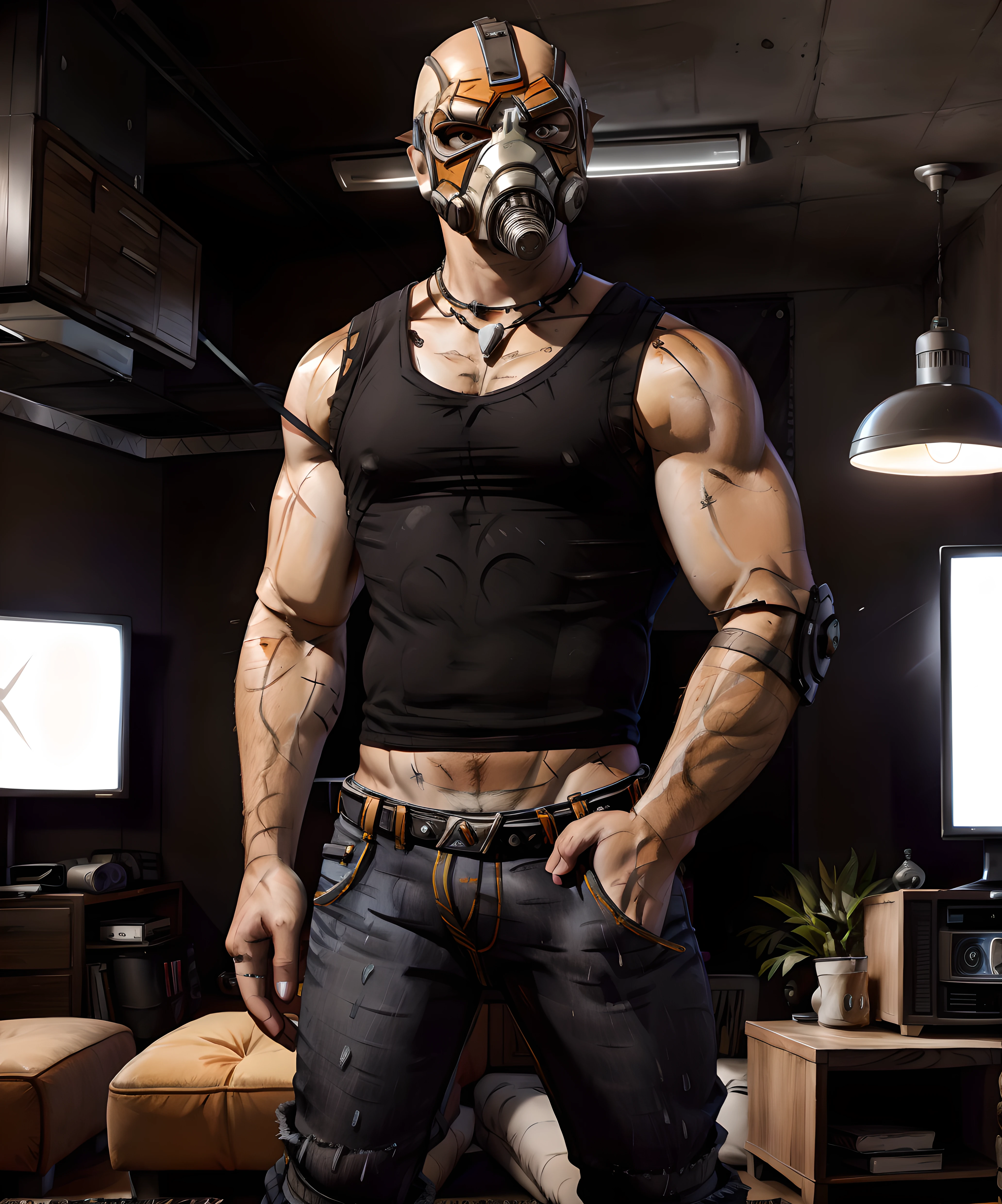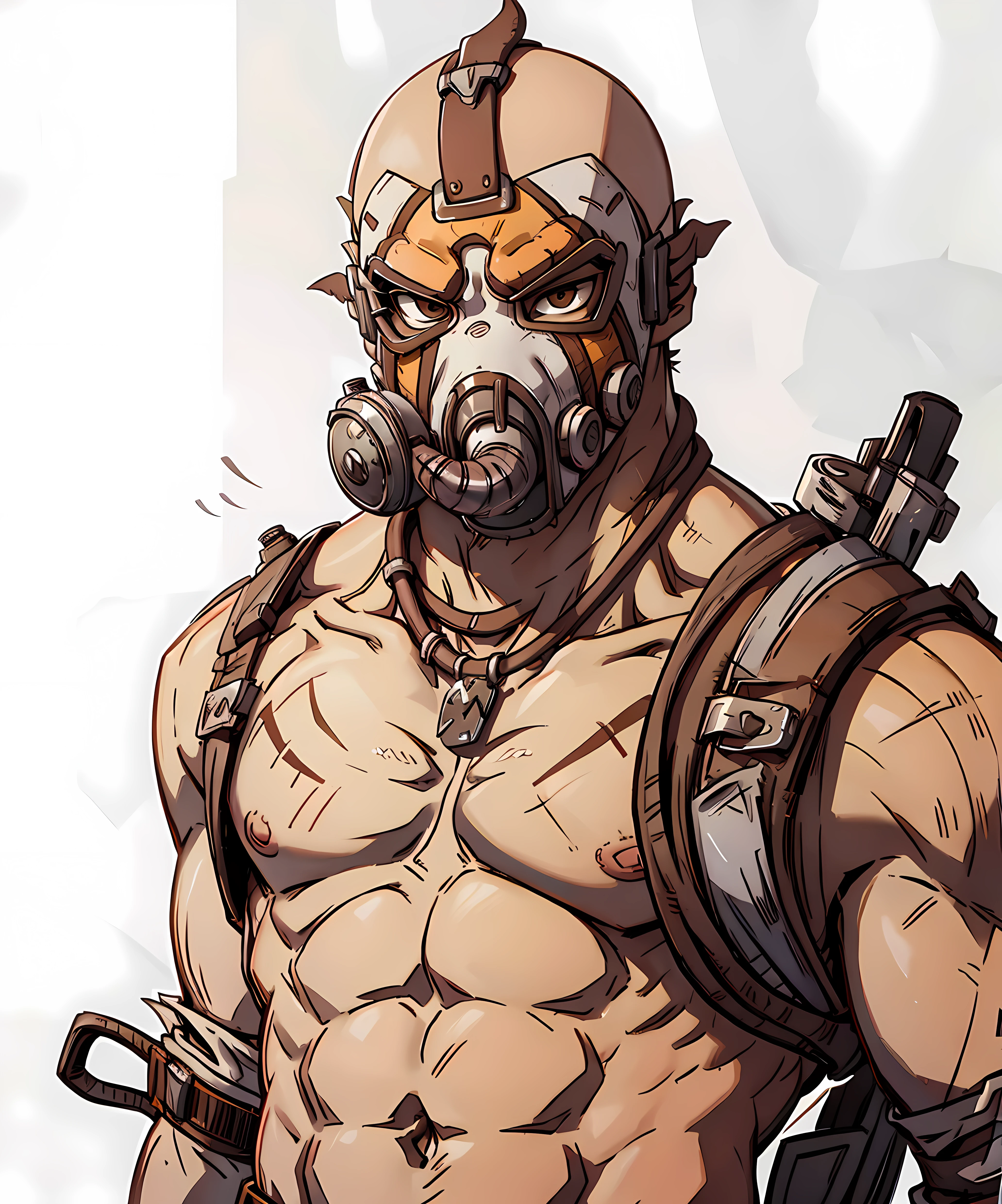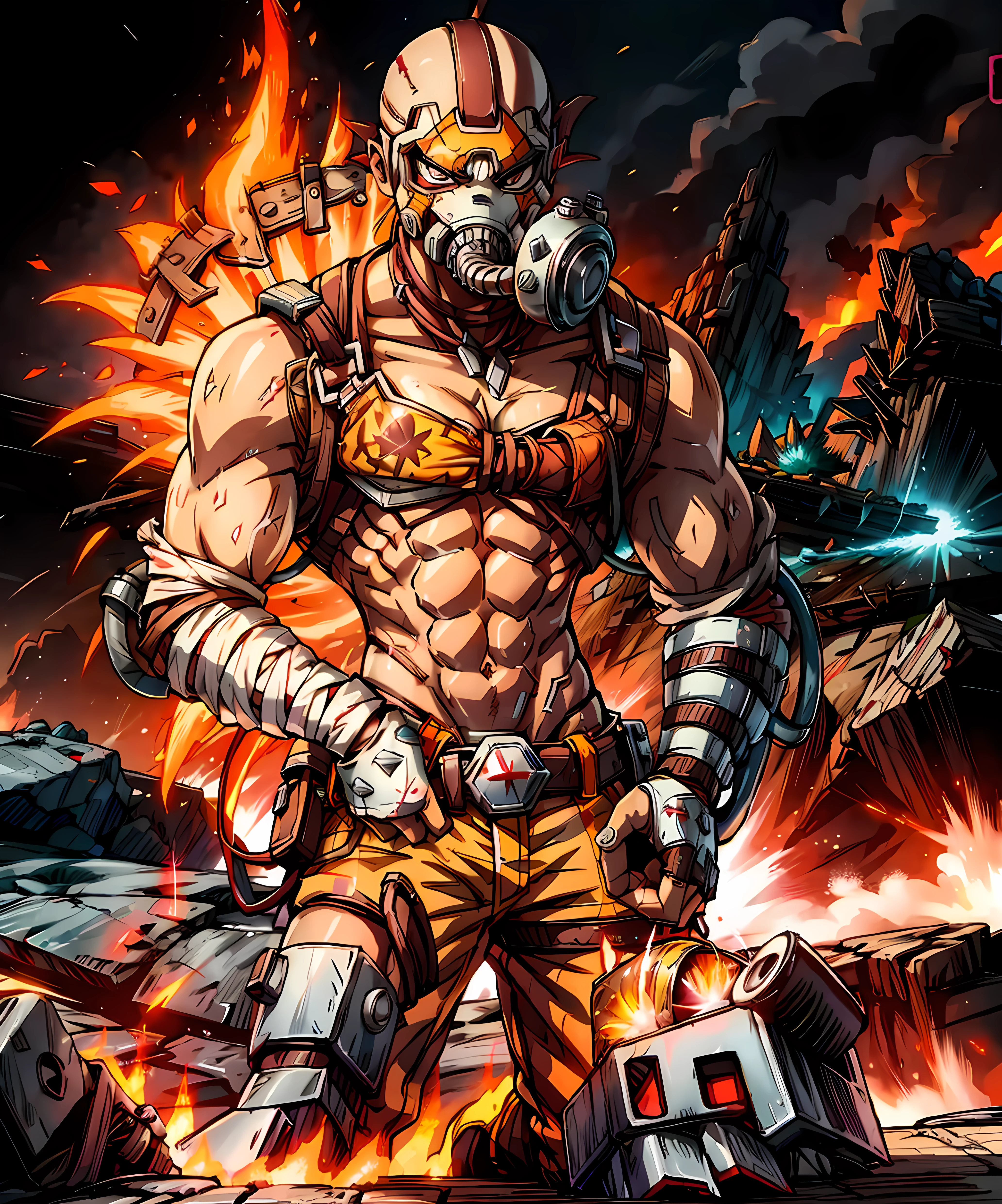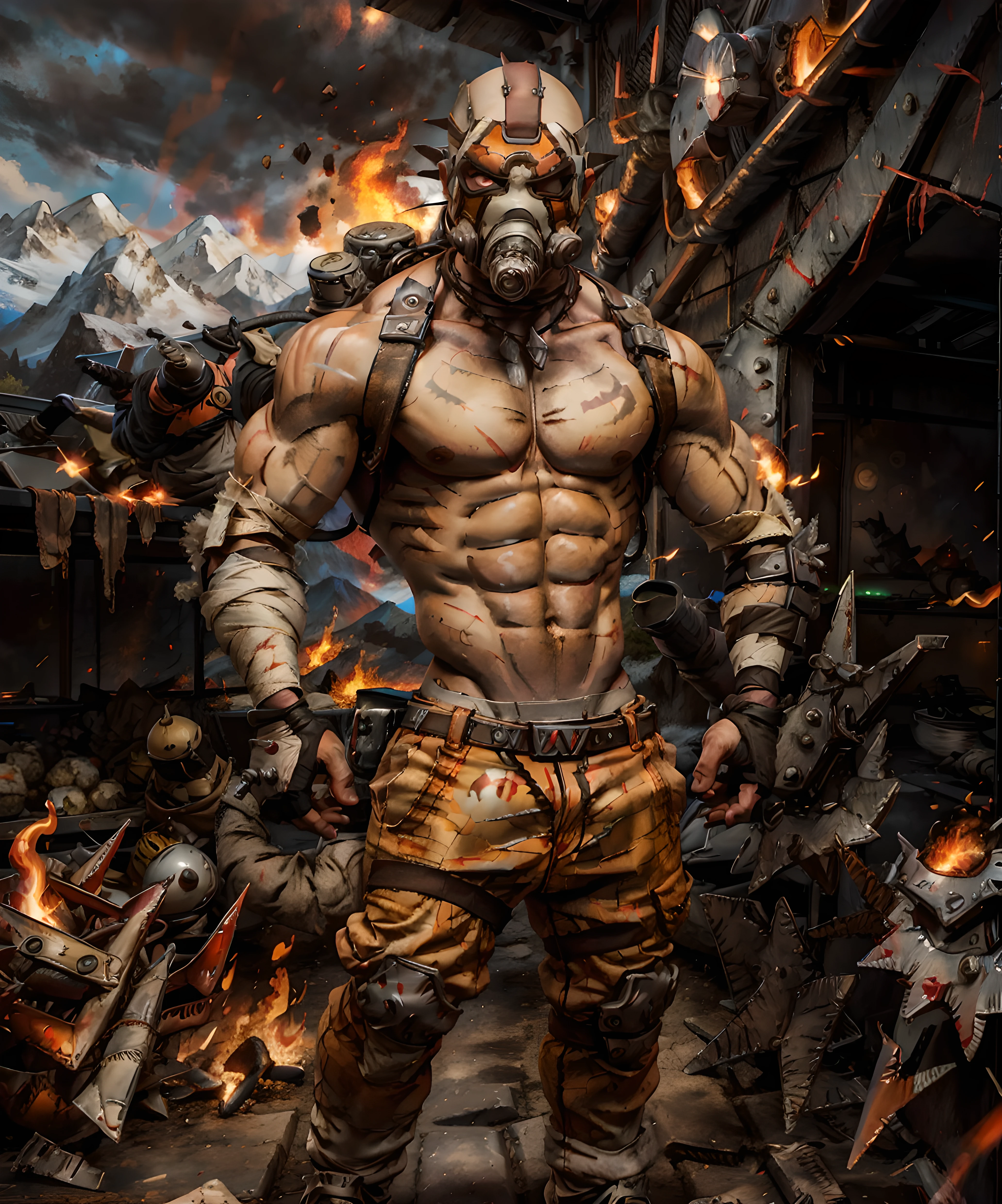 krieg, 1boy, (muscular:1.2), gas mask, standing, wasteland
