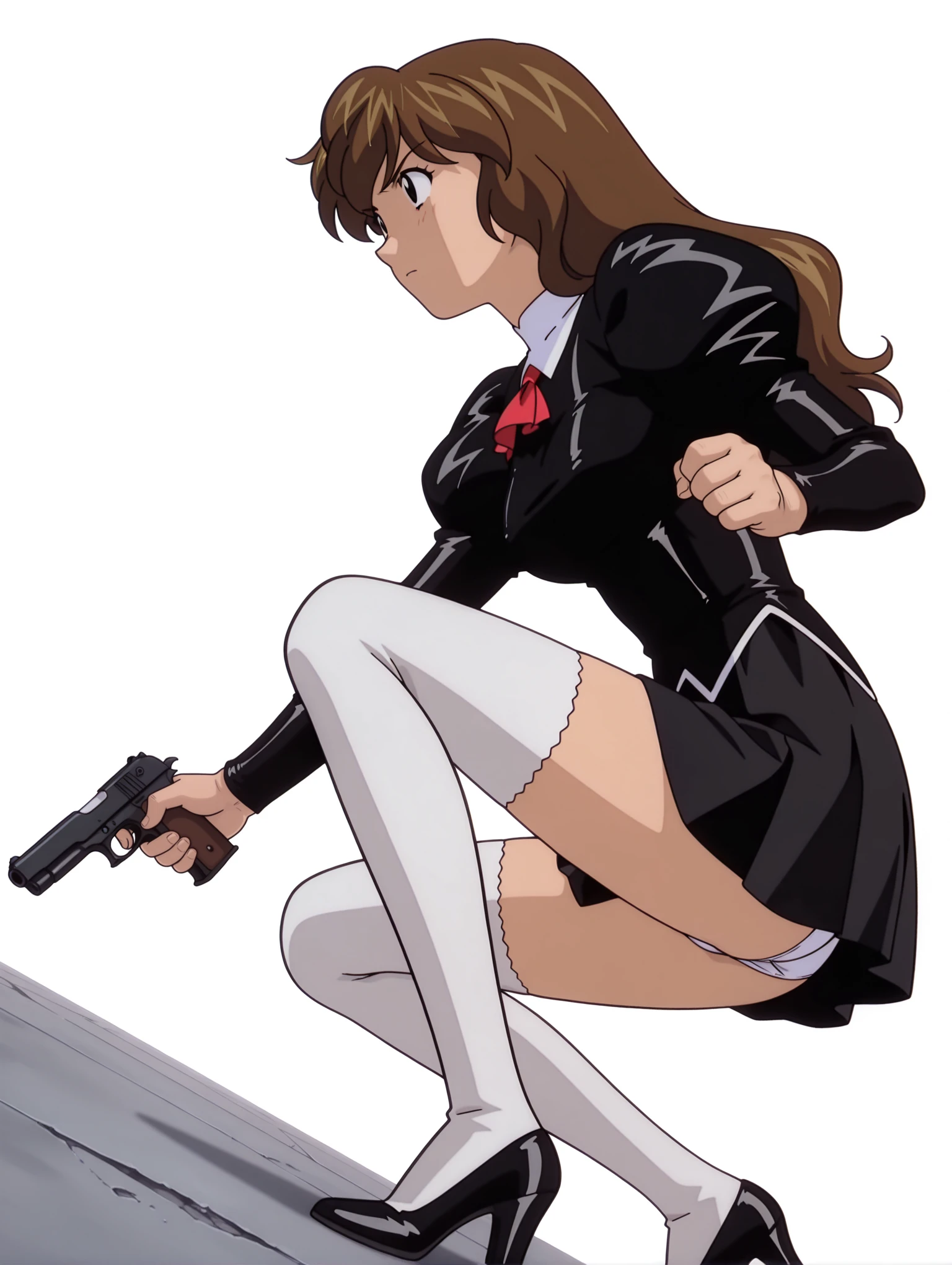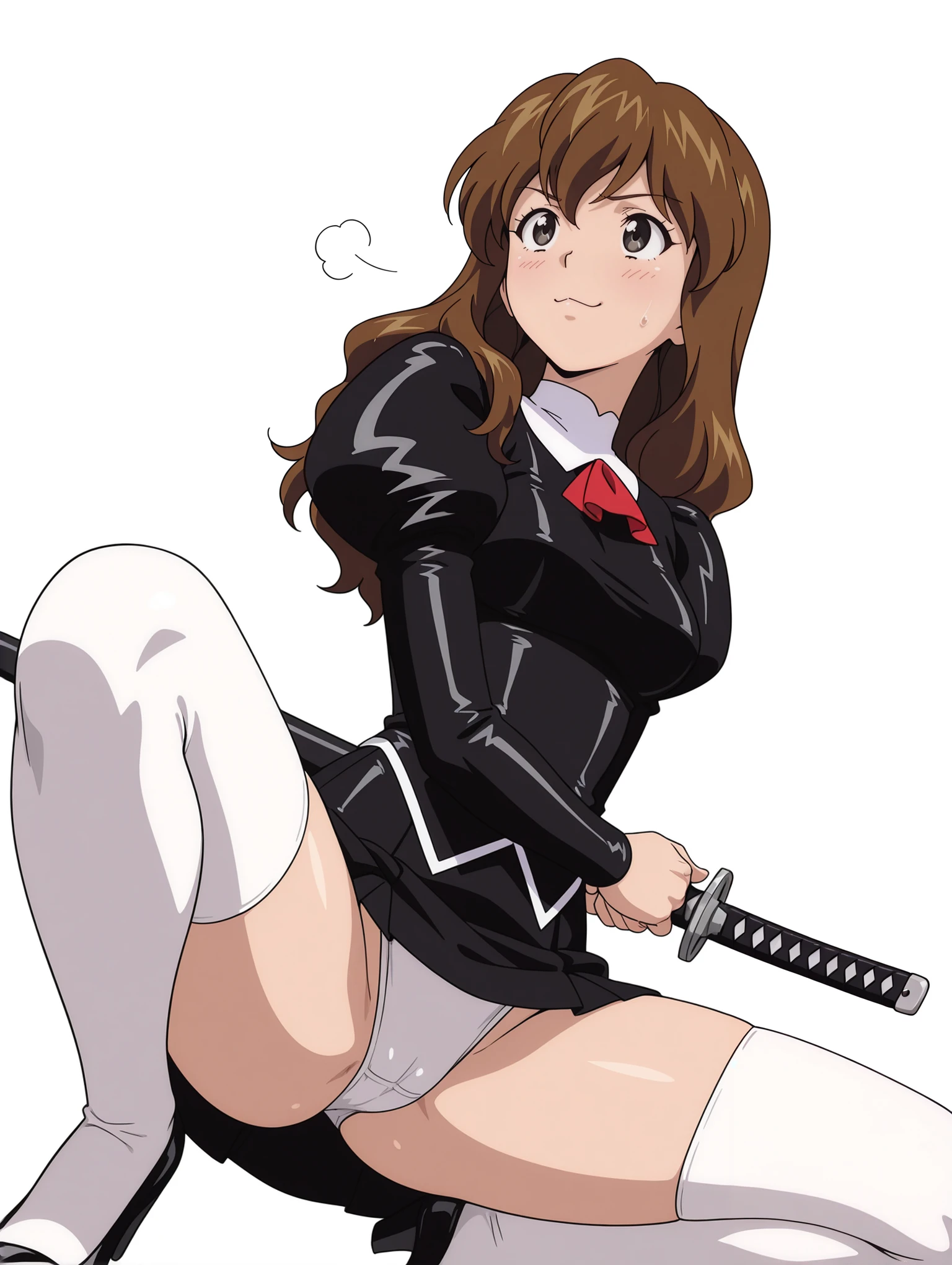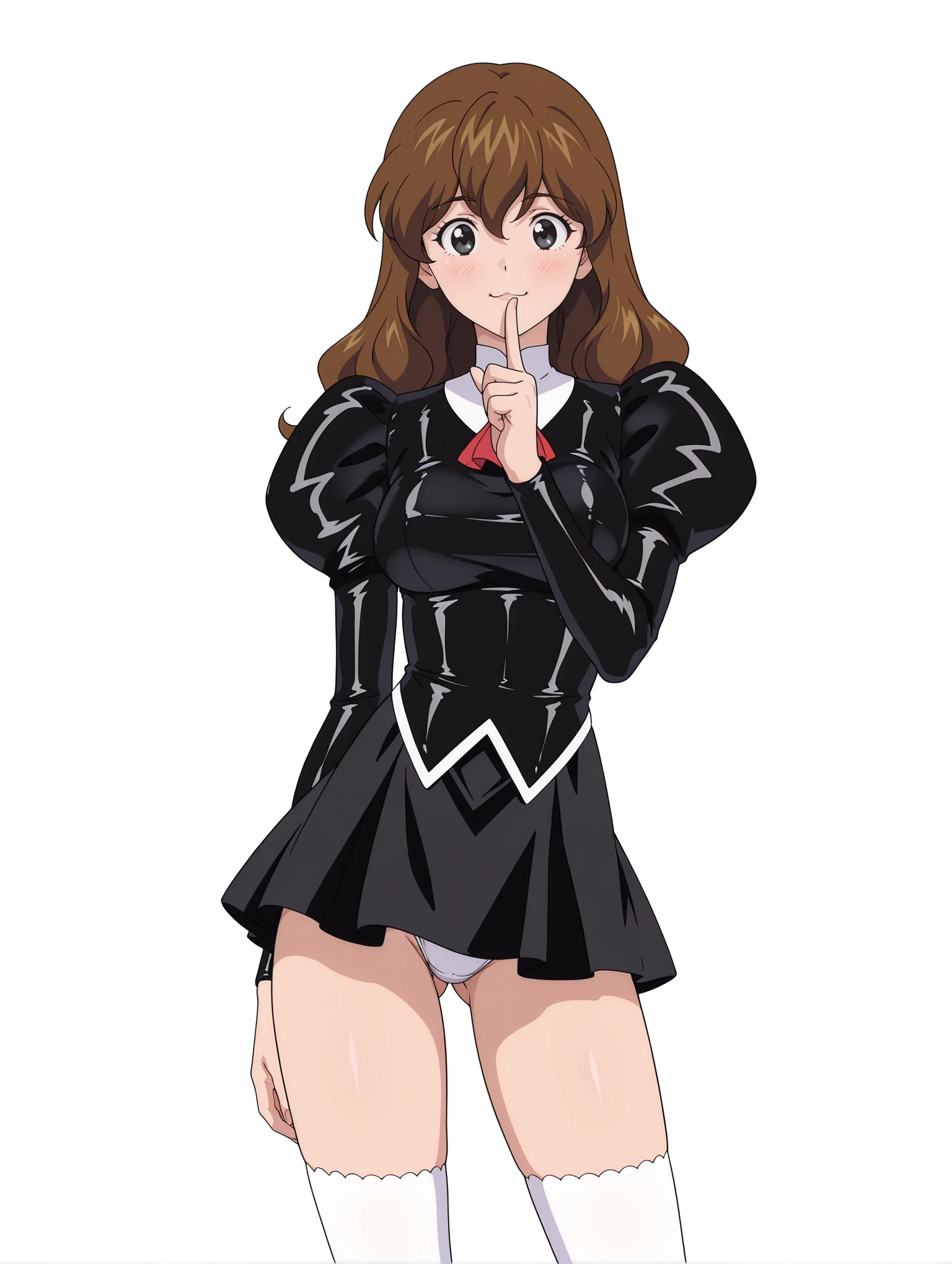 d_clothes,red ascot,puffy sleeves,long_sleeves,black dress,white underwear,white thighhighs,
