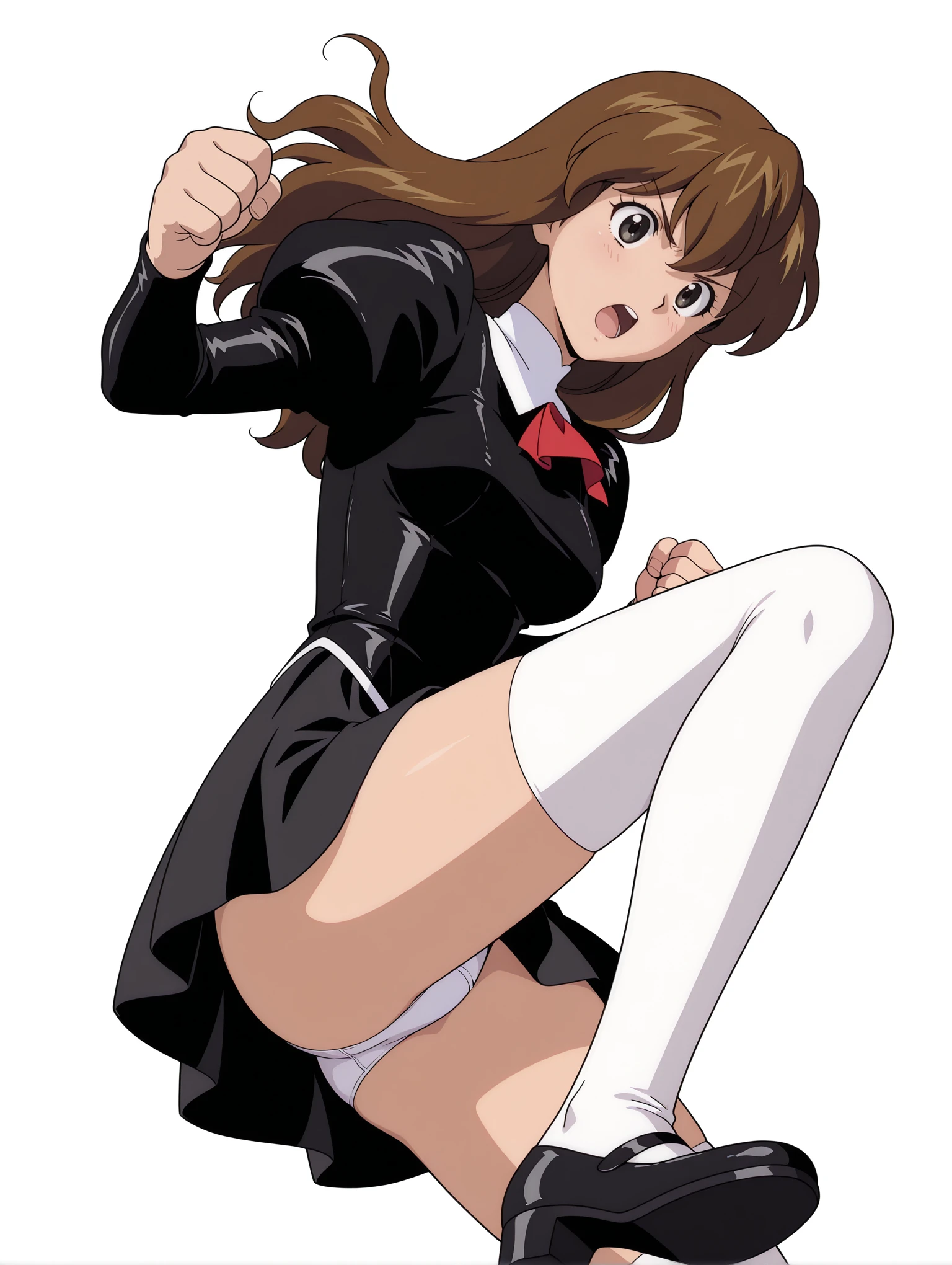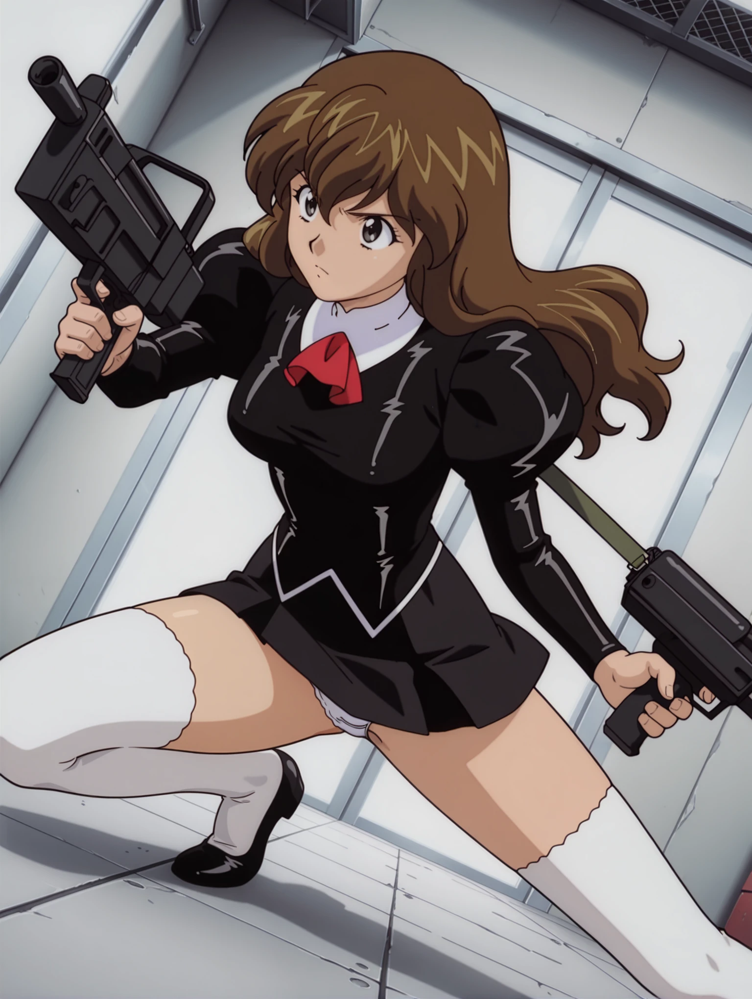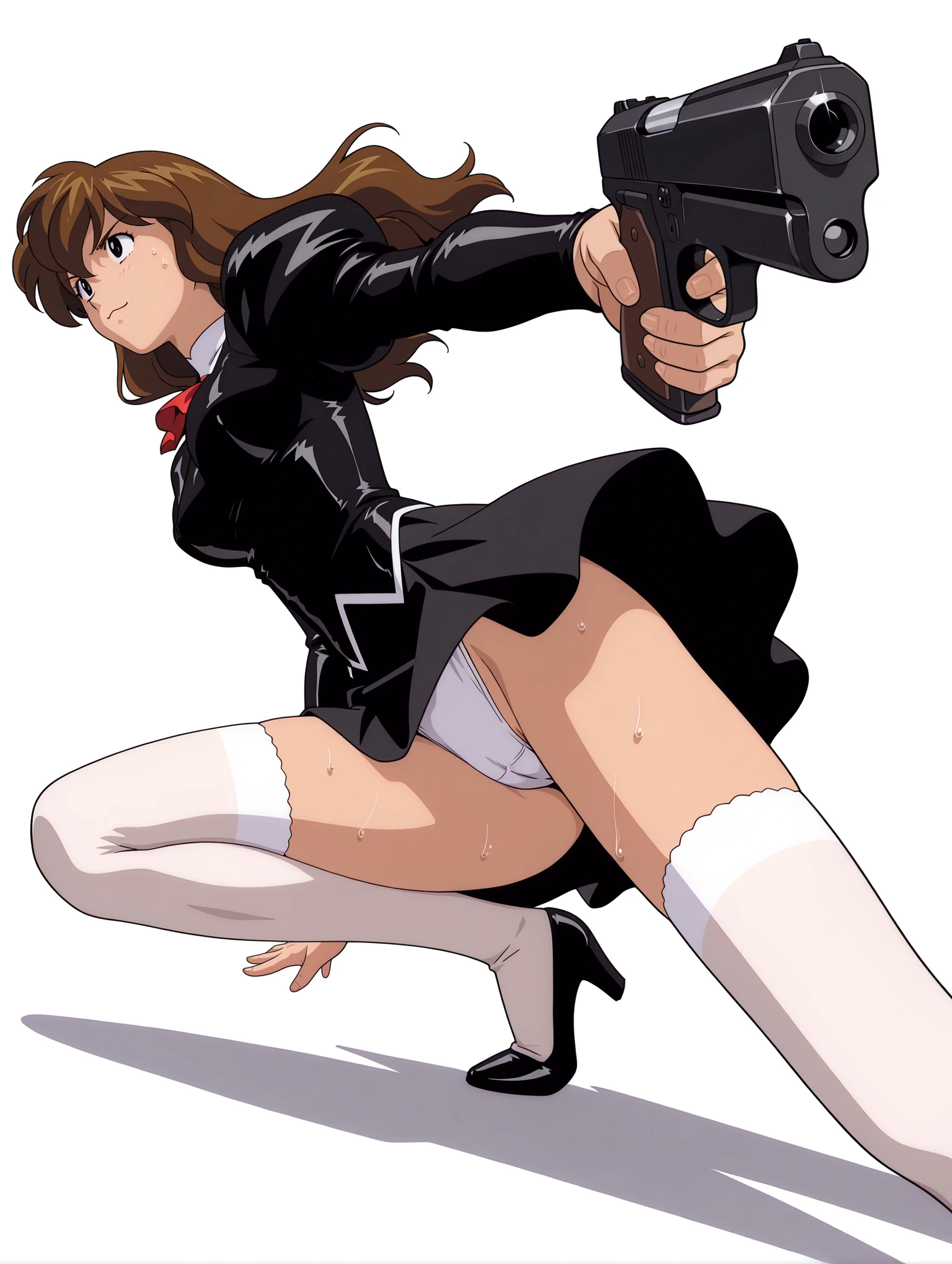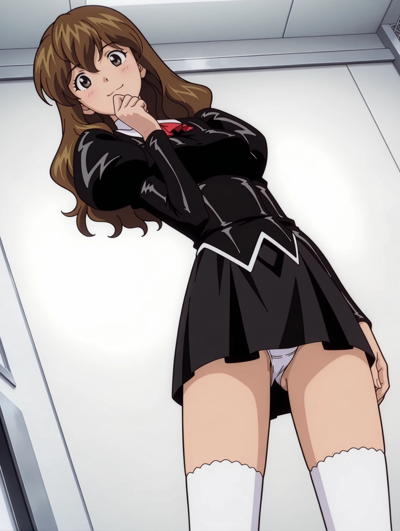 d_clothes,red ascot,puffy sleeves,long_sleeves,black dress,white underwear,white thighhighs,