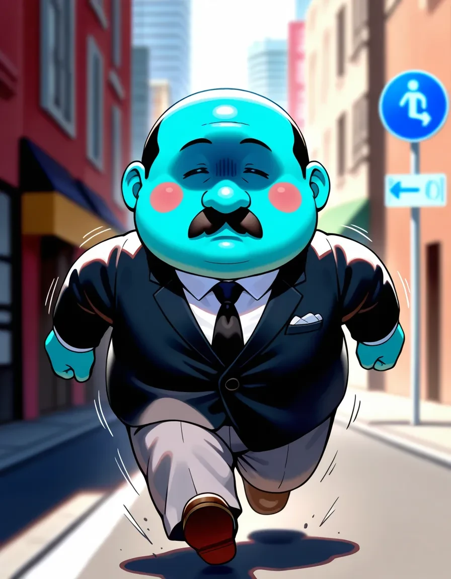 1boy,annoyingpartyman,black hair,very short hair,bald,blush stickers,tareme,closed eyes,no mouth,mustache,fat,mature male,