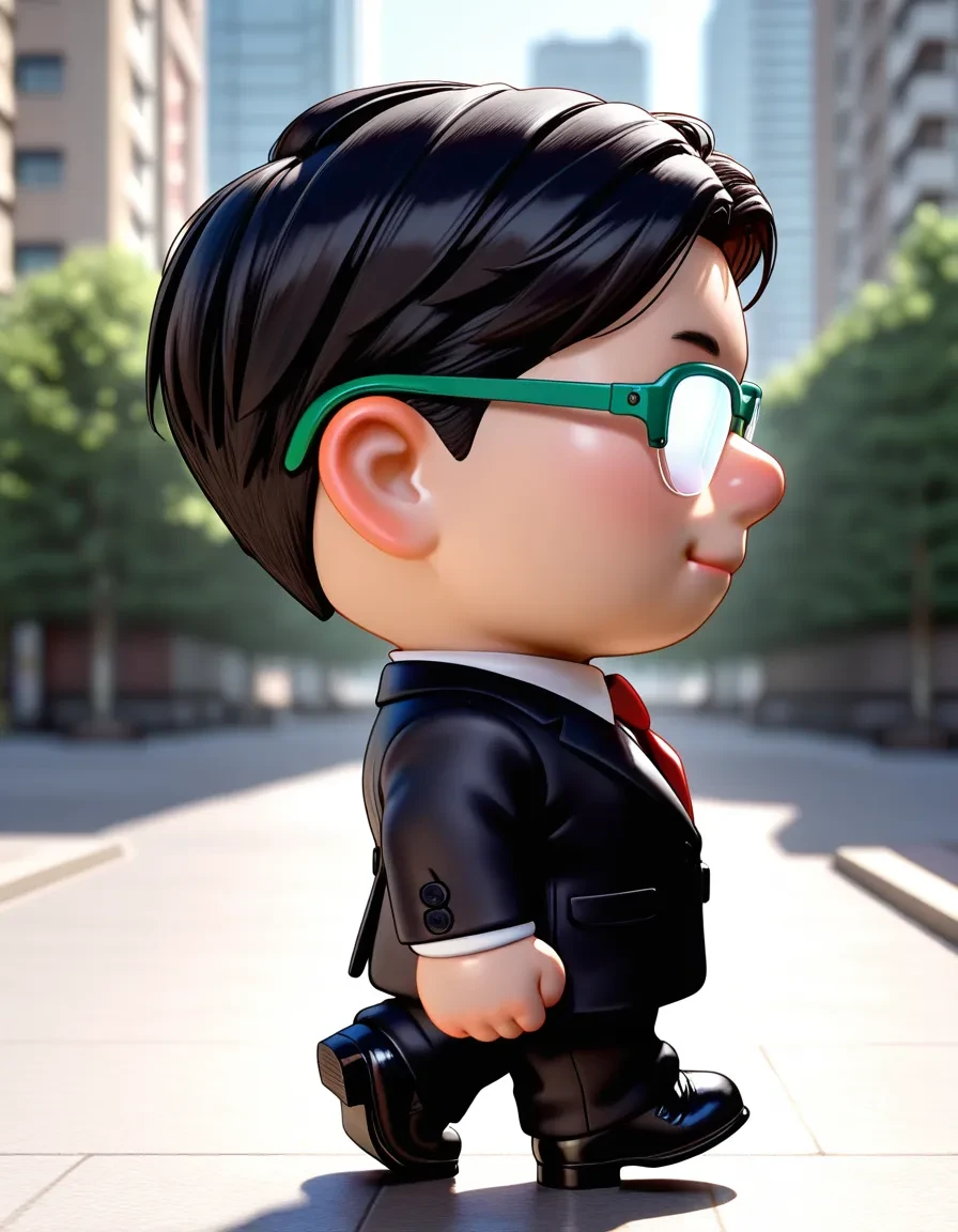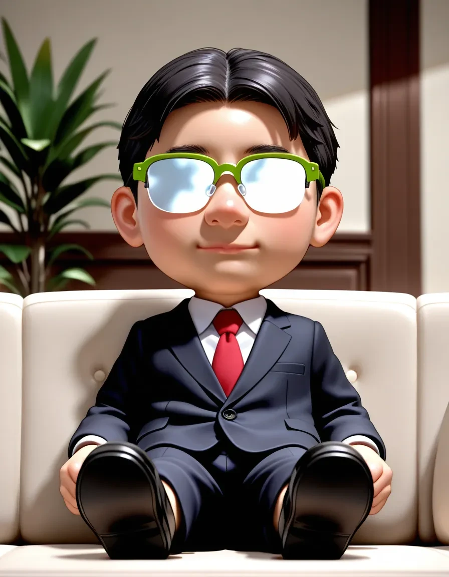 over-rim eyewear,green-framed eyewear,opaque glasses,black suit,formal,white shirt,red necktie,long sleeves,black footwear,