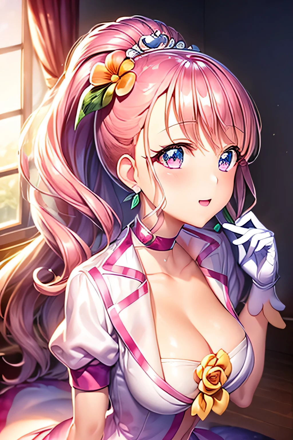 magical girl, choker, pink choker, ascot, jacket, cure grace dress, flower, gloves, white gloves, high heels,