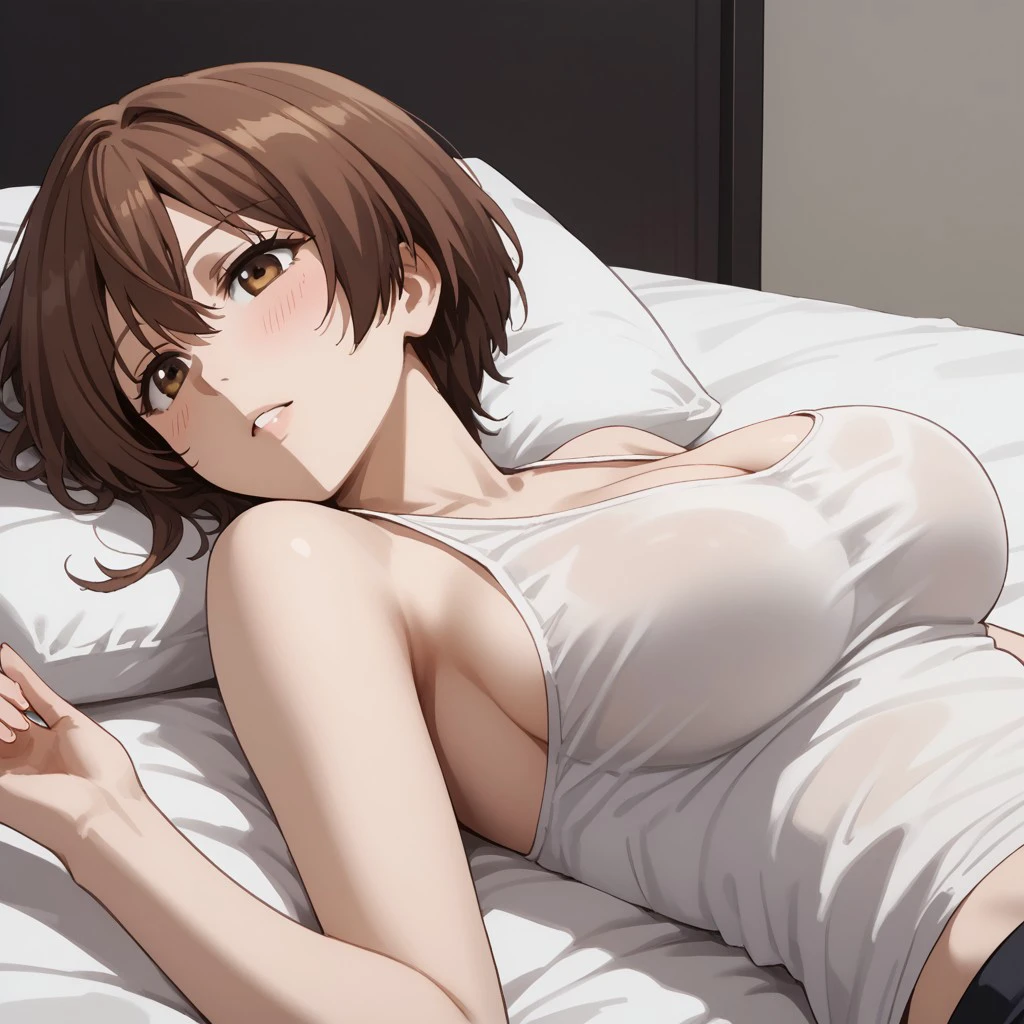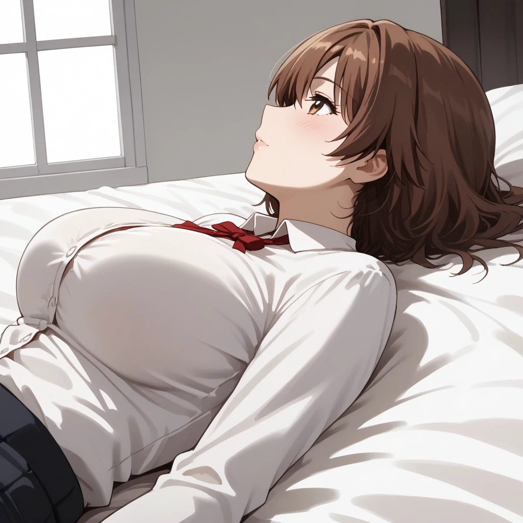1girl, solo, kokorogi, brown hair, large breasts