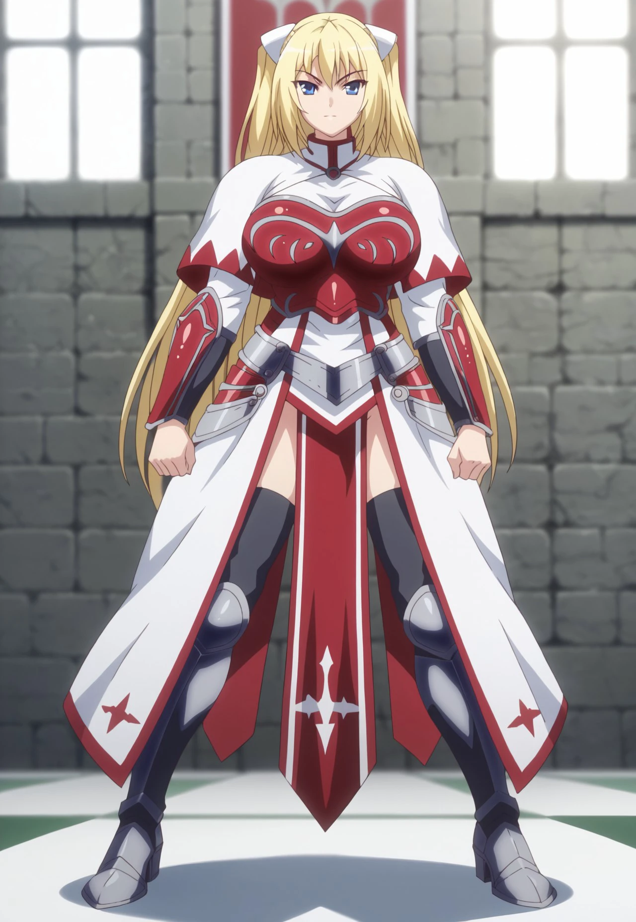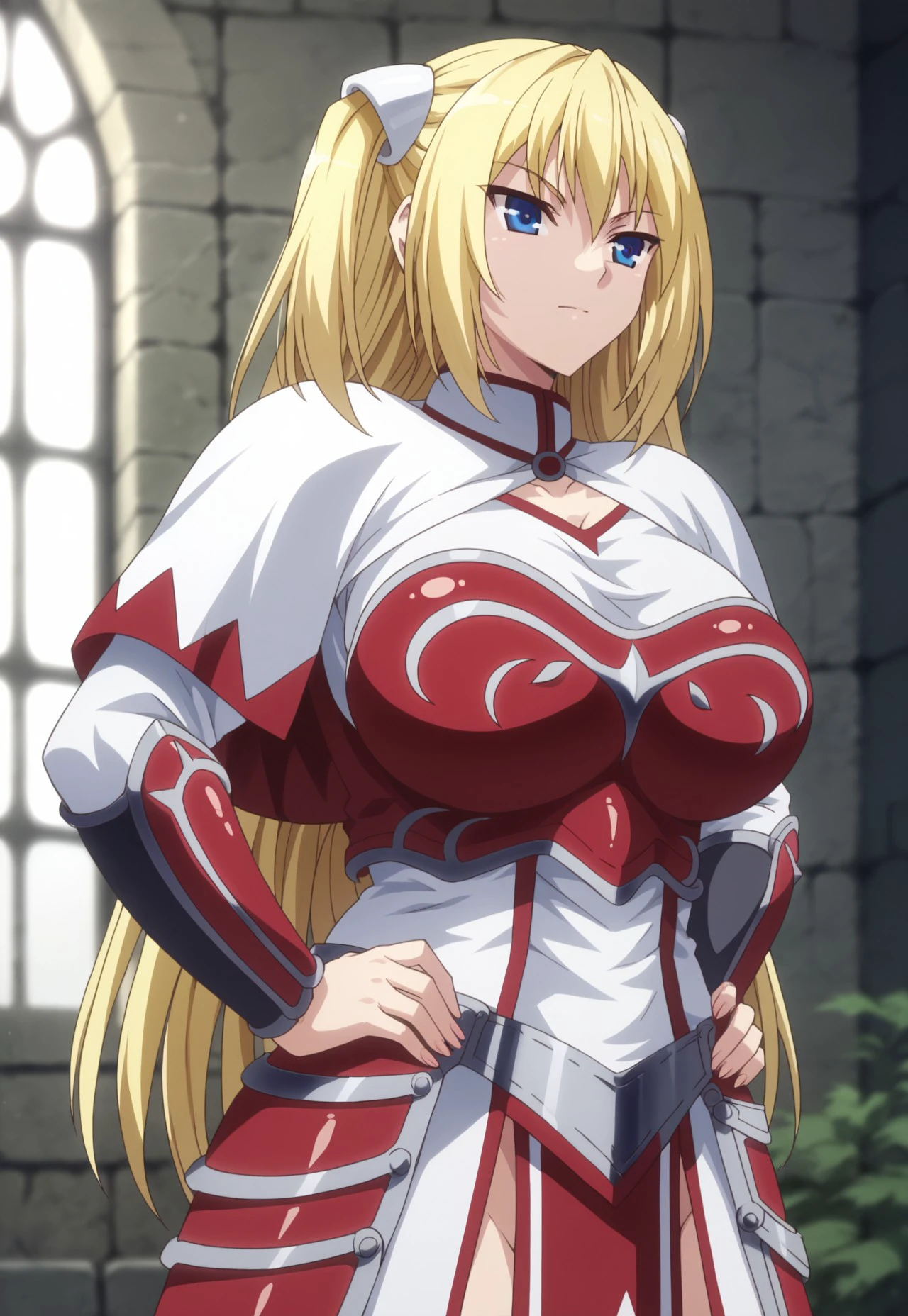 luvilias, blonde hair, long hair, blue eyes, large breasts, battle armor