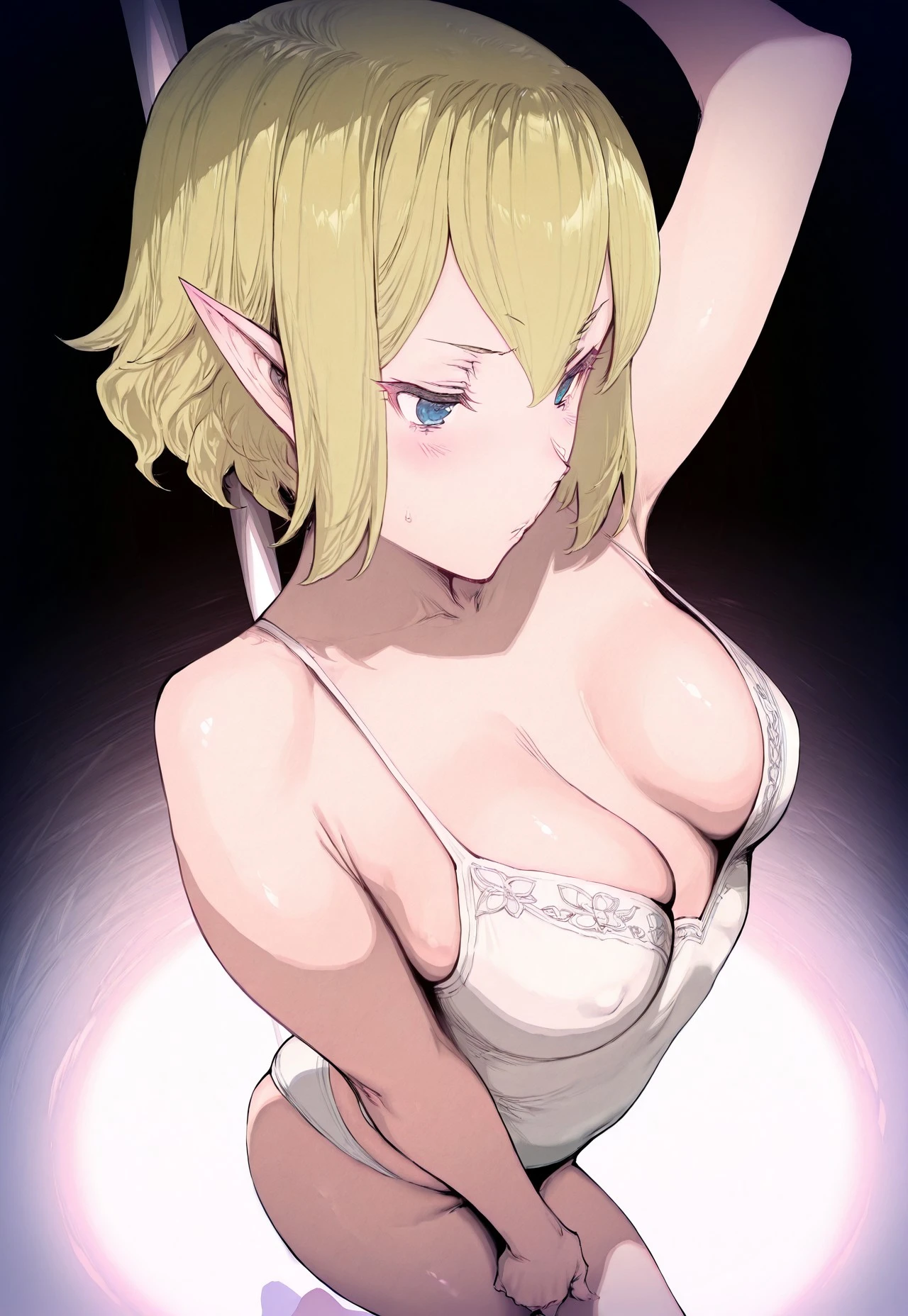 1girl, elf, pointy ear, blonde hair, blue eyes,