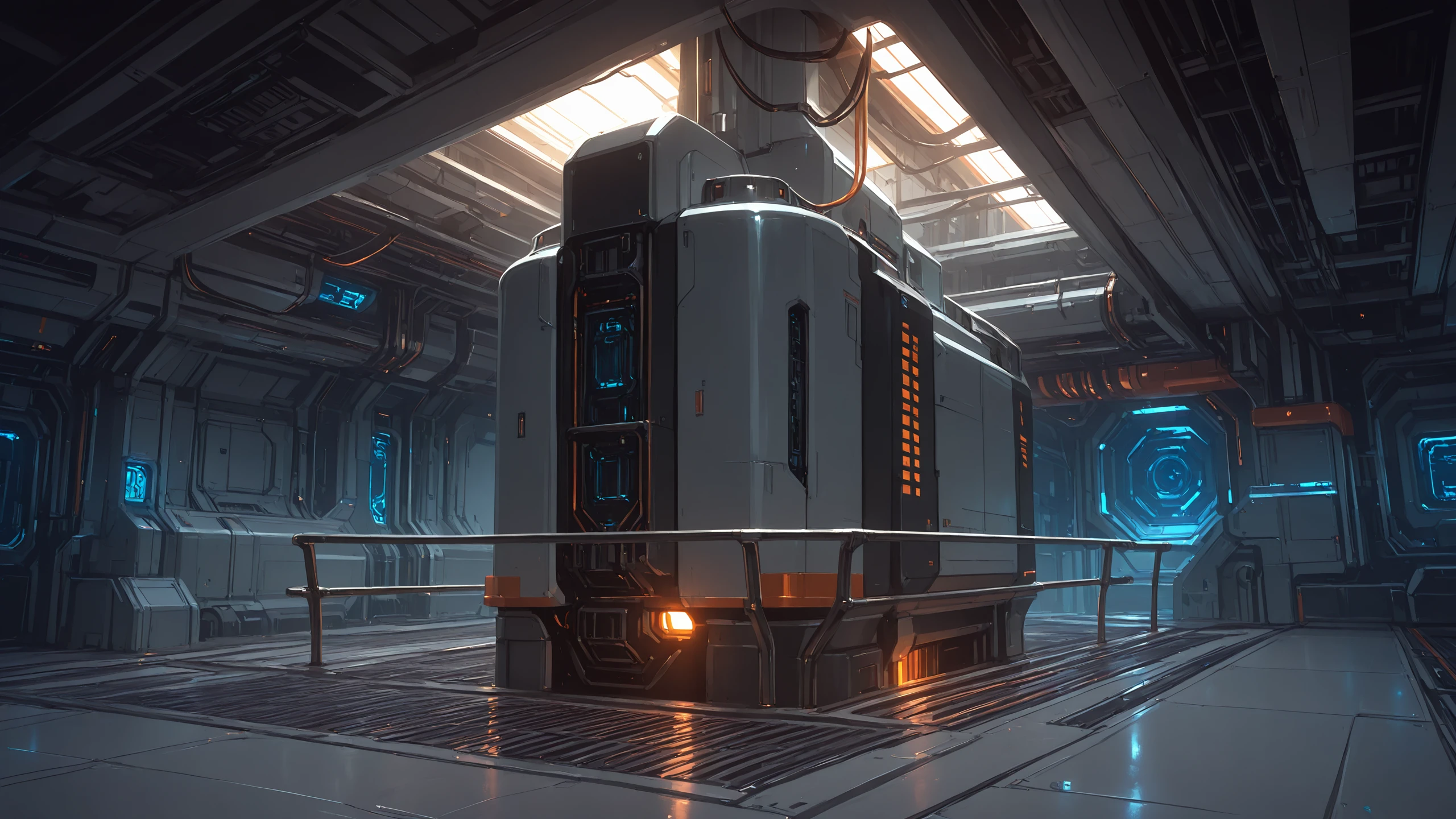 science fiction, no humans, indoors, cable, industrial pipe,