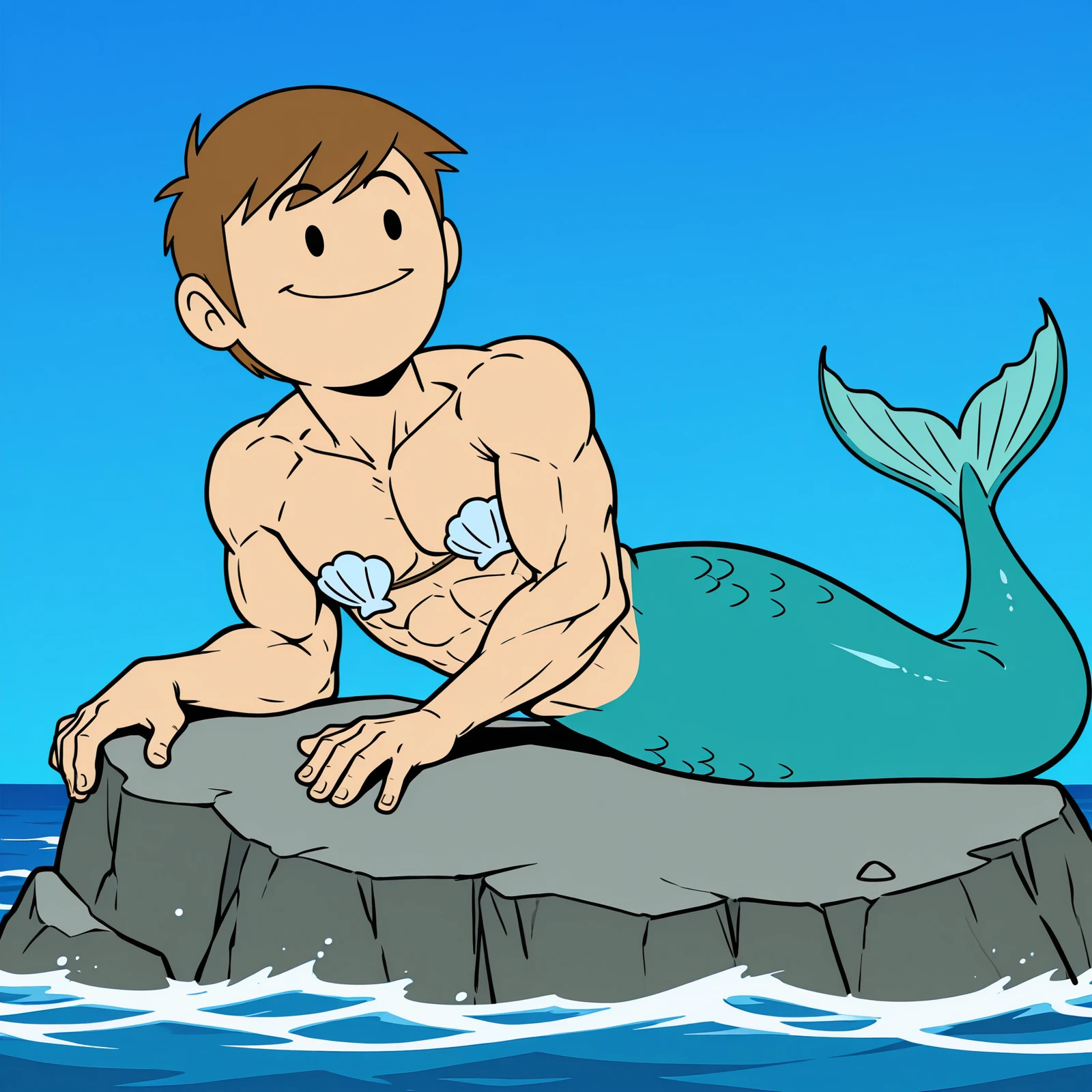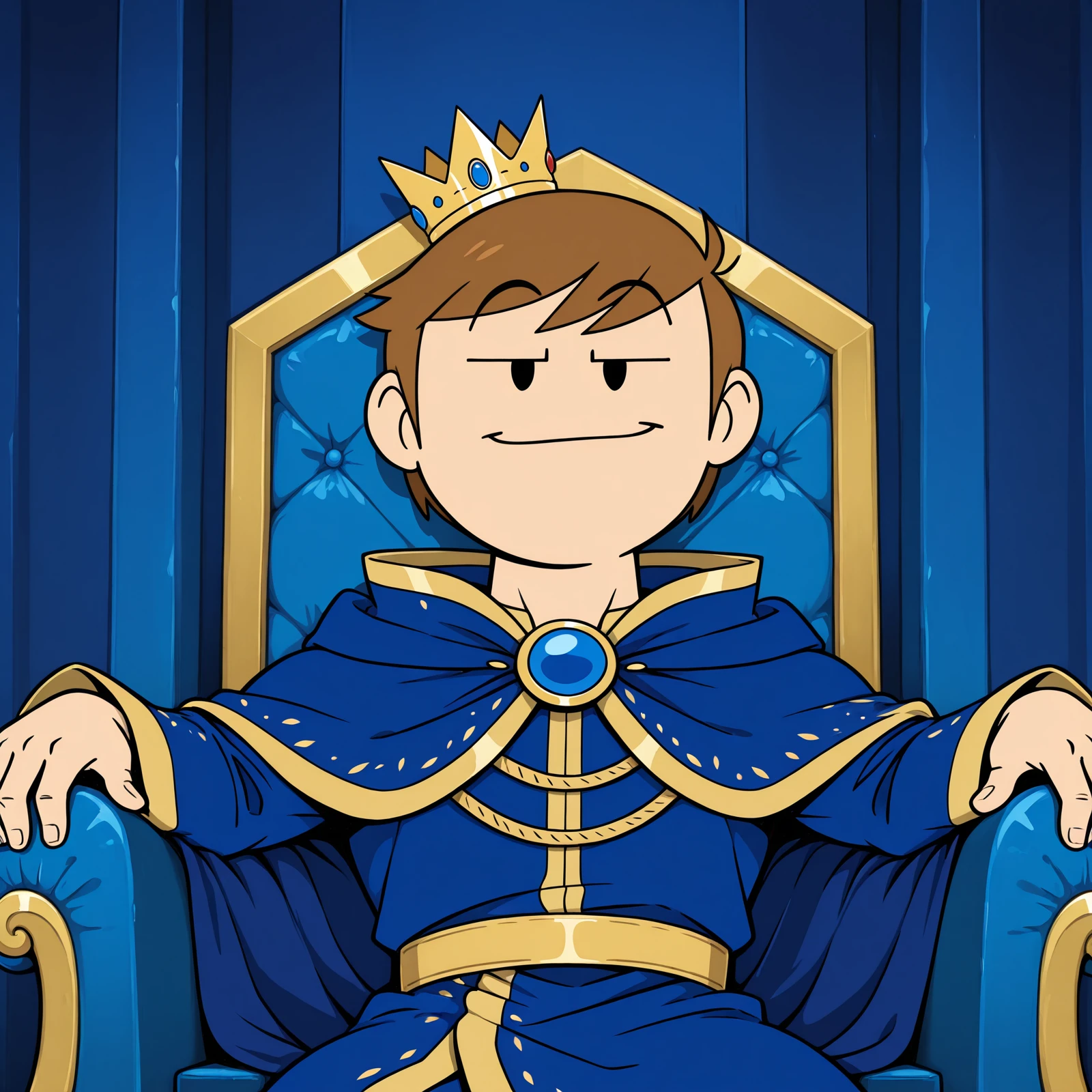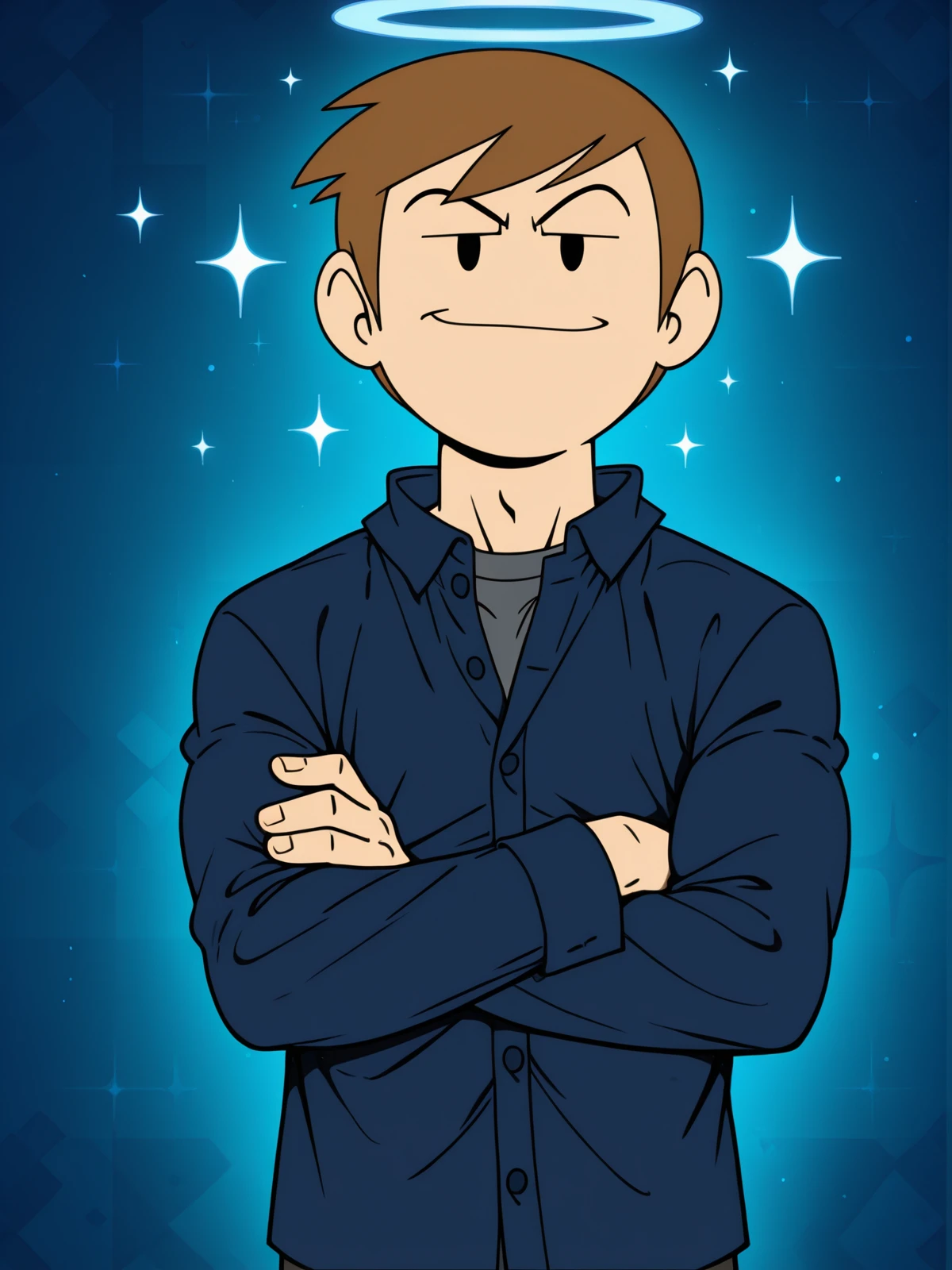 1boy, solo, muscular male, Jon_Eddsworld, short hair, brown hair, 2 eyebrows, black eyes, dot eyes, swept bangs, toon \(style\), flat color, western cartoon, male focus,