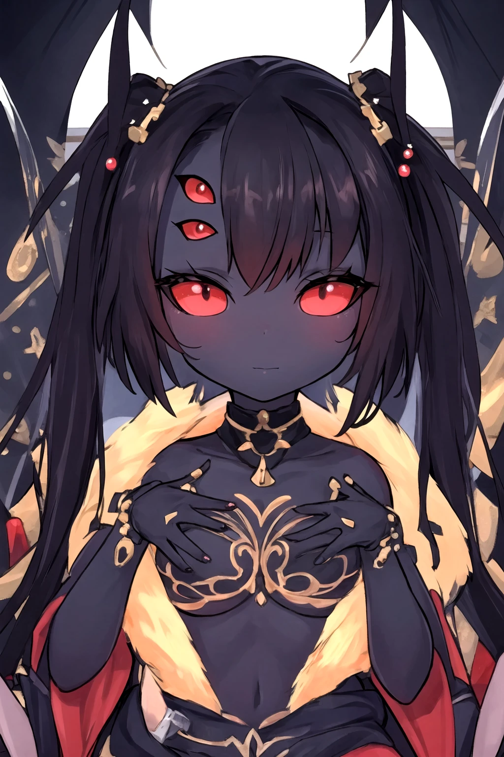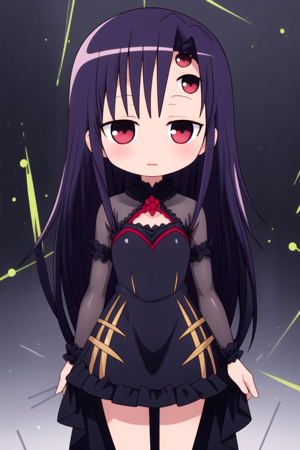 Example prompt: 1girl, black_hair, red_eyes, <lora:DriderEyeV3:0.99> (drider_eyes:1.3), (extra_eyes:1.1), black_dress, short_hair, forehead