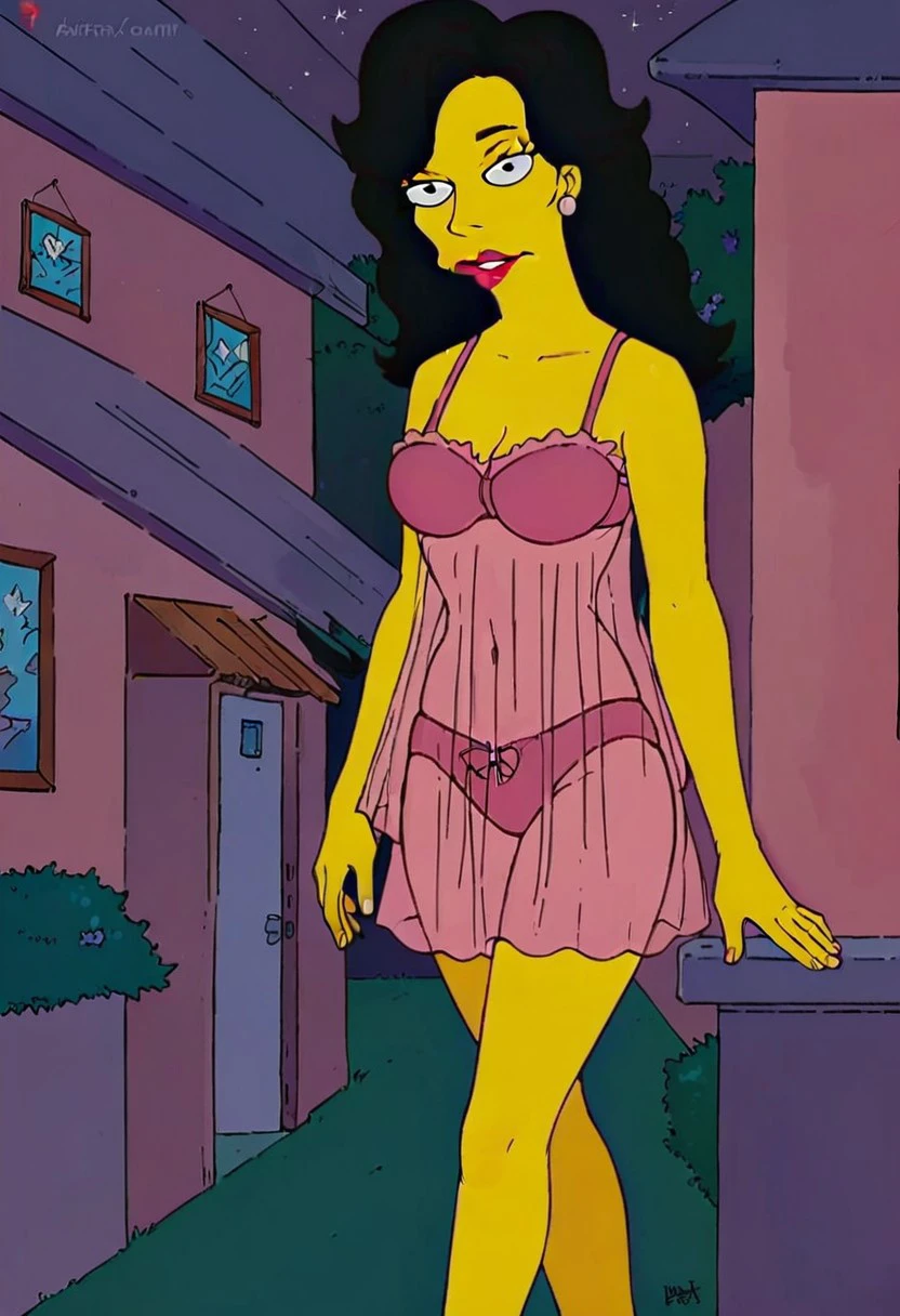 bedwear, pink nightgown, pink panties, pink lingerie, see-through