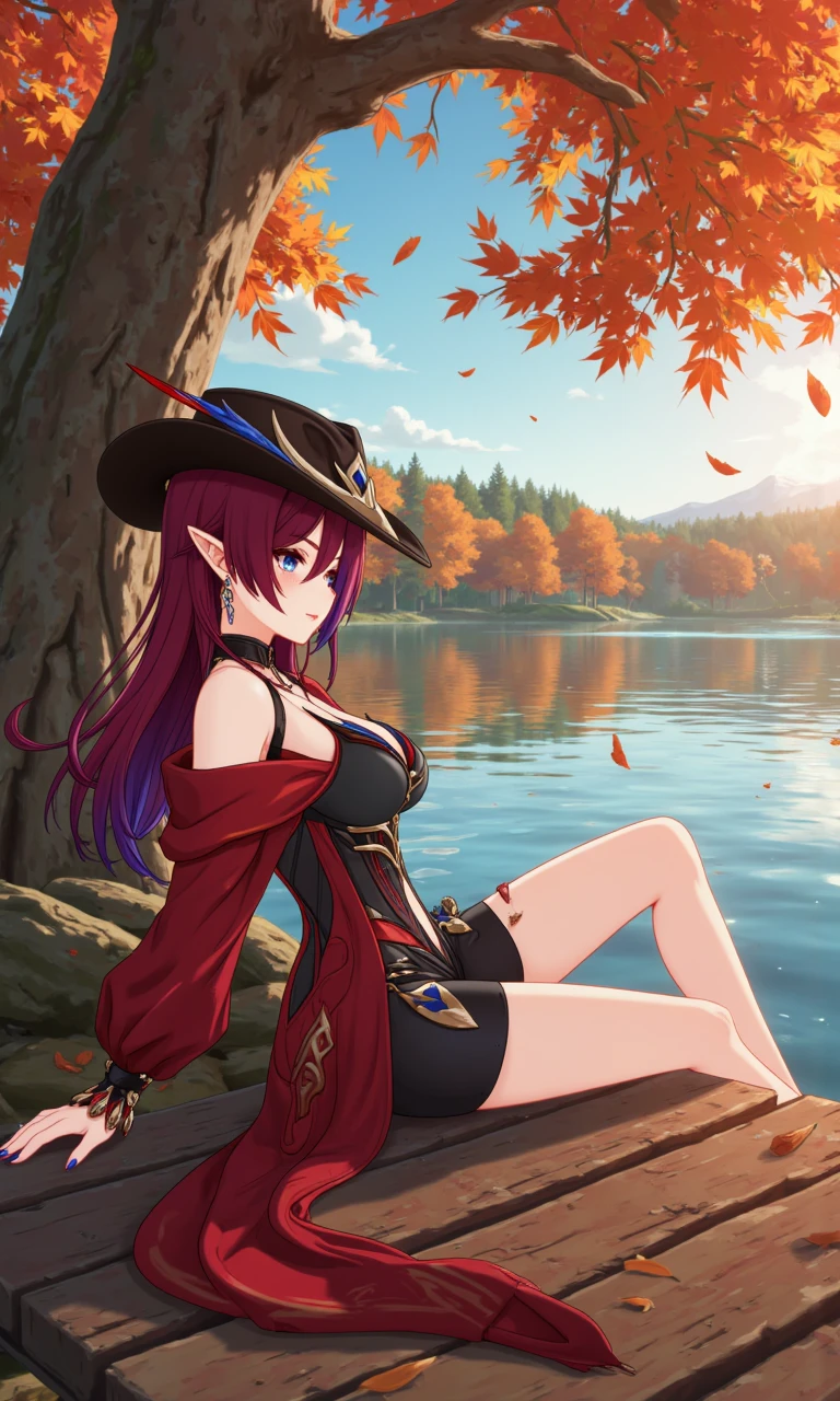 tag:tj_chasca,pointy ears,long hair,multicolored hair,red hair,purple hair,blue eyes,hair over one eye,braid,earrings,jewelry,