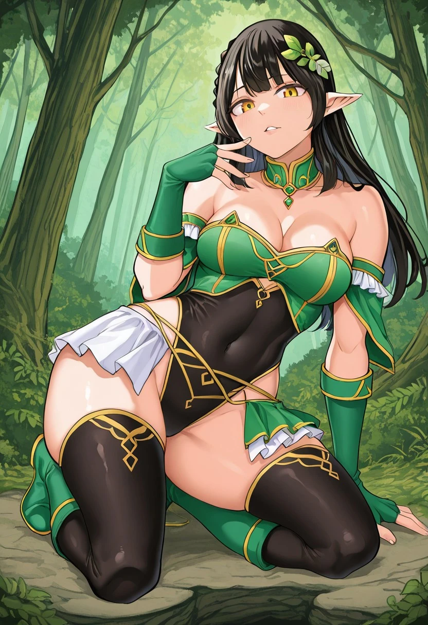alyusha,black hair,pointy ear,detailed eye,brown eye