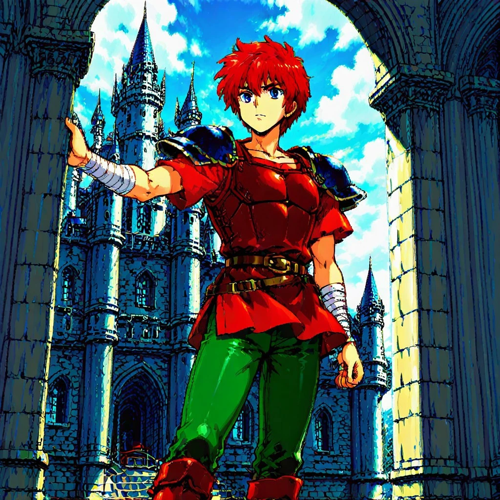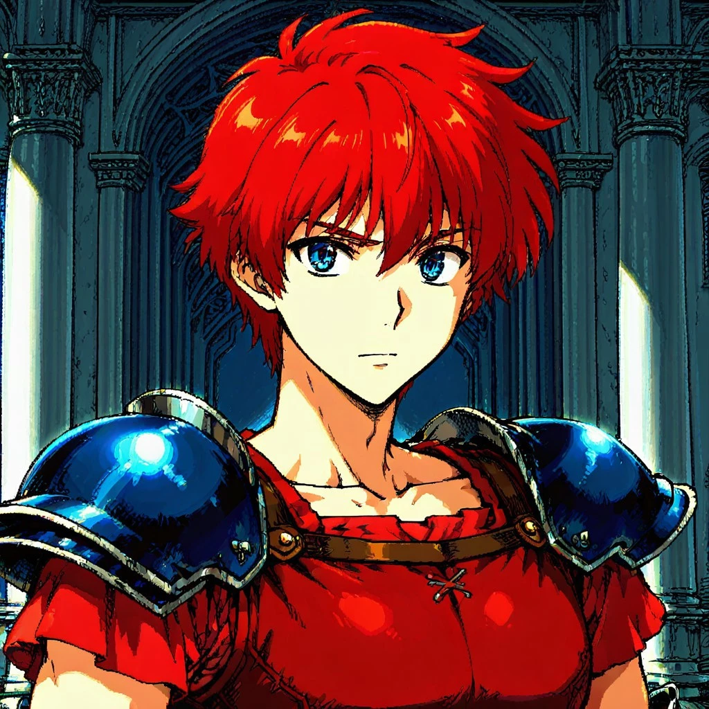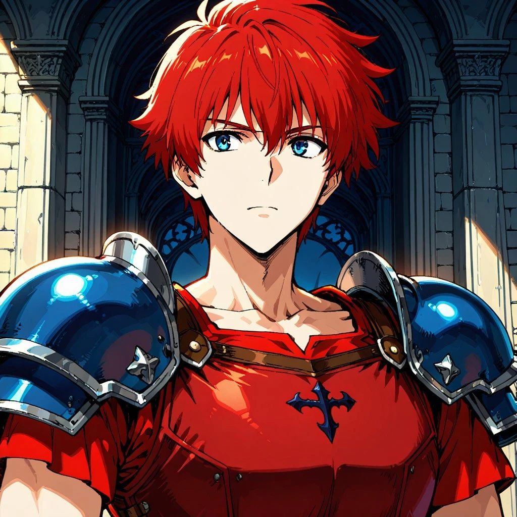 Duke: Zeliard, 1boy, red hair, short hair, blue eyes