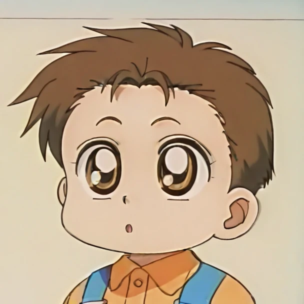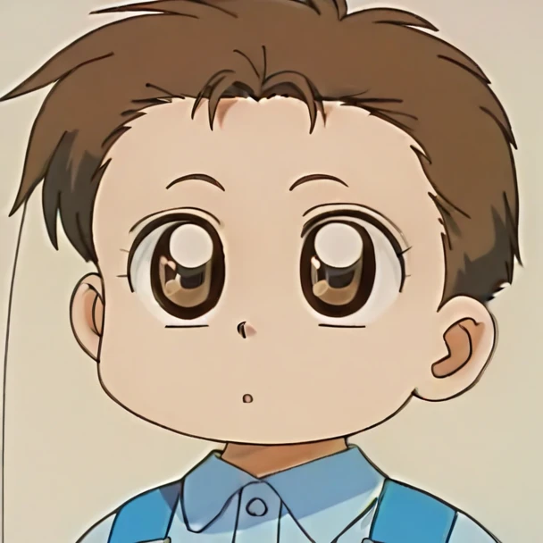 ,anime coloring, <lora:Enoki Minoru - Aka-chan to Boku 1.3:0.8>retro_artstyle, , 1boy, solo, short hair, brown hair, shirt, brown eyes, , forehead , collared shirt, chibi,