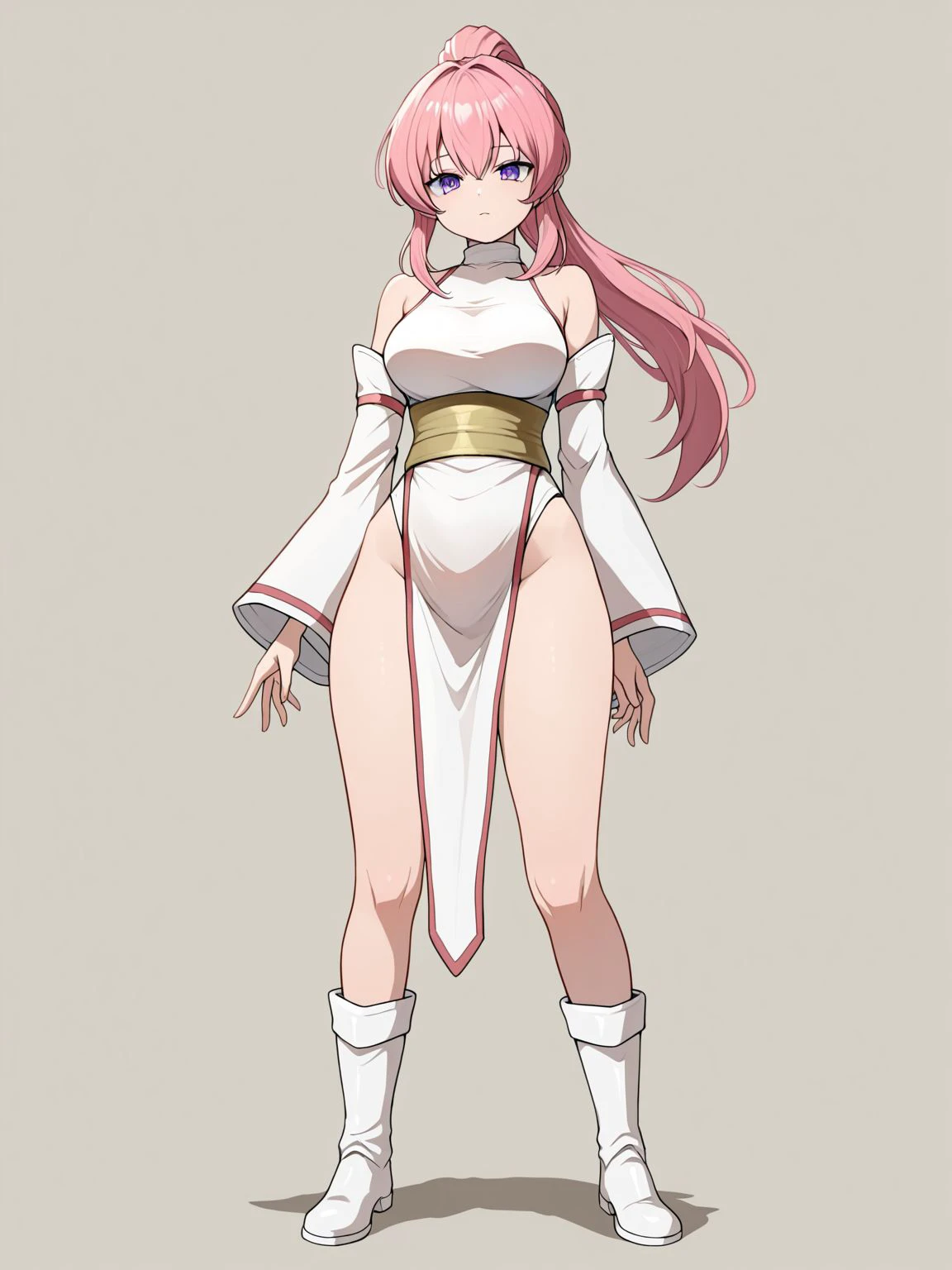 pelvic curtain,sash,long sleeves,detached sleeves,wide sleeves,dress,white dress,boots,white_boots,