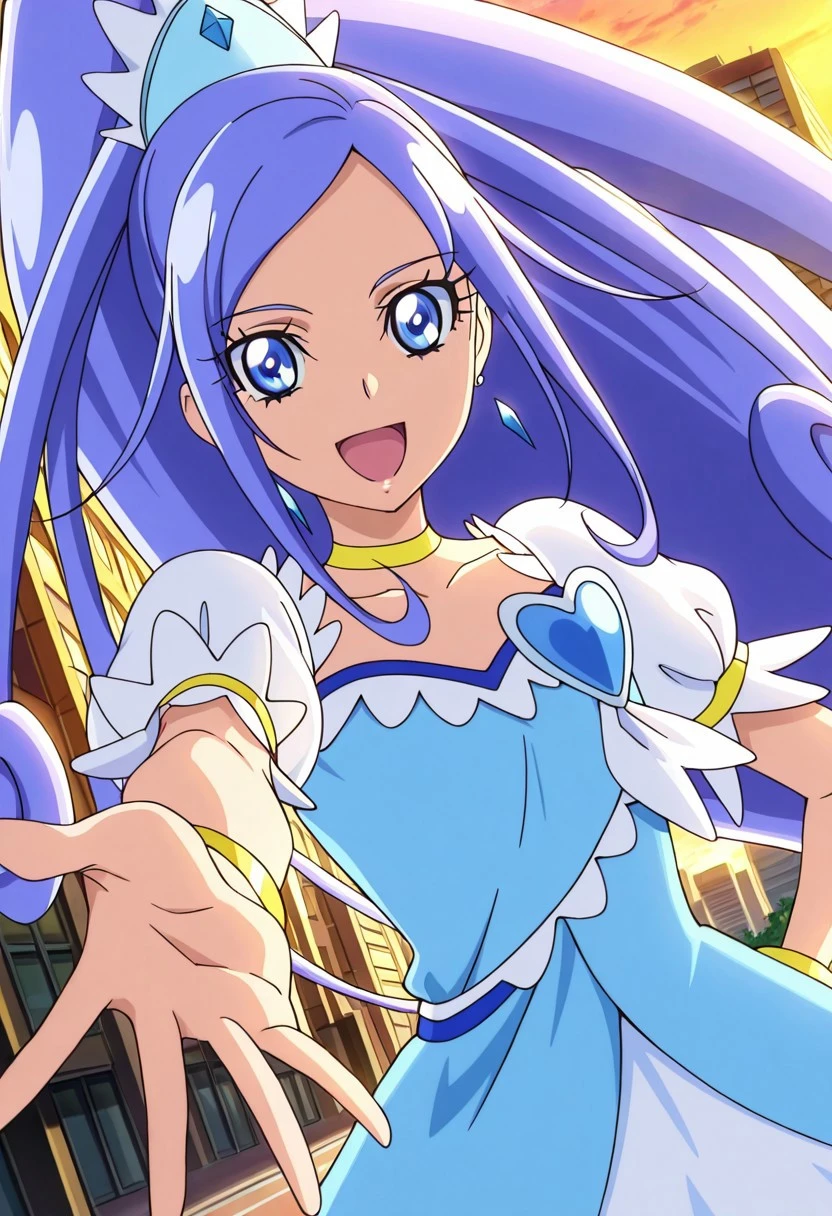 Cure Diamond,blue_eyes, blue_hair, very_long_ponytail, rolling hairs,hair ornament,huge_breasts,