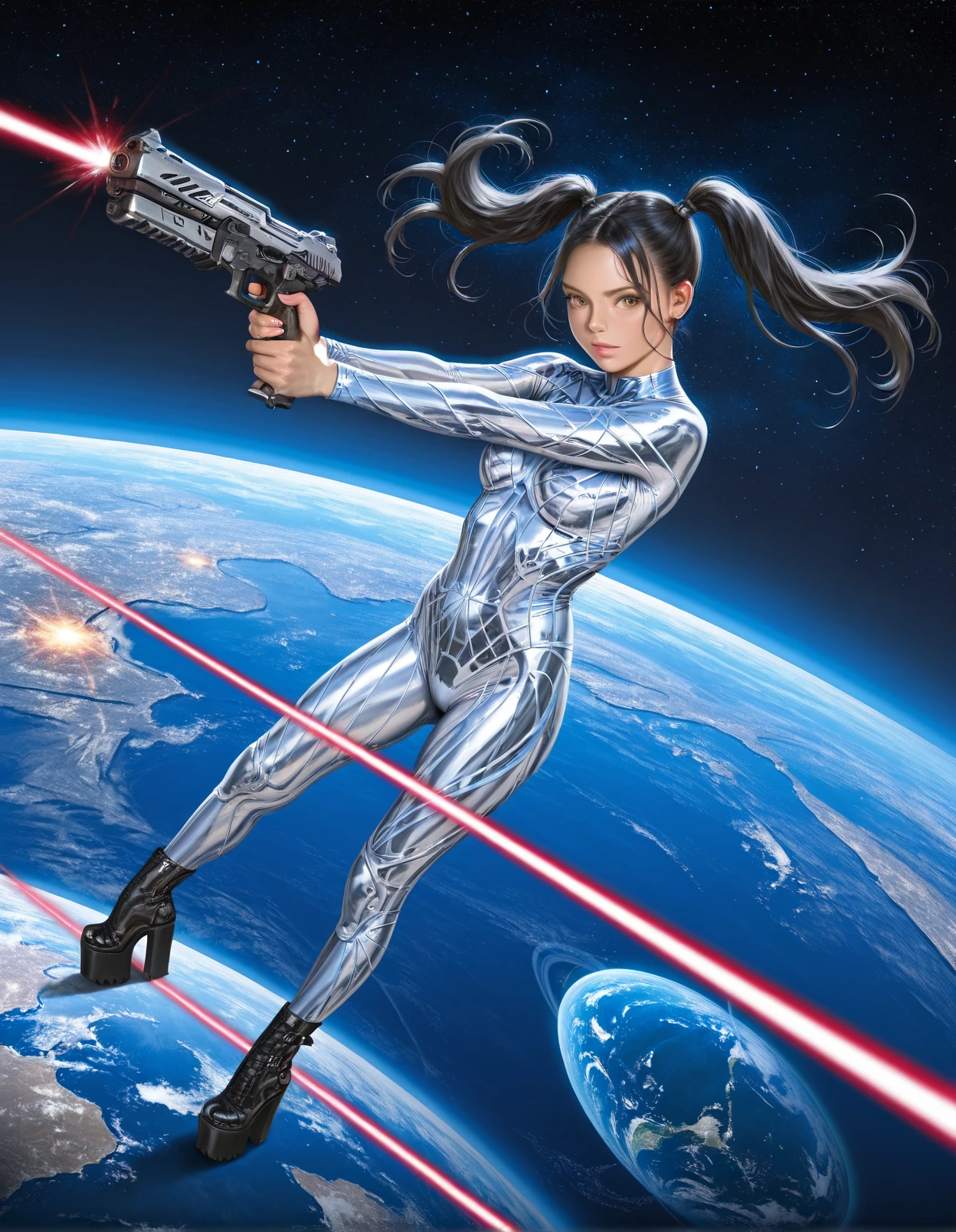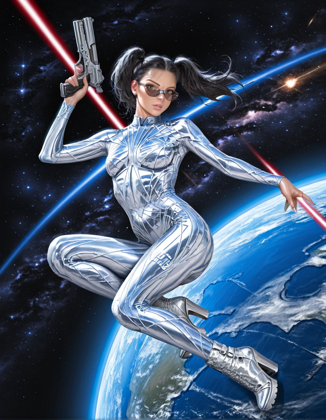 hud_js2, 1girl, solo, brown eyes, bodysuit, looking at viewer, black hair, realistic,