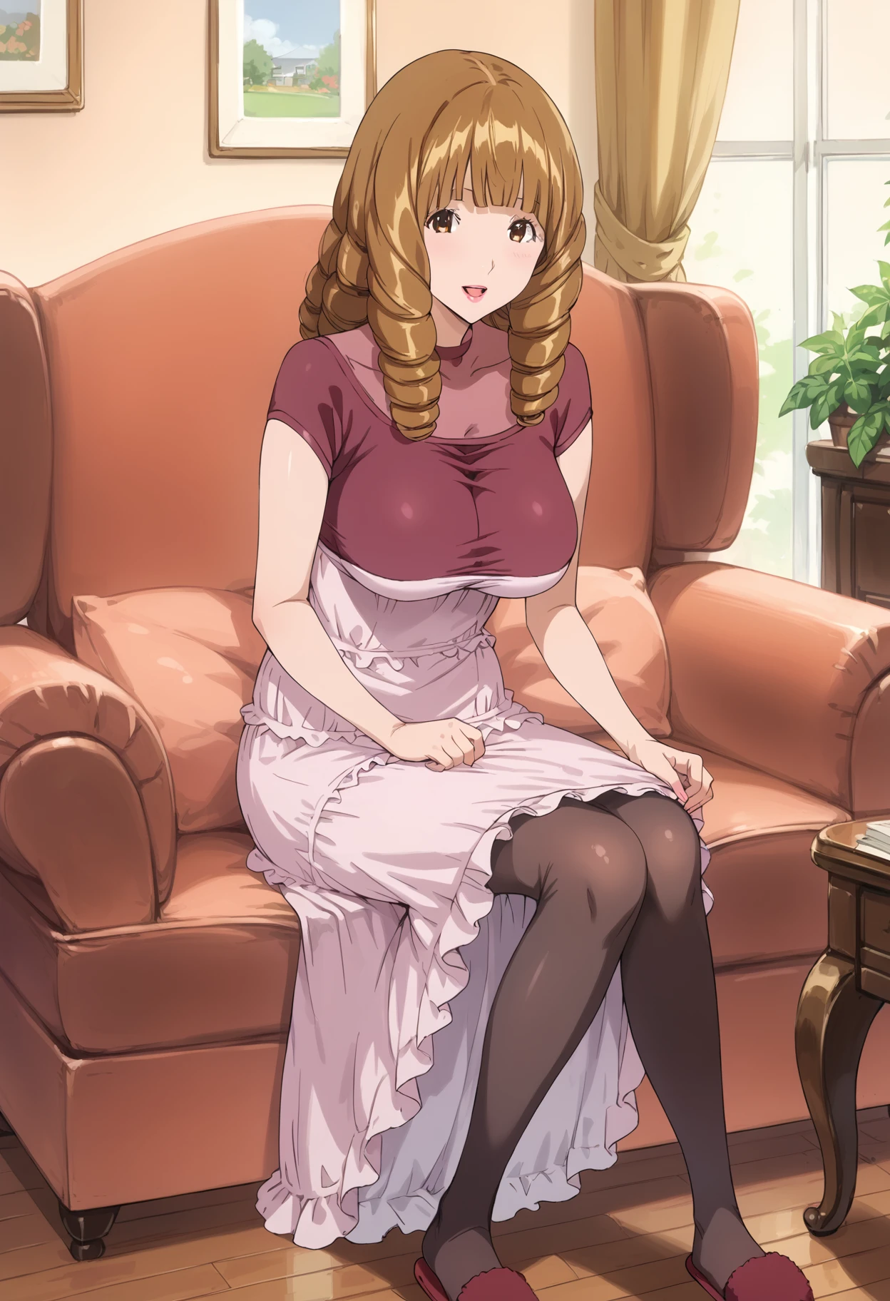 black pantyhose, slippers,