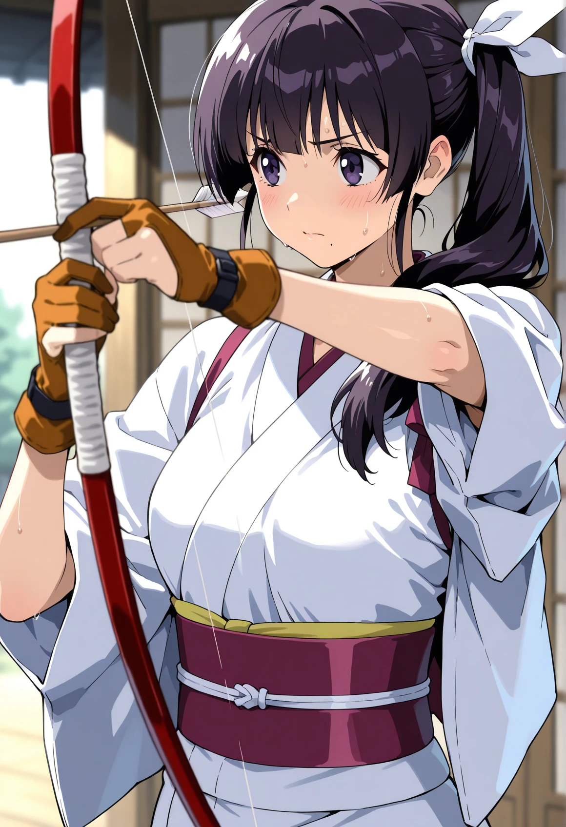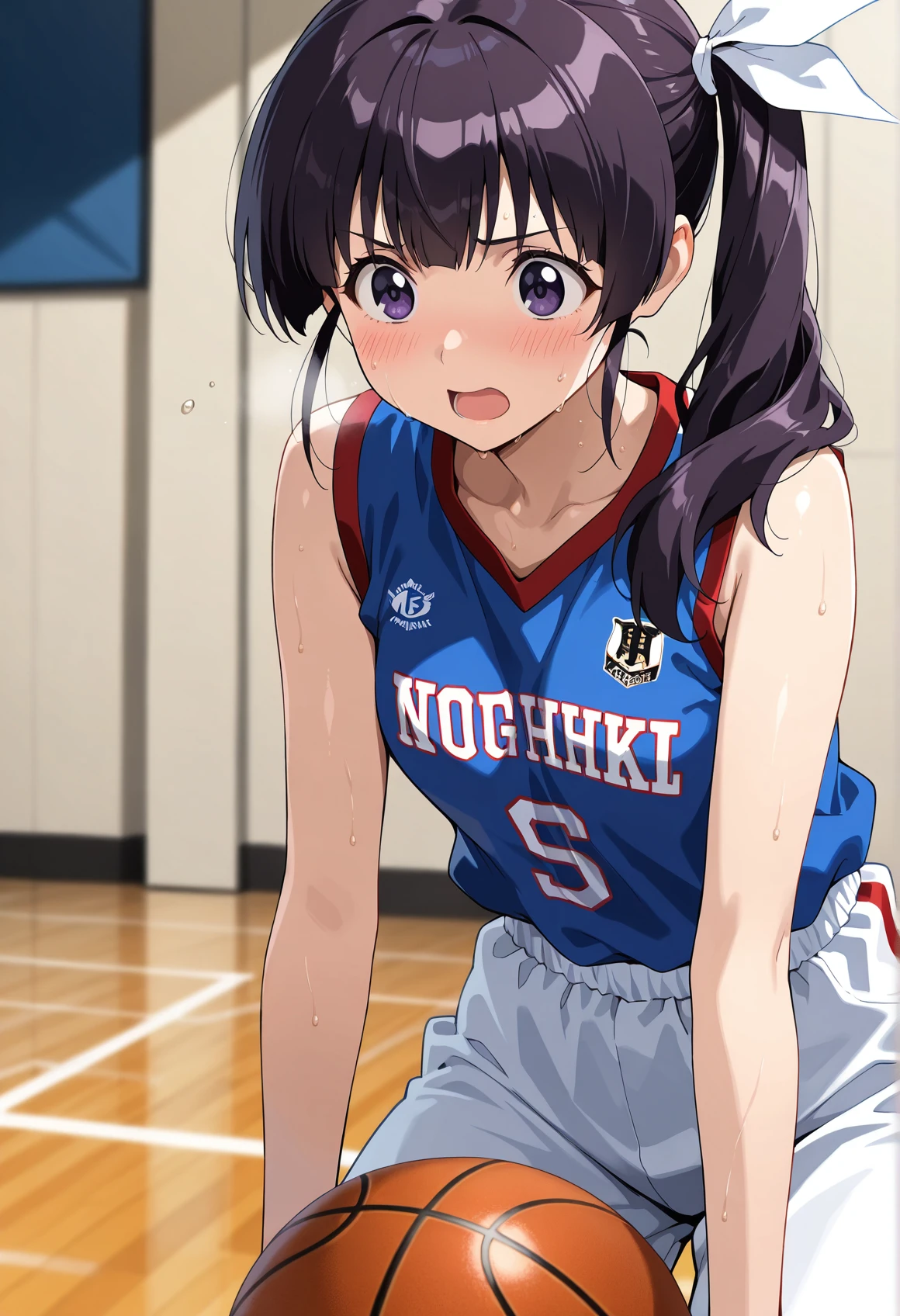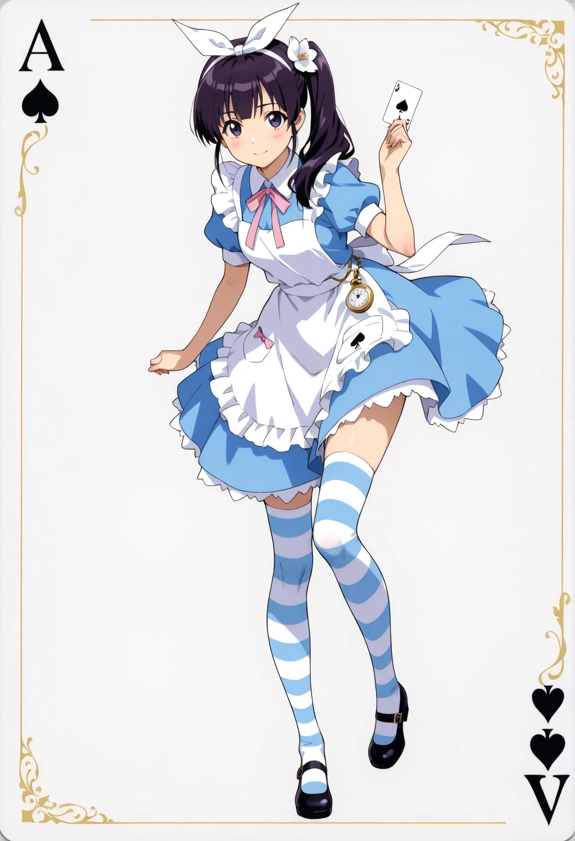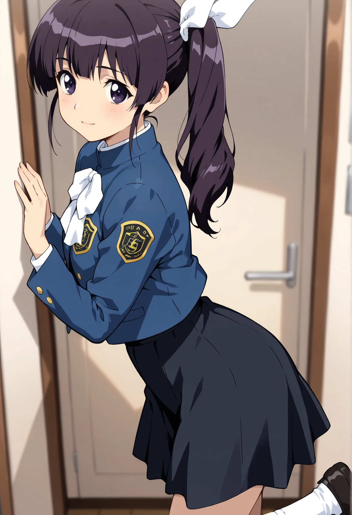 Koyomi-Hare-Nanaka,side ponytail, black hair, long hair, one side ponytail,white ribbon,clothes: