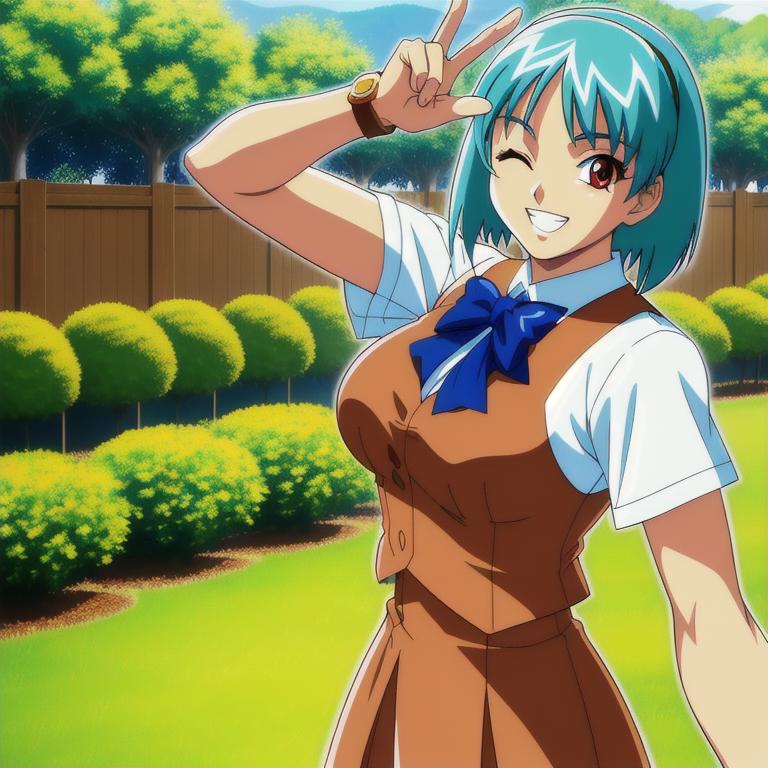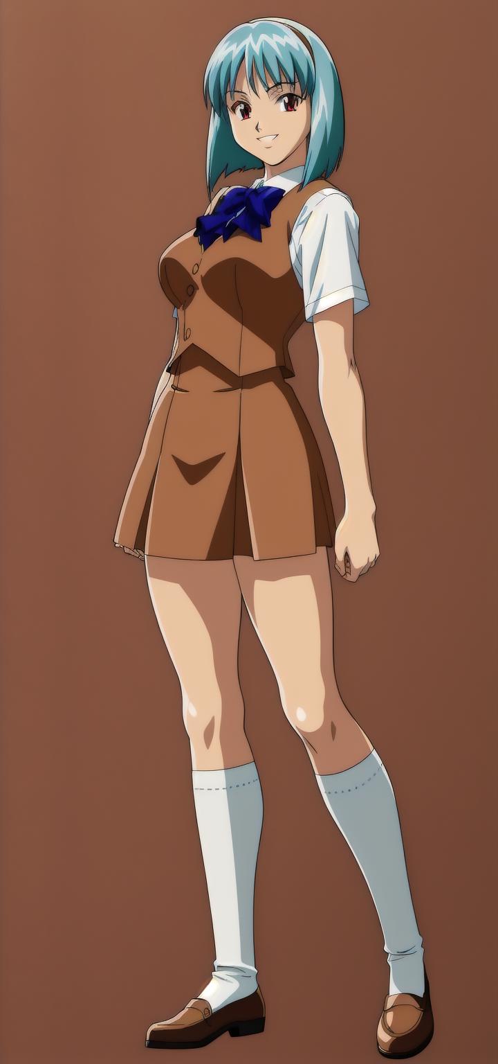 brown vest, short sleeves, brown skirt, hair band