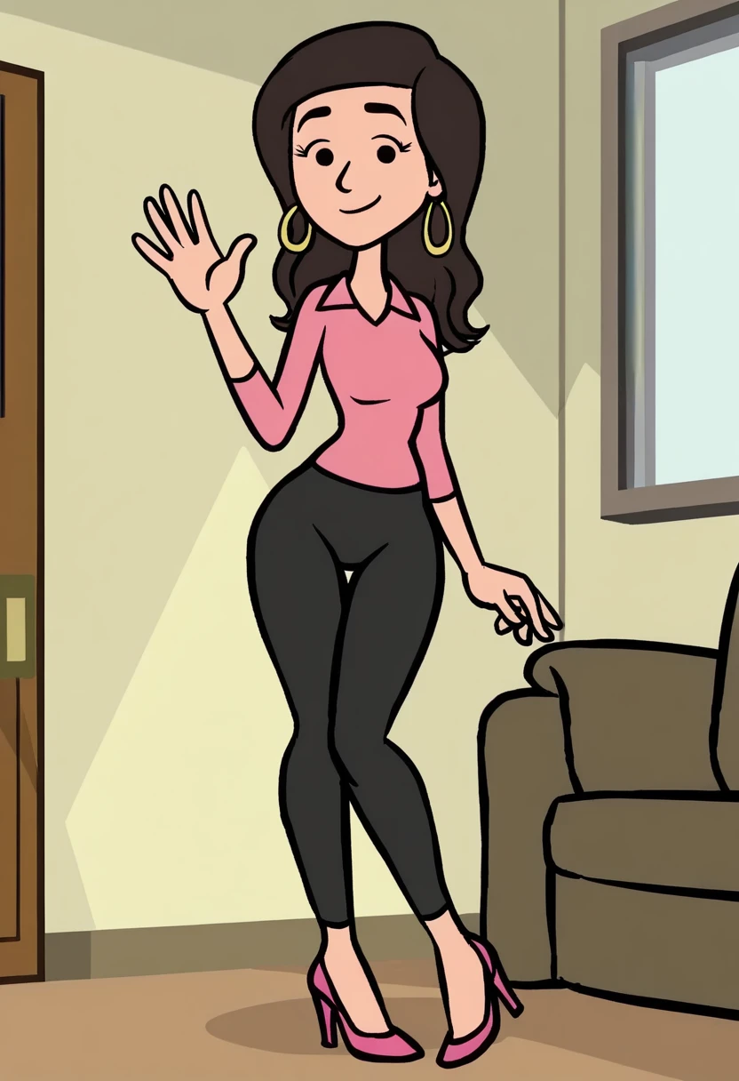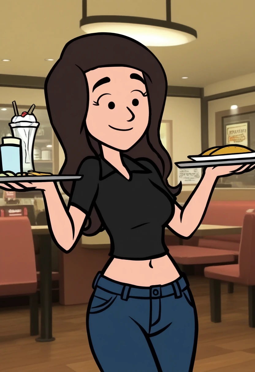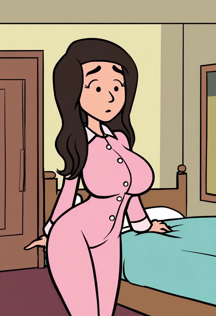 Caroline_Storybooth, dark brown hair, thick eyebrows, long hair, dot eyes,