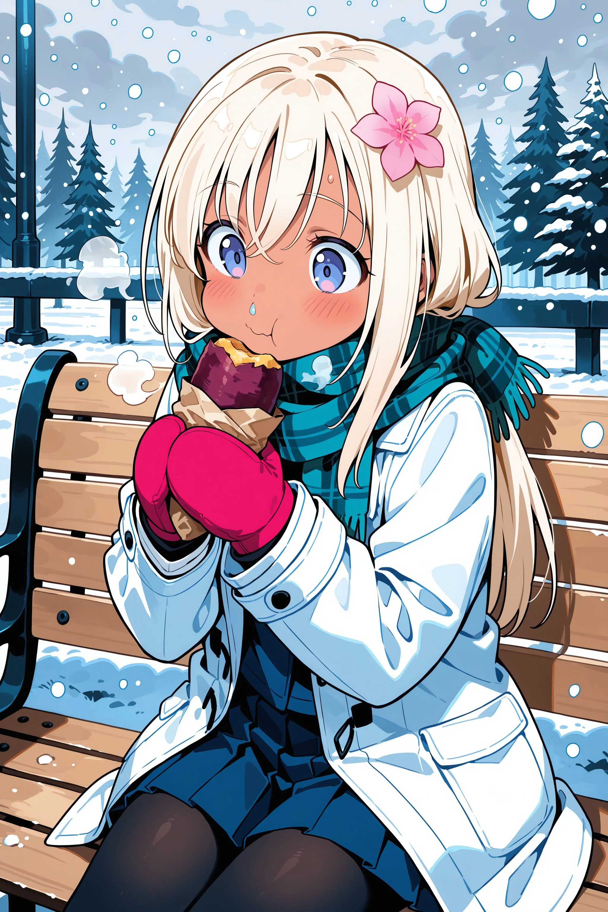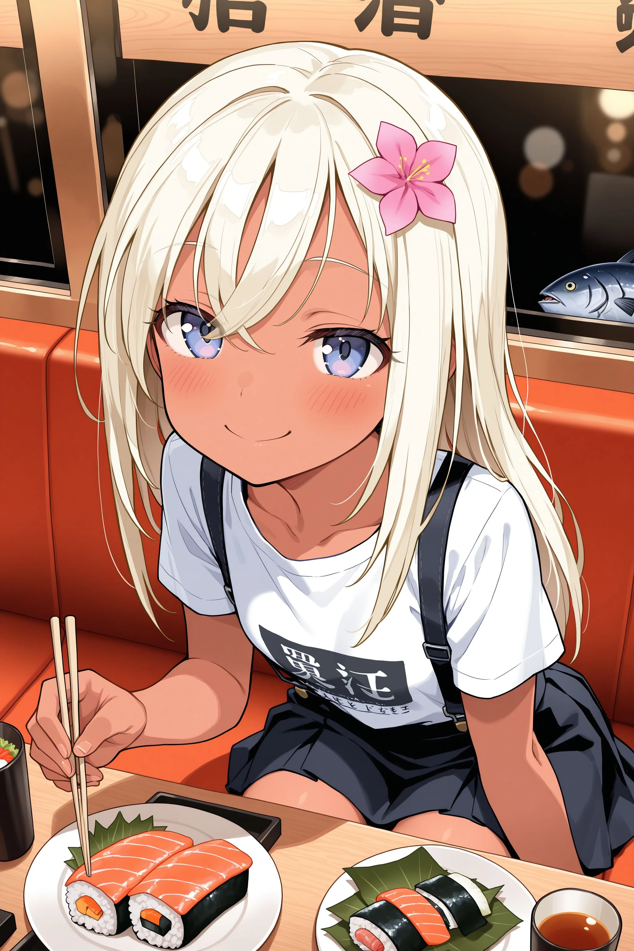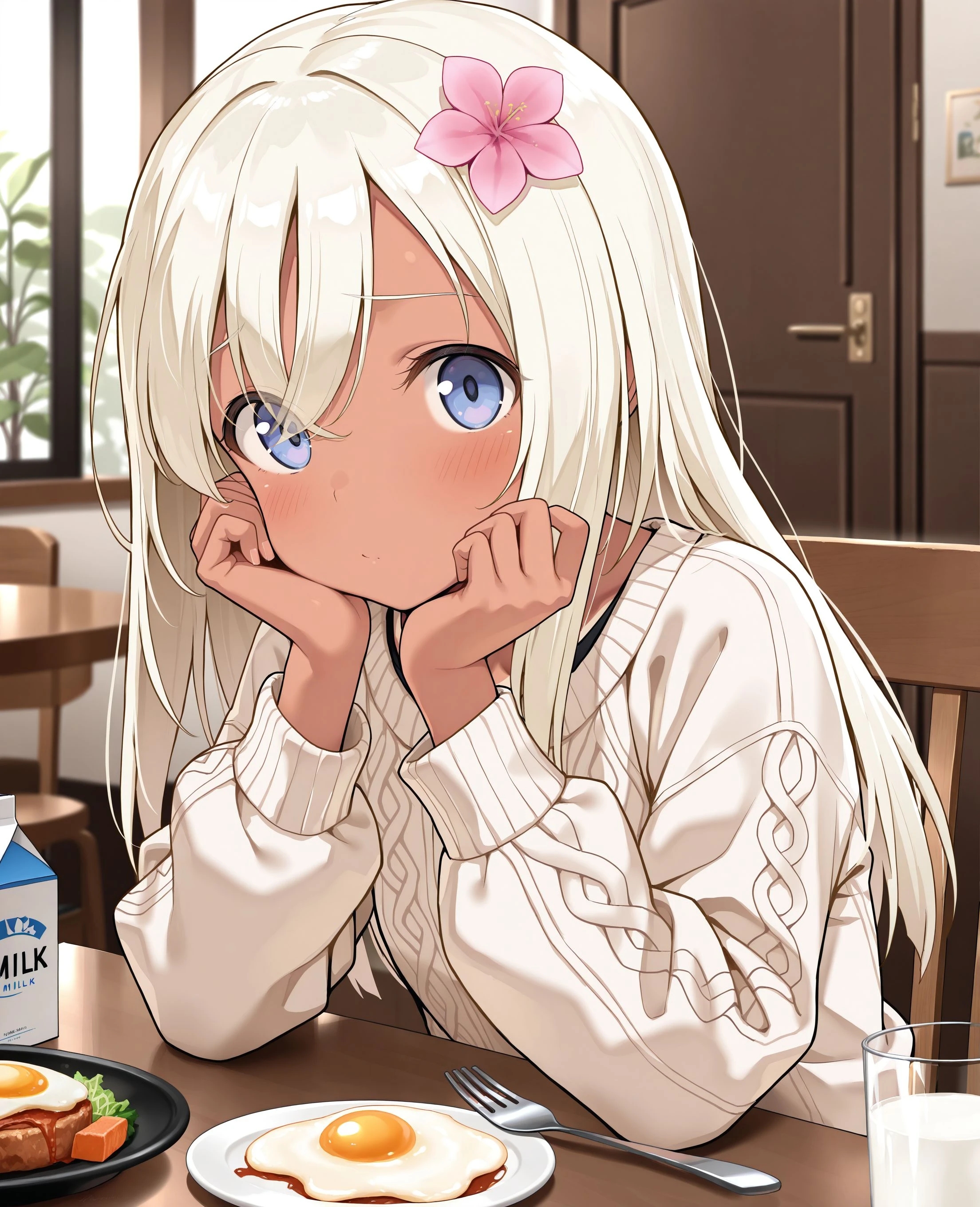 small breasts, platinum blonde hair, blue eyes,