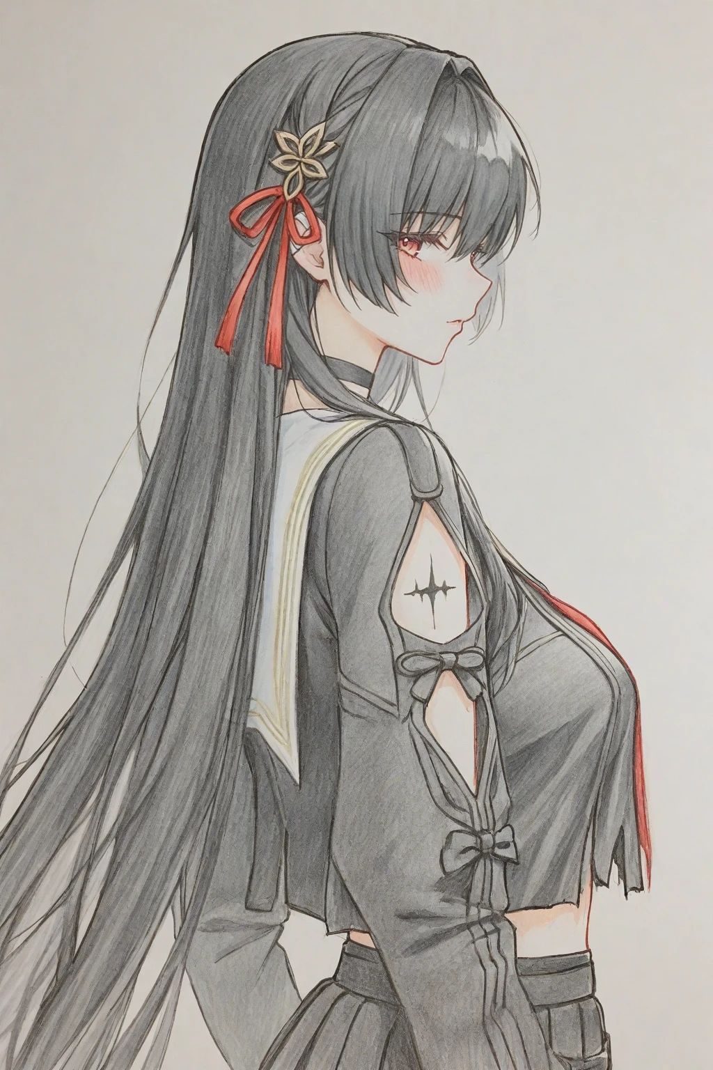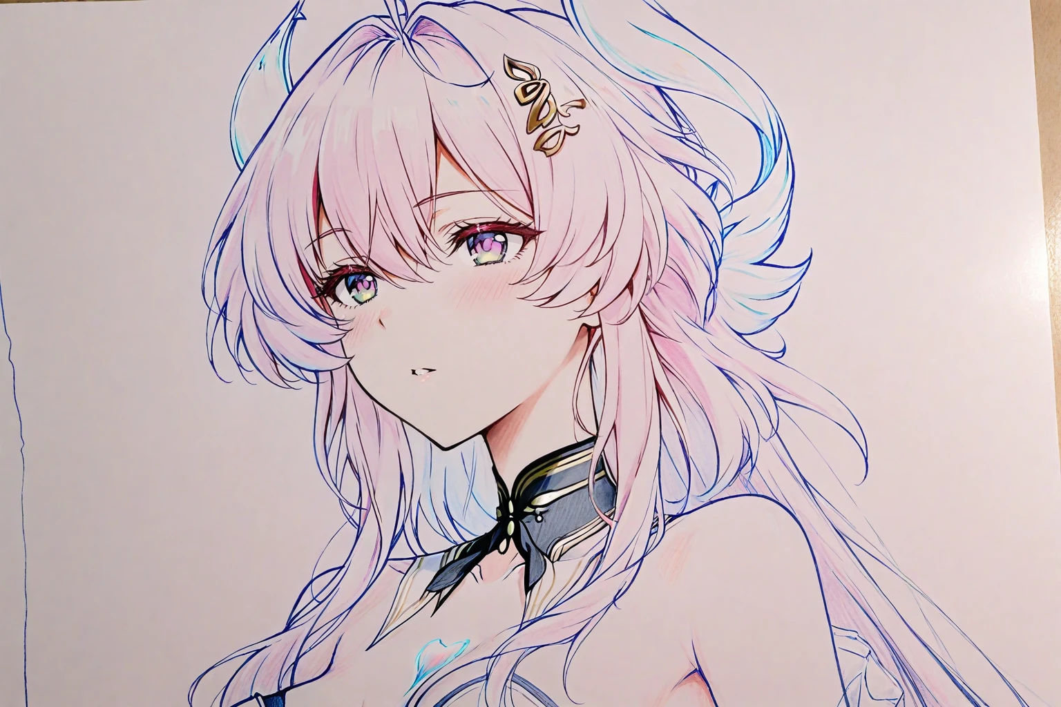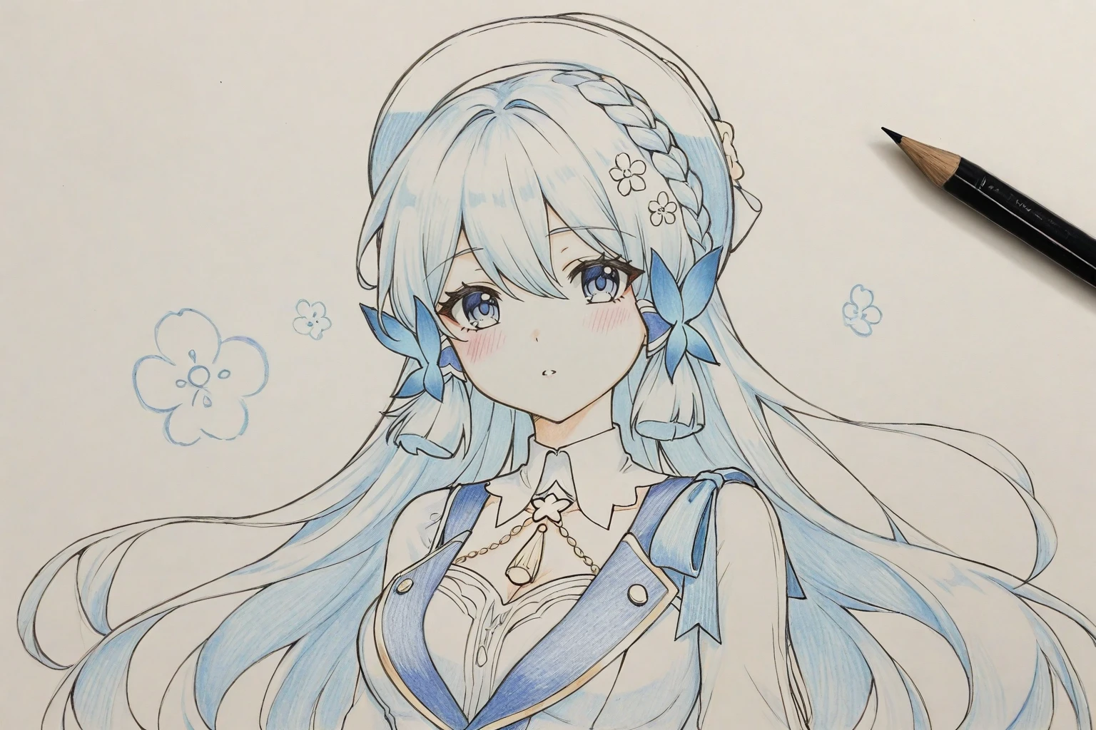 Optional reference keywords:pencil drawing, traditional hand-drawn, paper texture, hand-drawn, hand-drawn illustration, colored pencil sketch, pencil line art, light color wash, delicate linework, soft brushstrokes, smooth line art, soft pastel tones, pink color palette, low saturation colors, soft color blending, soft lighting, flat shading, minimal shadows, anime hand-drawn style, fresh and elegant aesthetic, delicate texture,