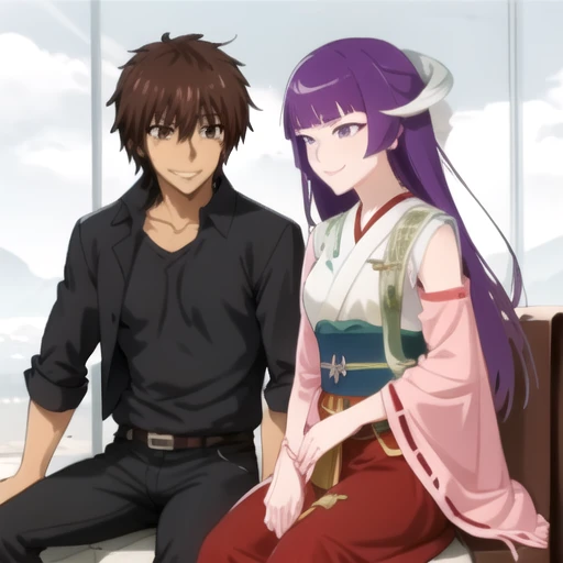 SaiFeatherine, a man and a woman, hetero, standing, smile, cowboy shot