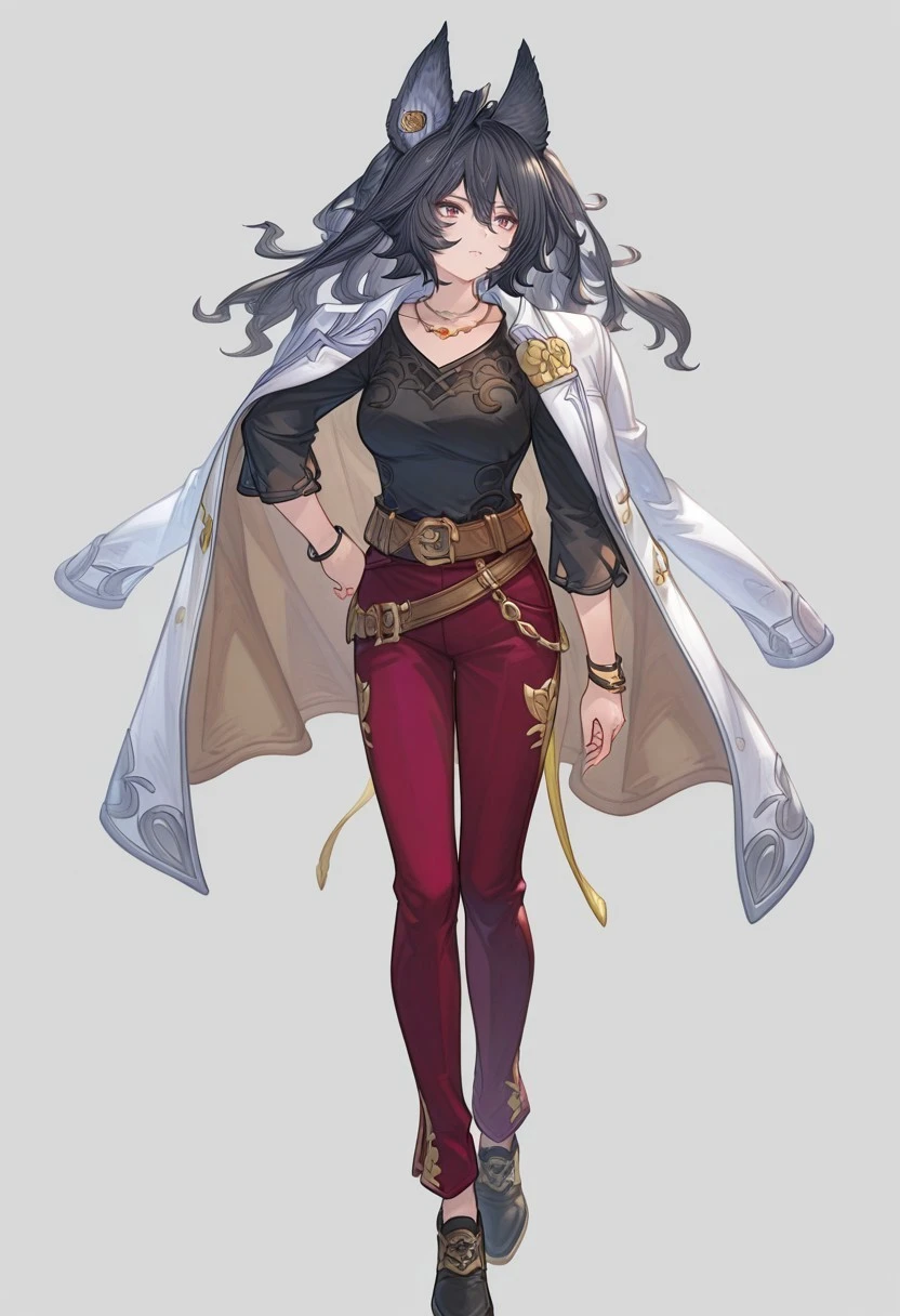 Add "cslgbil, shirt, jacket on shoulders, messy hair, pants, belt, bracelet, necklace, shoes,'' for her casual appearance.