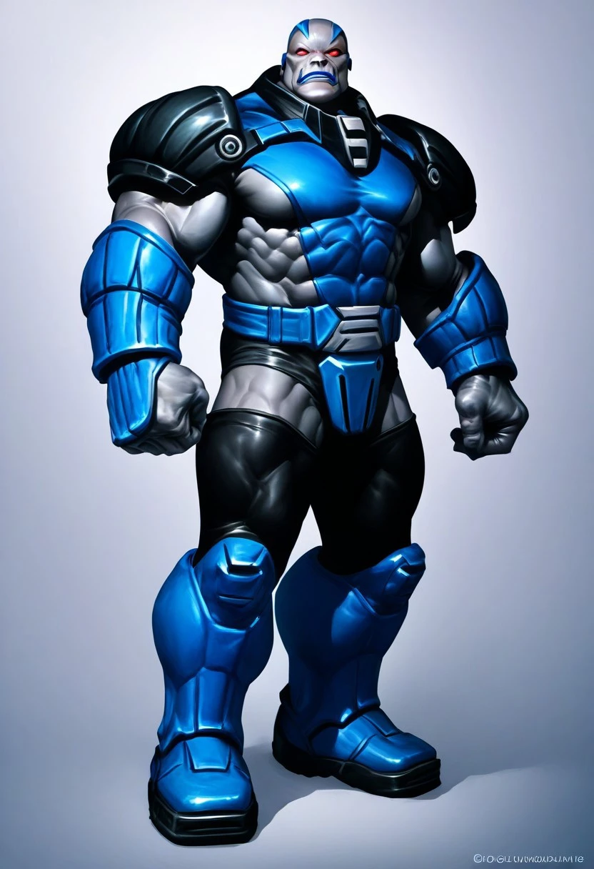 1boy, x_apocalypse, grey skin, blue lips, red sclera, bald, villain costume, muscular,