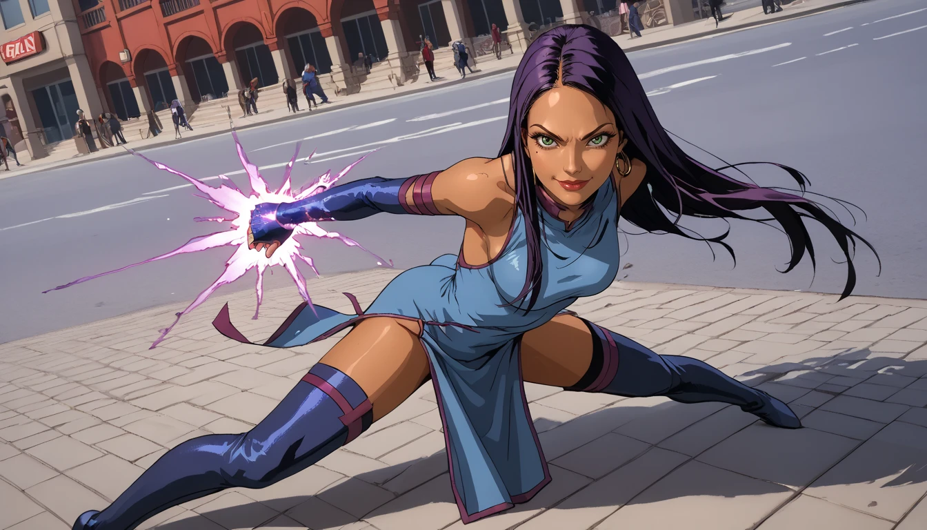 【Trigger word】: PsylockeWATX, Purple Hair, Long Hair, Green Eyes, dark skin female,