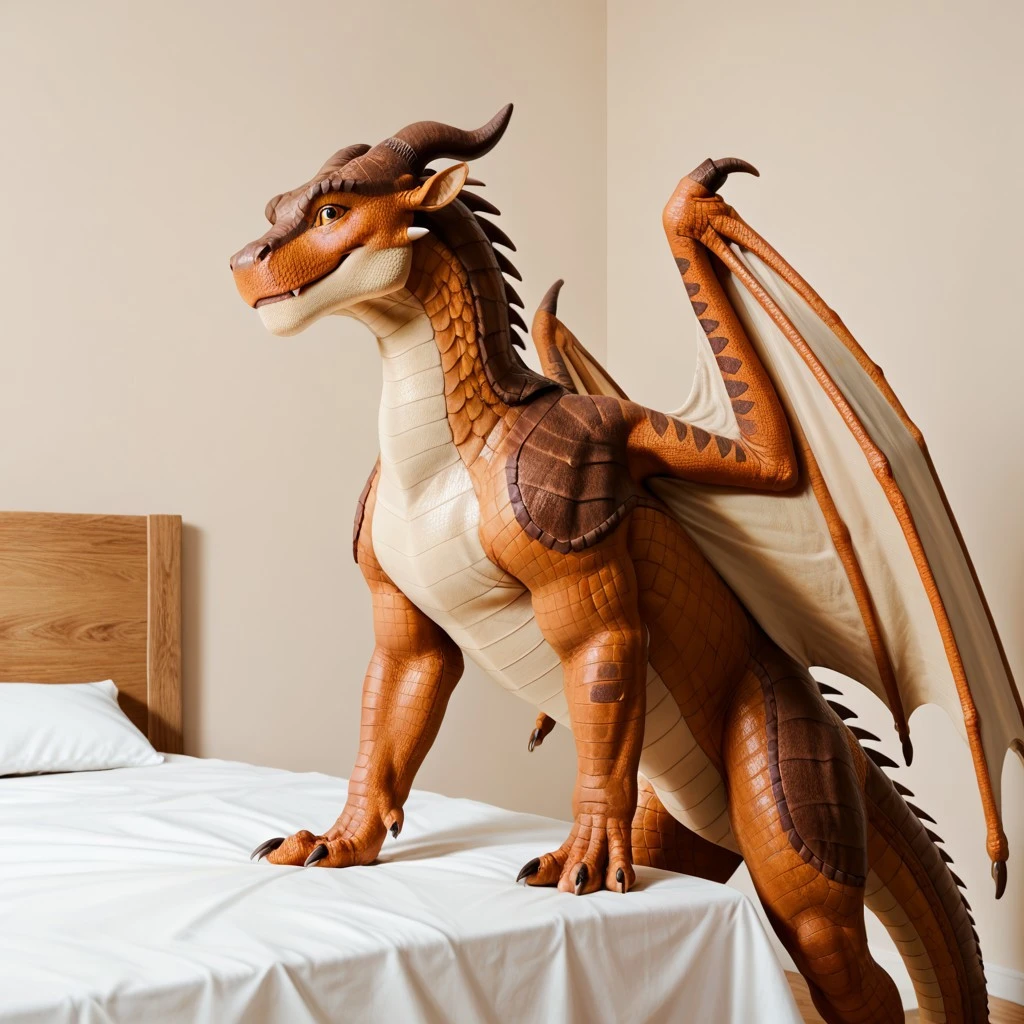 Additional Prompt: brown scales, dragon, horns, claws, wings, tail