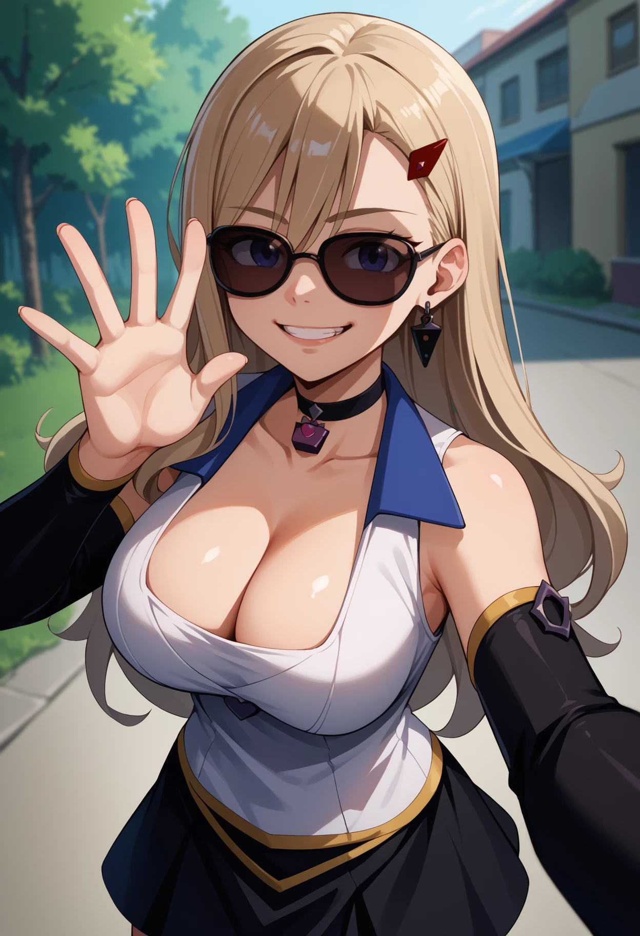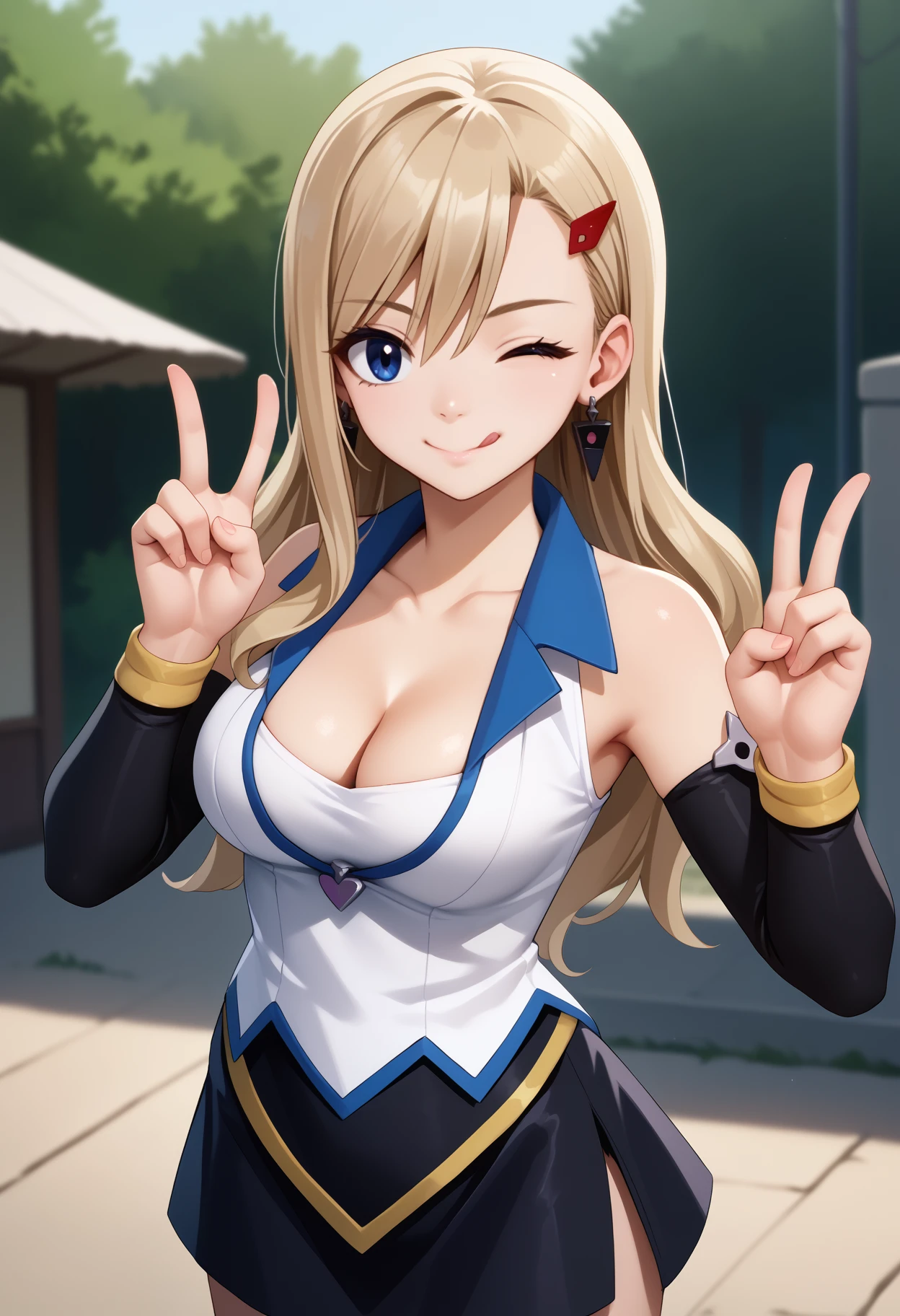 Trigger + Appearance: rbcblgrdn, long hair, blonde hair, hair ornament, hairclip, blue eyes, large breasts