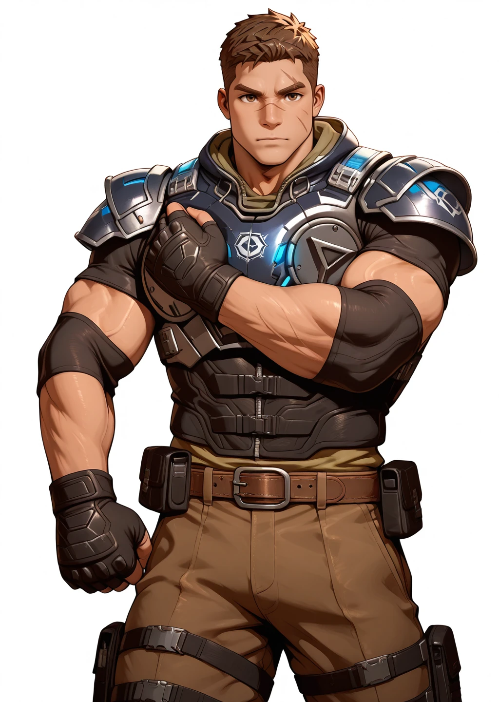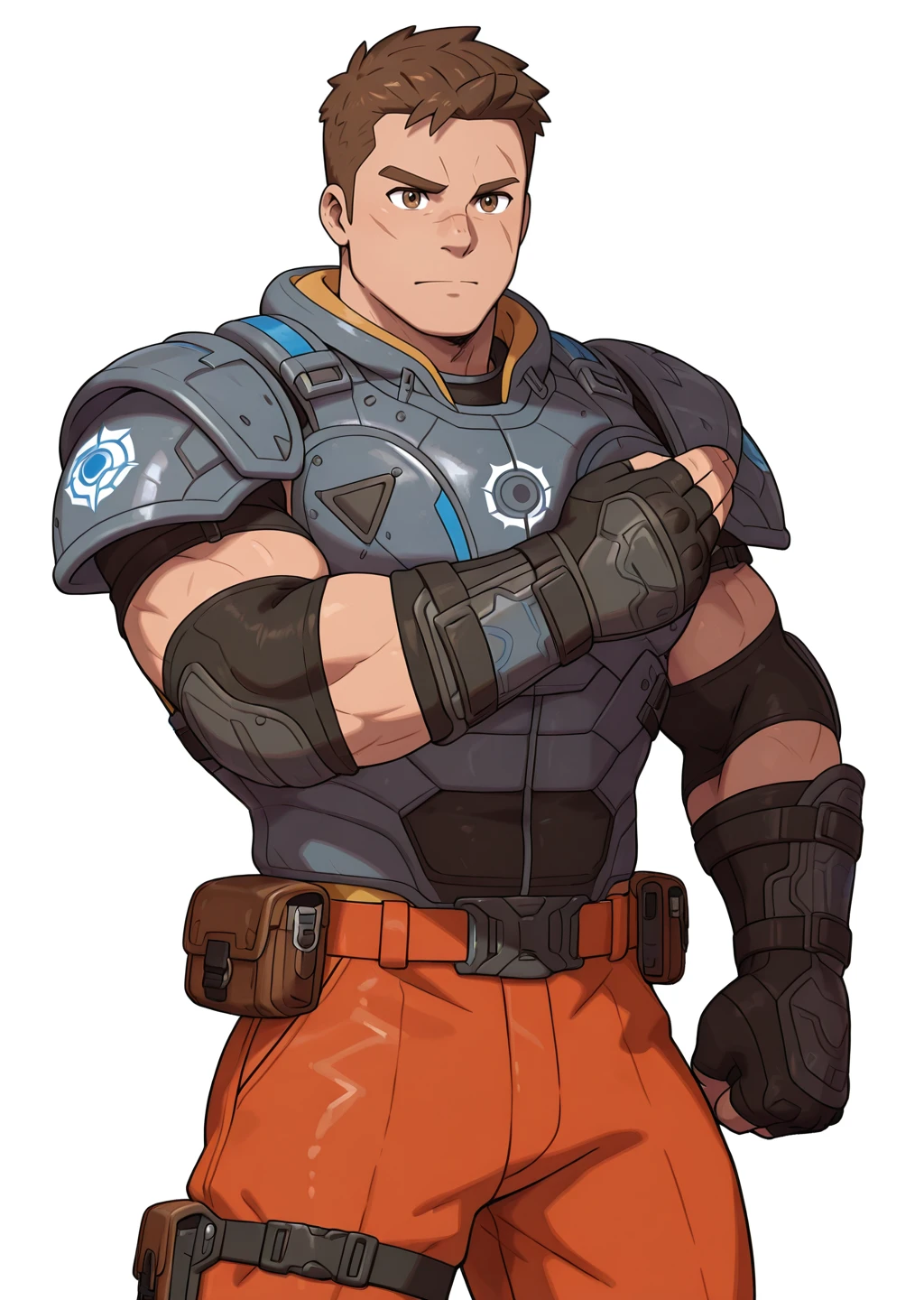 I made JD Fenix (his complete name is James Dominic Fenix which shared name from Marcus's deceased friend, Dominic Santiago) from Gears of War. He's son of Marcus Fenix, a well-known legendary Gear, and his mother Anya Stroud, also a well-known Gear too. JD appear in Gears of War 4 and 5. He's a member of Delta Squad, alongside with Kait and Del. He's trained by Clayton Carmine during his early day as a COG Gear. JD on Gears 4 has different appeareance from Gears 5--he's bald and has beard. In this version, I made JD from Gears of War 4 which he has short hair and no beard.