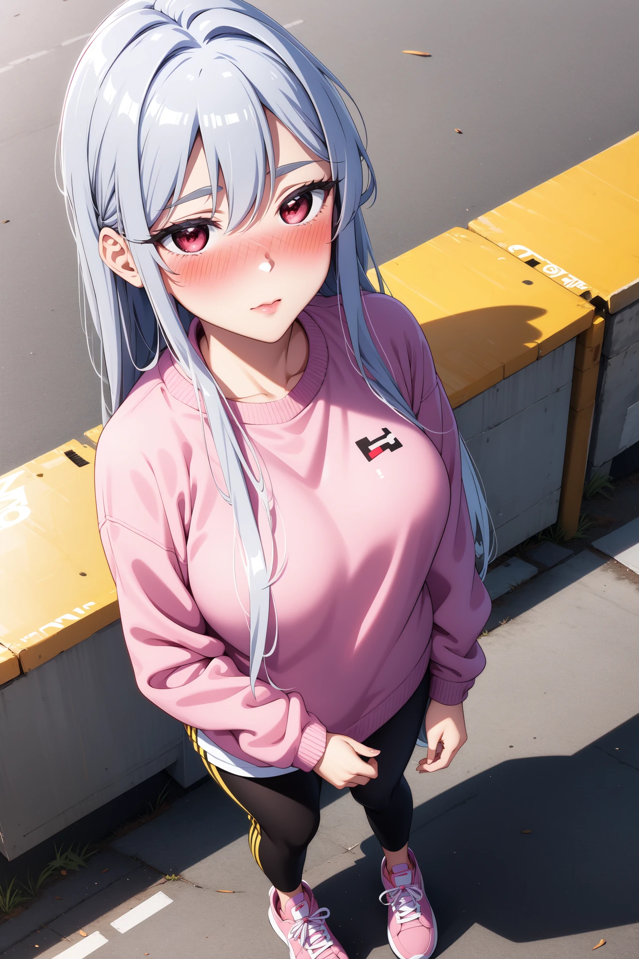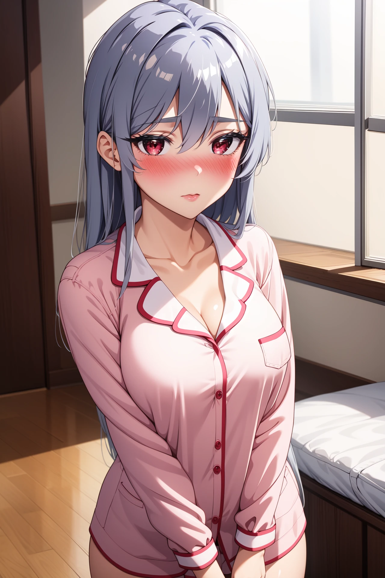 1- nano eiai, long hair, bangs, hair between eyes, red eyes, grey hair,