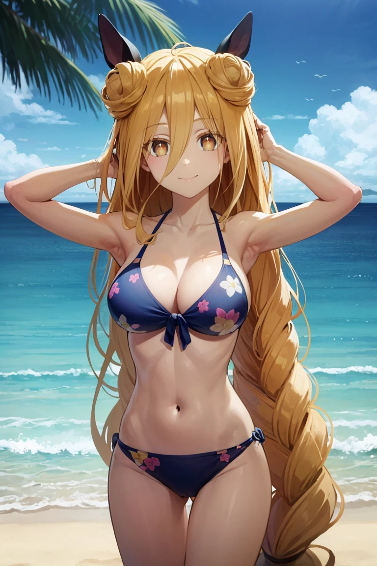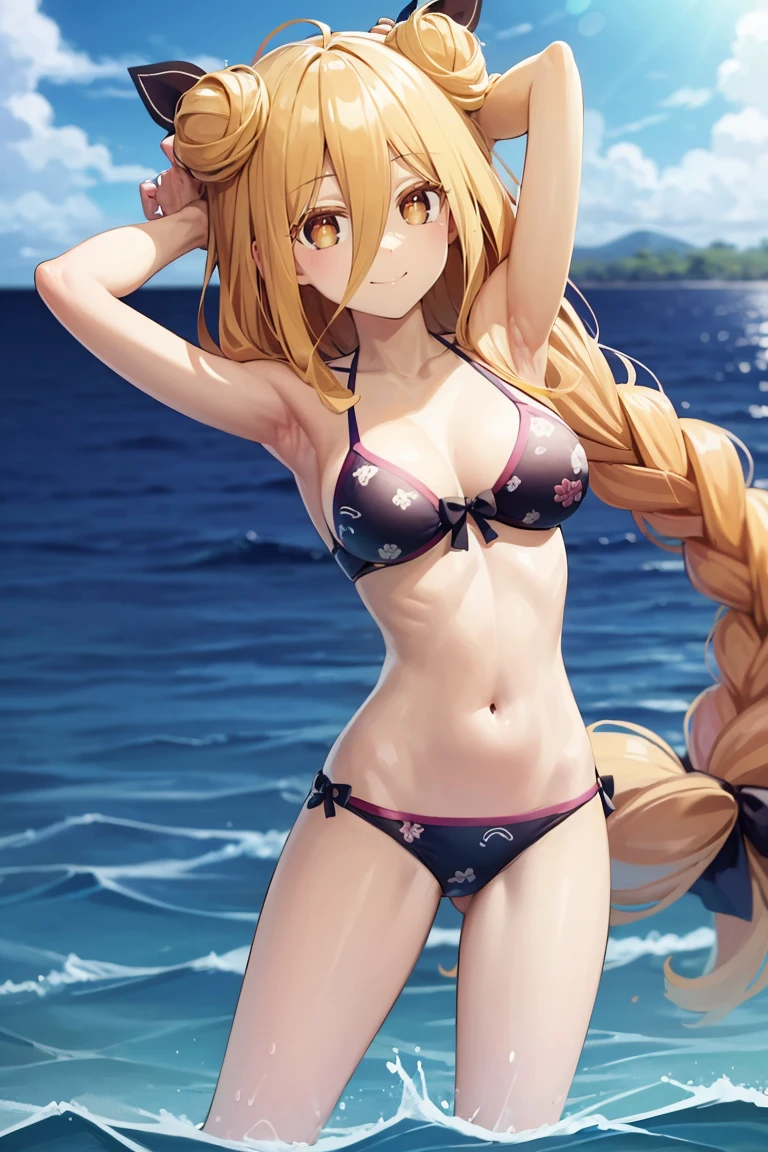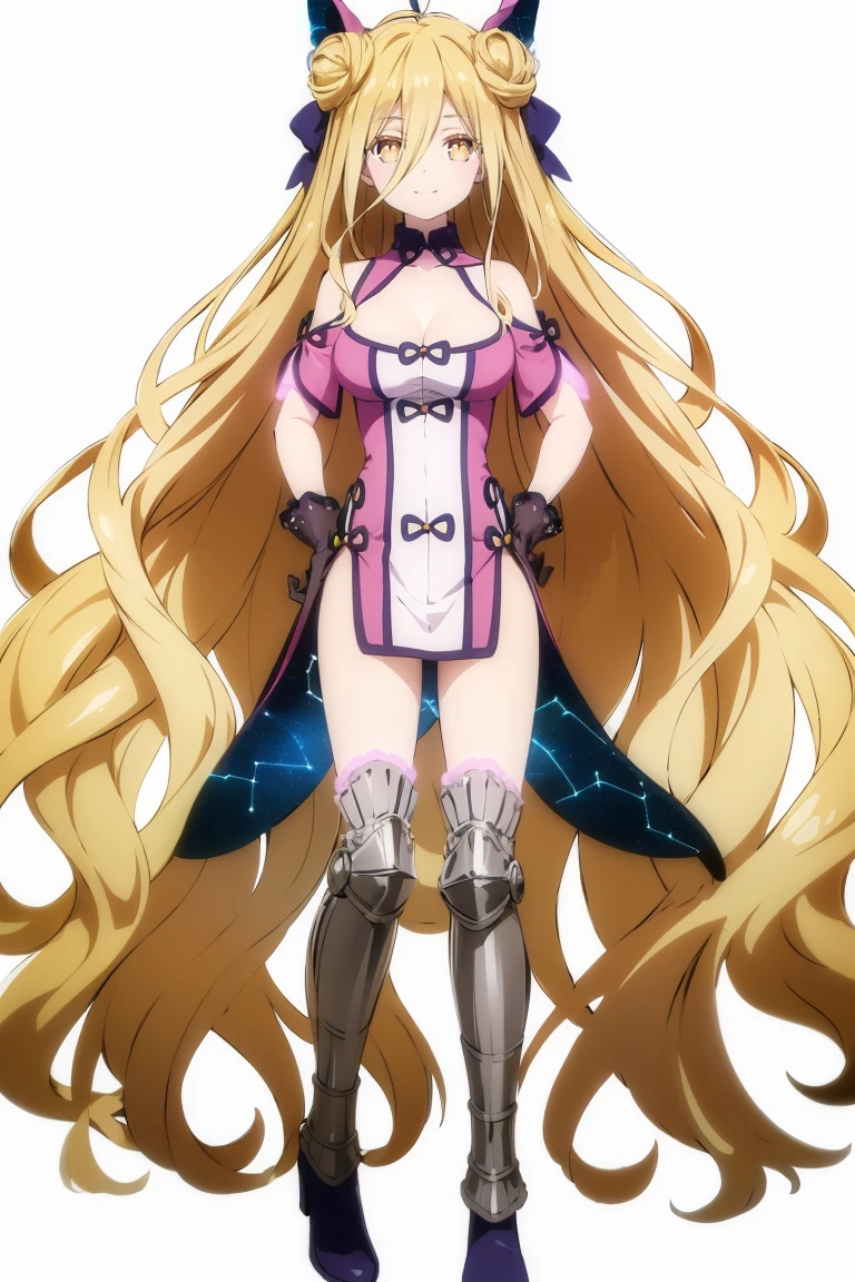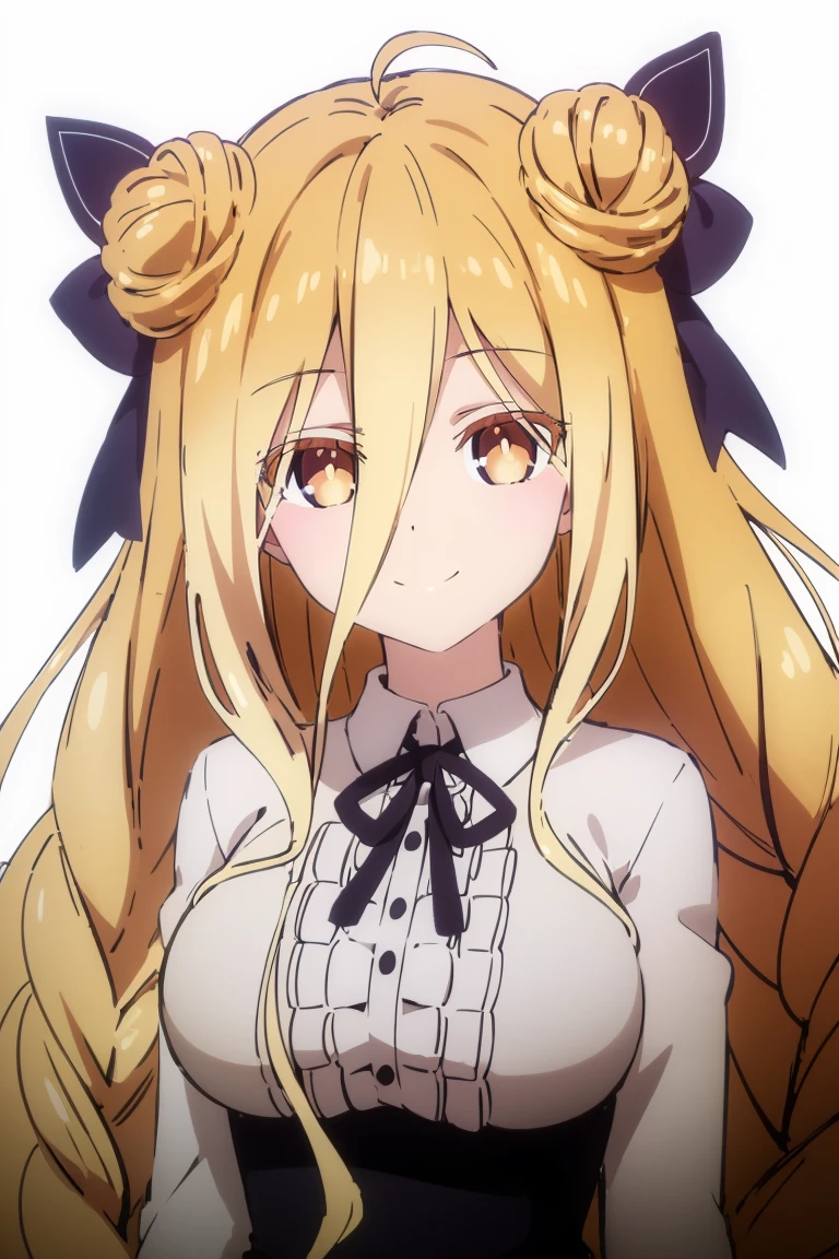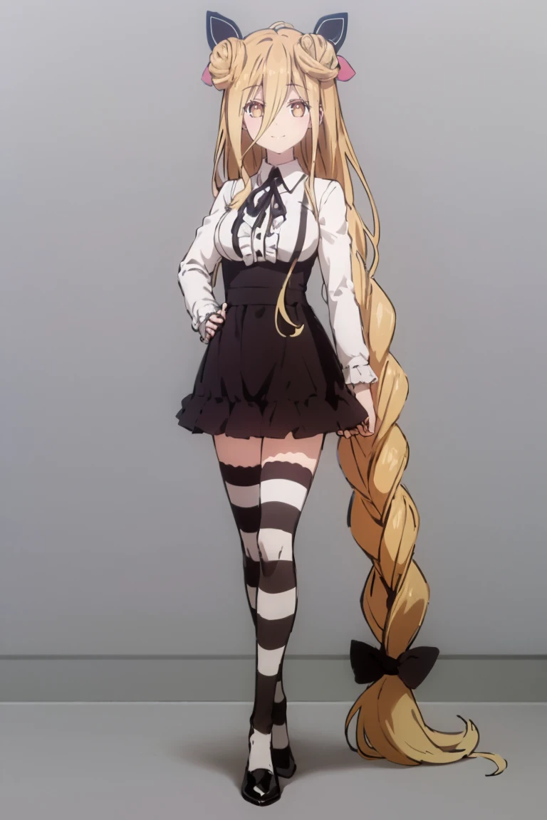 Basic prompts : 1girl, mukurohoshimiya, single braid, blonde hair, very long hair, double hair bun, hair between eyes, yellow eyes, bangs, hair bow