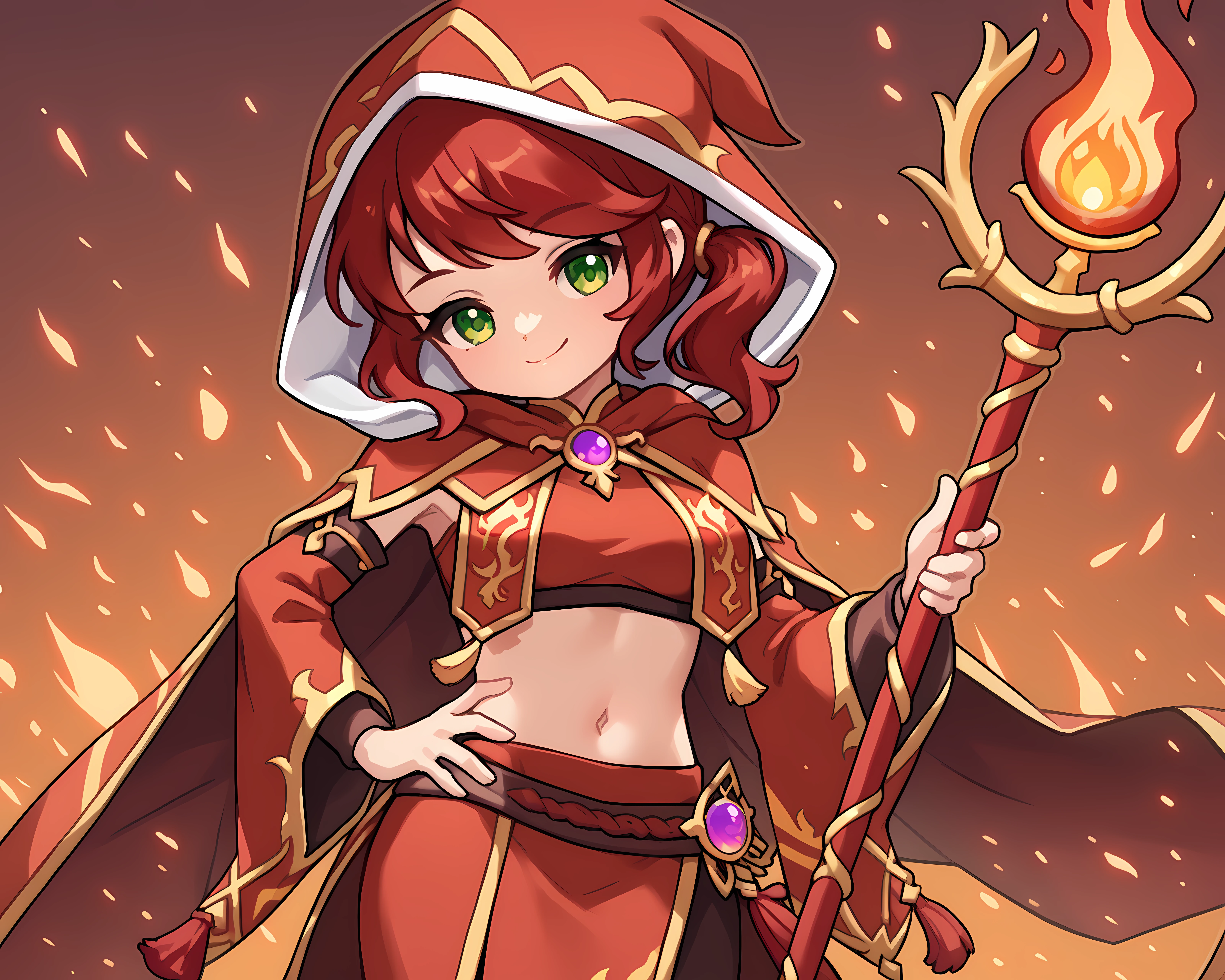 If you cant get Irena's default top, try prompting "green babydoll, bare shoulders, shoulder straps, navel" and "floating clothes".