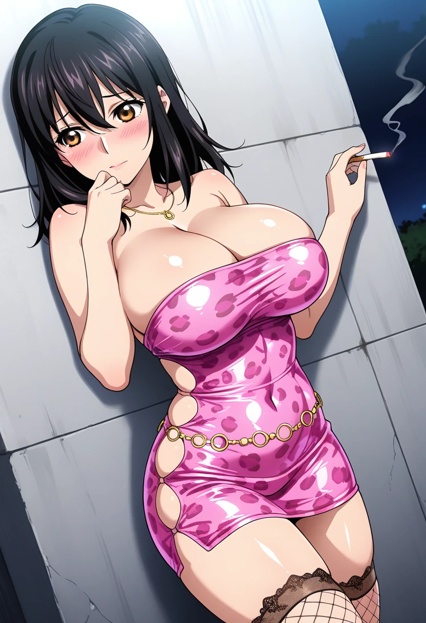 <lora:tuuevor_reietui_ndevyeb_llbeev24:0.8>, dress,pink dress,short dress,tight dress, strapless dress,microdress,pencil dress,taut dress, tight clothes,taut clothes,shiny clothes, necklace, fishnets,fishnet thighhighs,lace-trimmed legwear, animal print,leopard print, lace trim,o-ring,chain,gold chain,belly chain, side cutout,clothing cutout,side slit, strapless,skindentation,bare shoulders, cleavage,