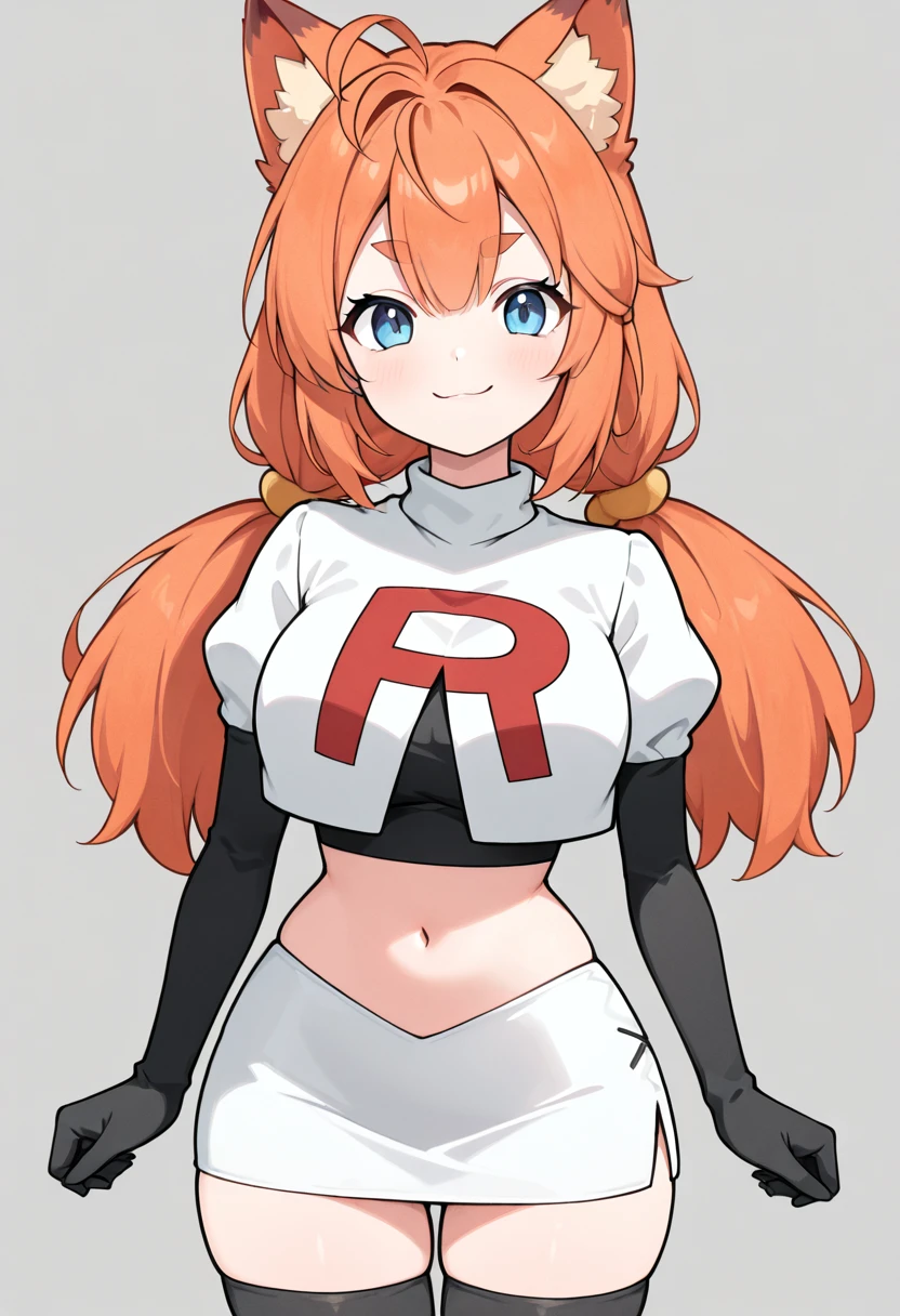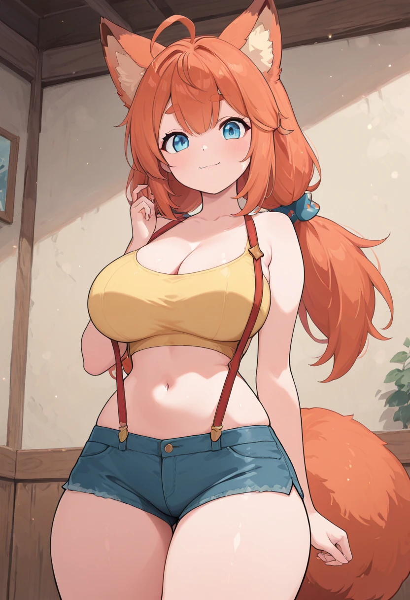zzAnn, blue eyes, ahoge, orange hair, fox ears, animal ear fluff, low twintails, short twintails,