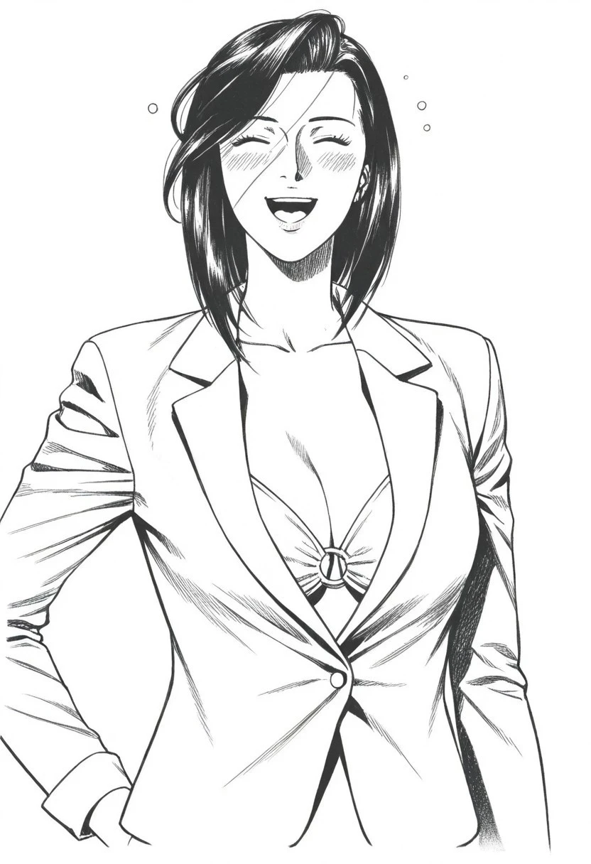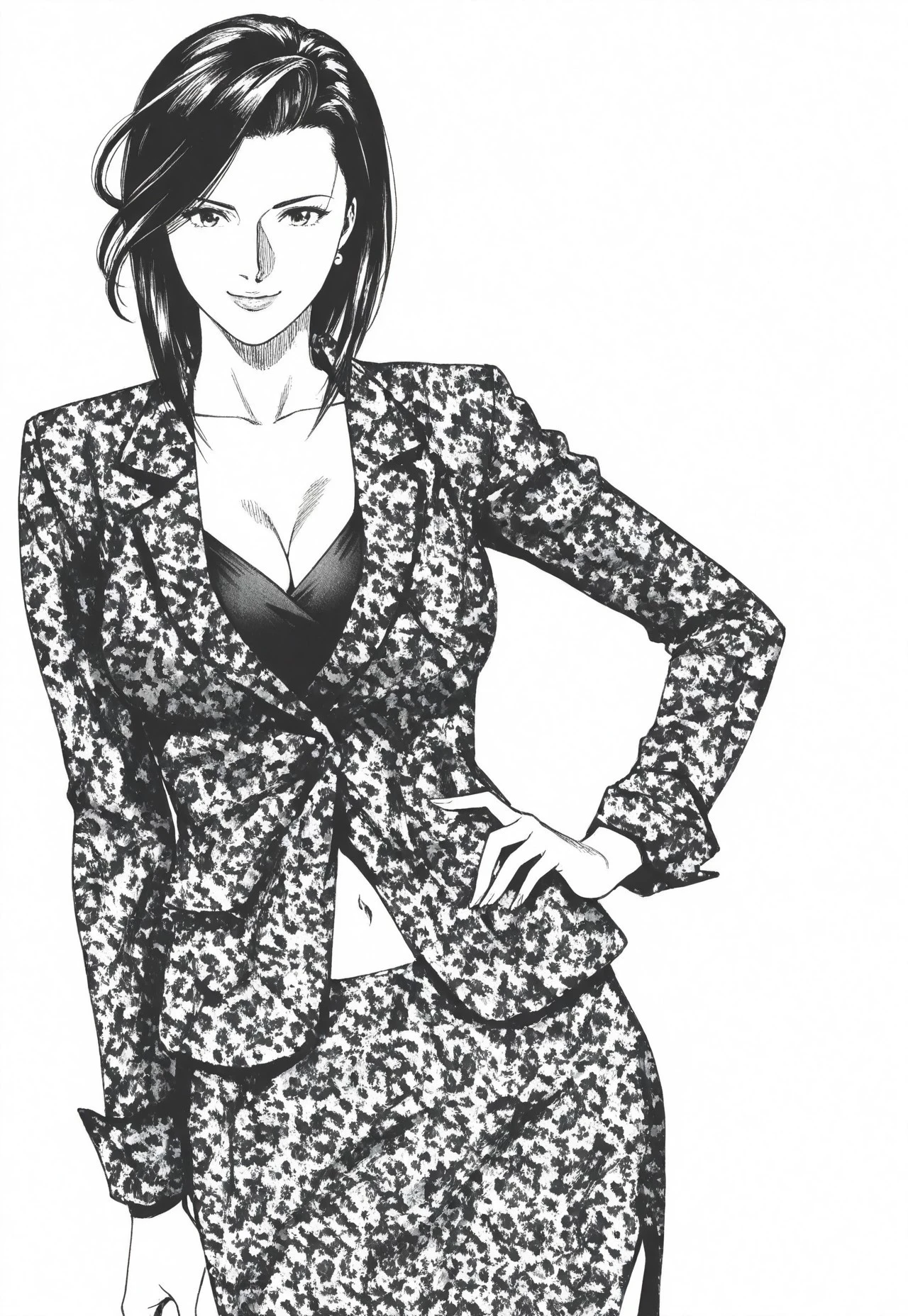 saenog, greyscale, monochrome, large breasts, medium hair, mature female, lips,