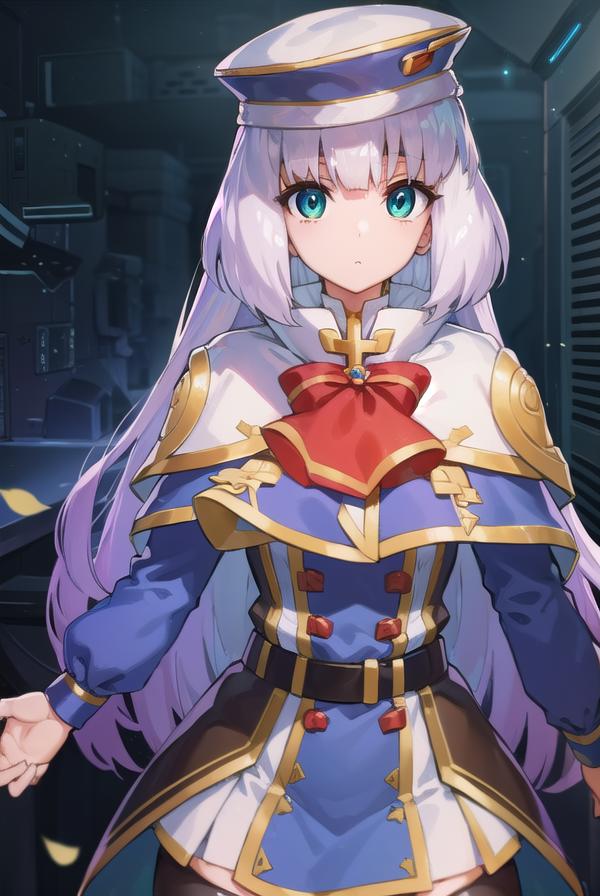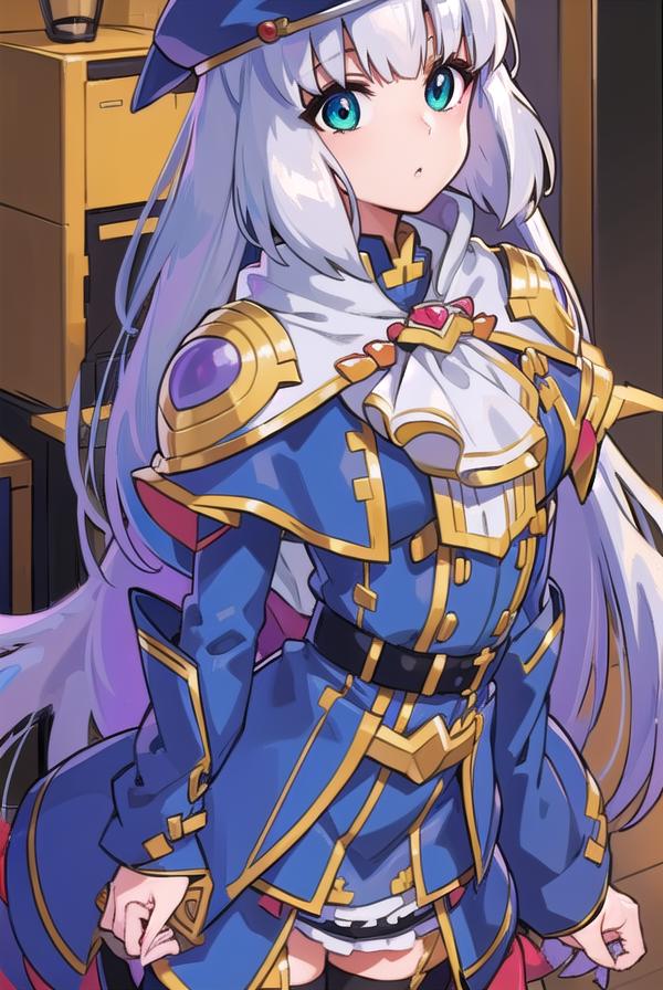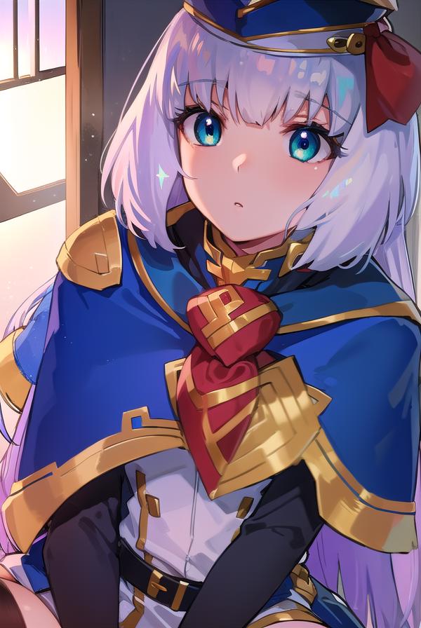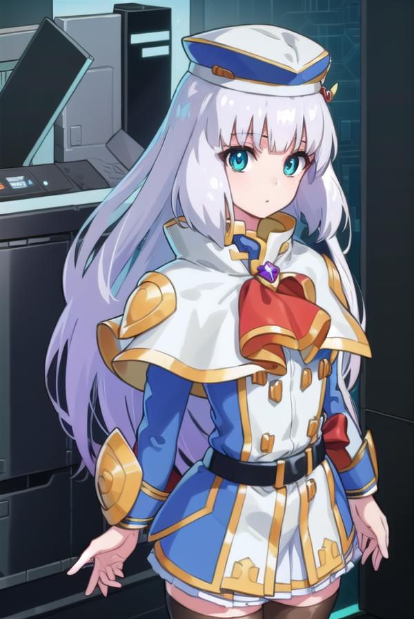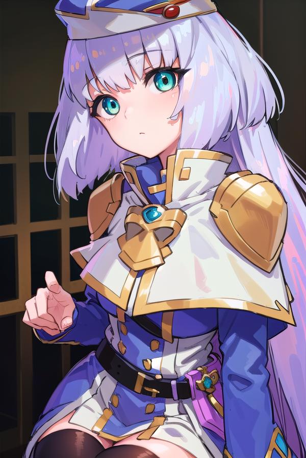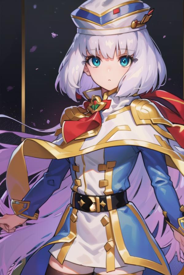 thighhighs, long sleeves, hat, dress, belt, black thighhighs, zettai ryouiki, ascot, capelet,