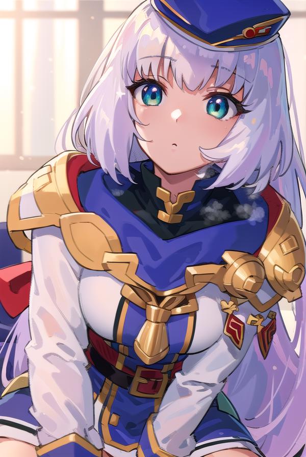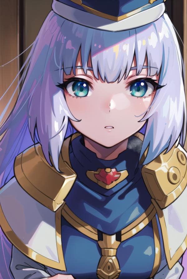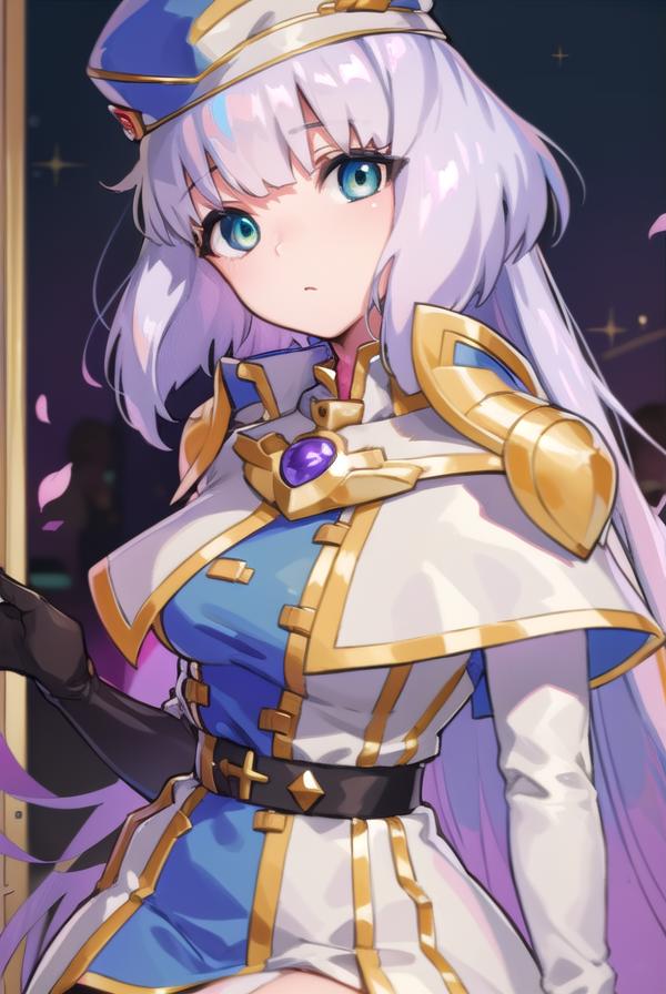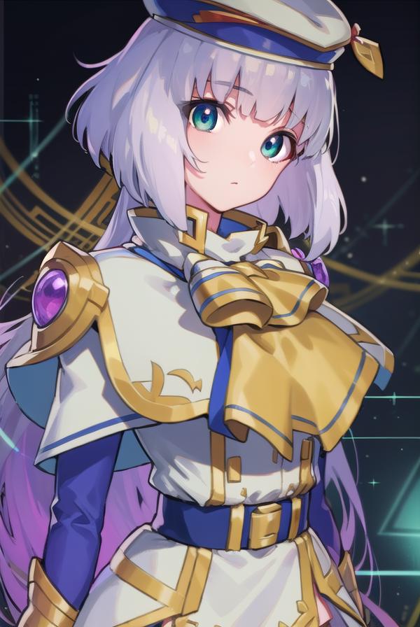 sthesia awar, long hair, (green eyes:1.5), white hair, gradient hair, bangs, blunt bangs, sidelocks, purple hair,