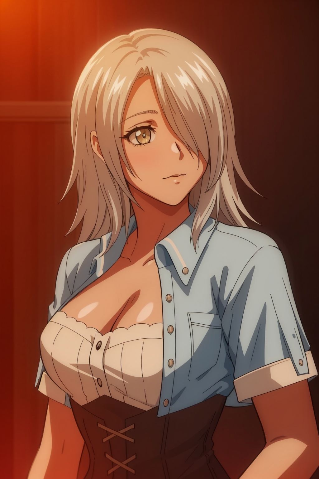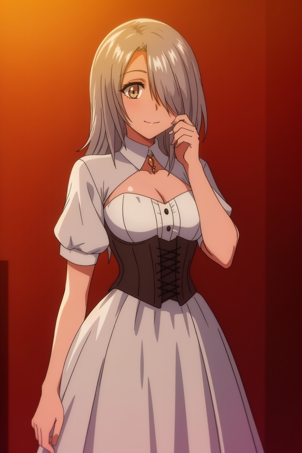 And yes,hair color,well it can turn dark,again like all white hair it's pretty vulnerable to promt,also in my dataset I had both of her hairstyles,so you might want to use the "hair over one eye" promt.