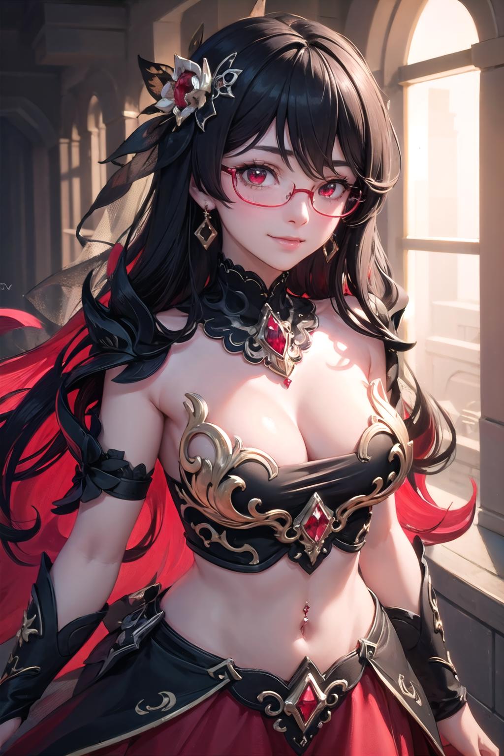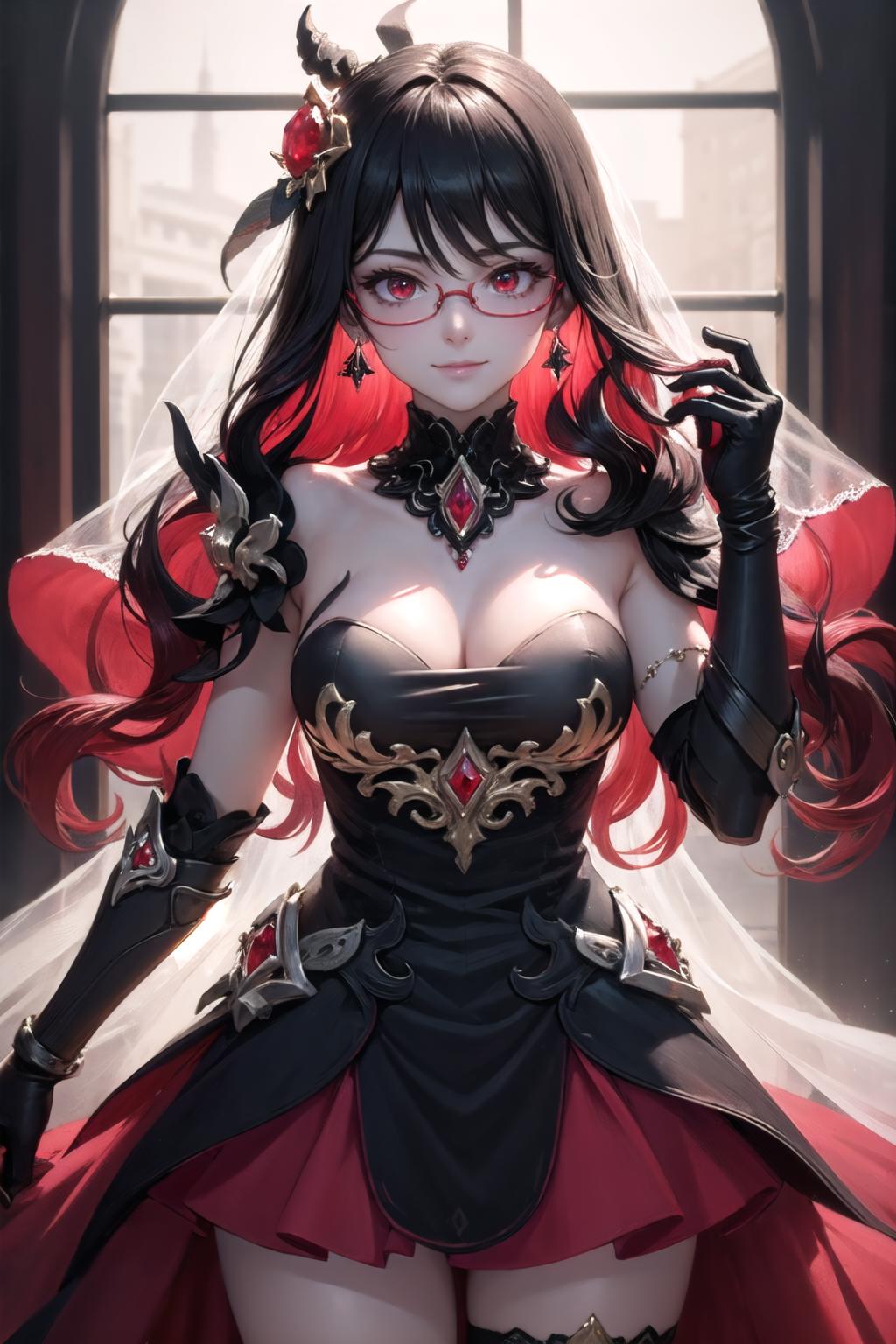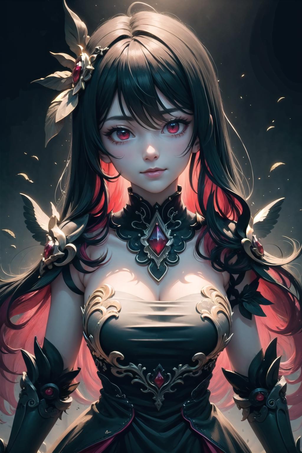 Helpers/Additional: red eyes,large breasts,cleavage