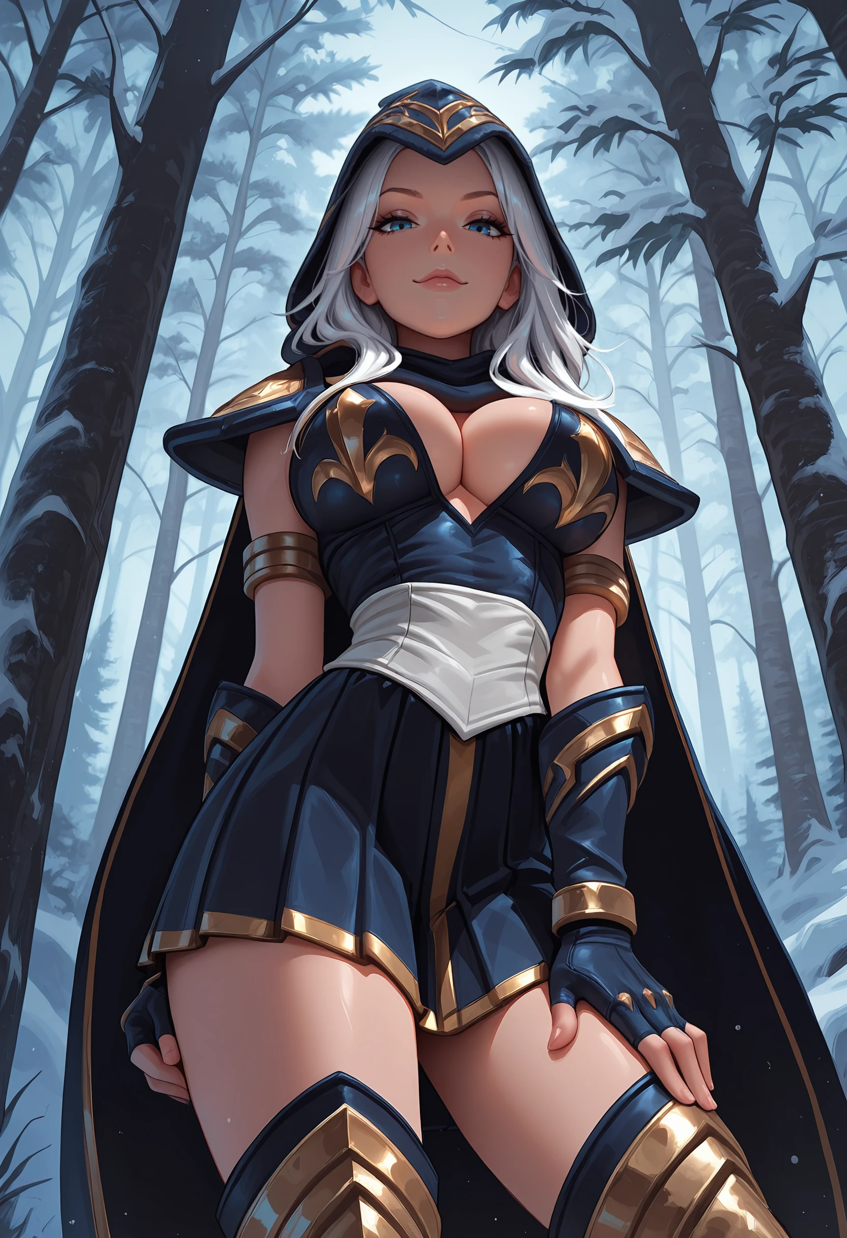 asheil, ?????????????, long hair, blue eyes, gloves, dress, armor, thighhighs, white hair, pleated skirt, boots, partially fingerless gloves, shoulder armor, hood, cape, armlet,I use V12 WAI-NSFW-illustrious-SDXL checkpoint for my images.