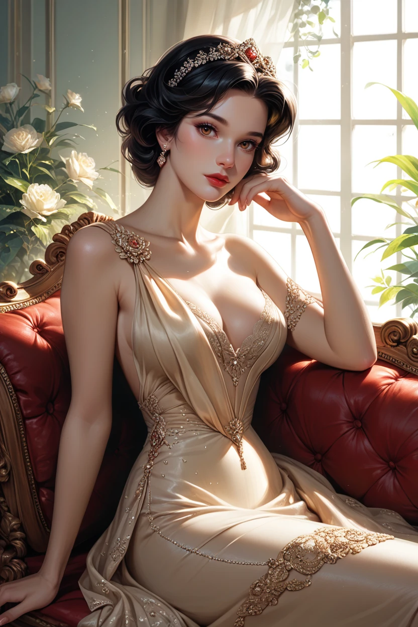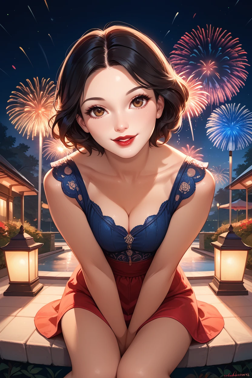 DisneySnowWhite, 1girl, black hair, brown eyes, red lips, short hair