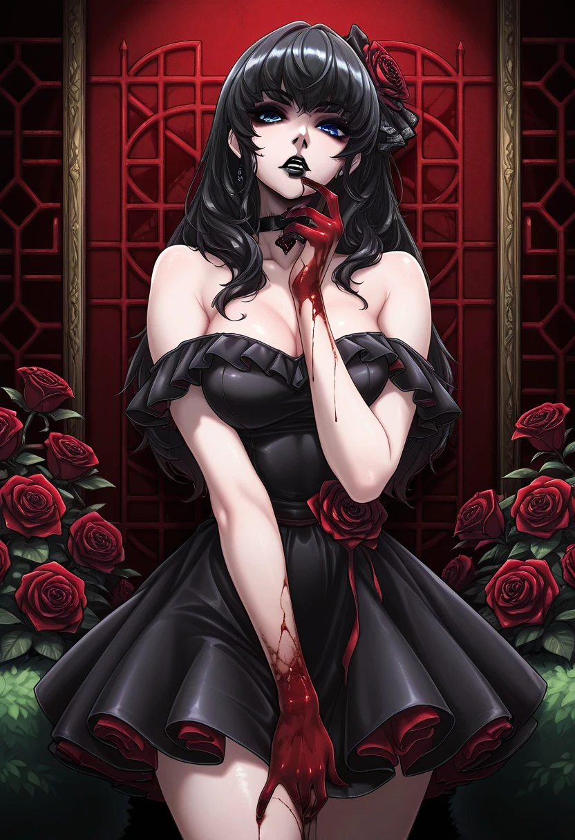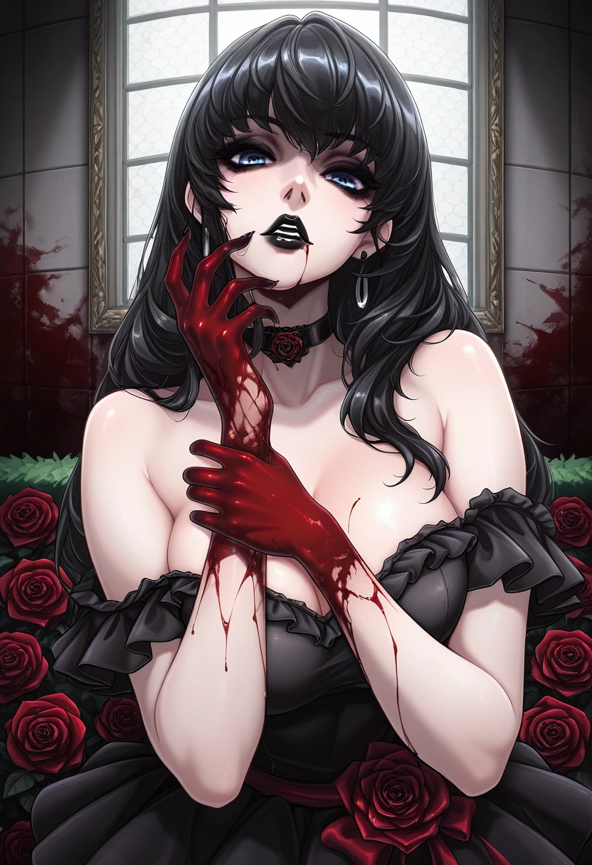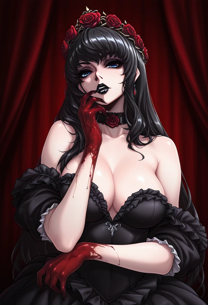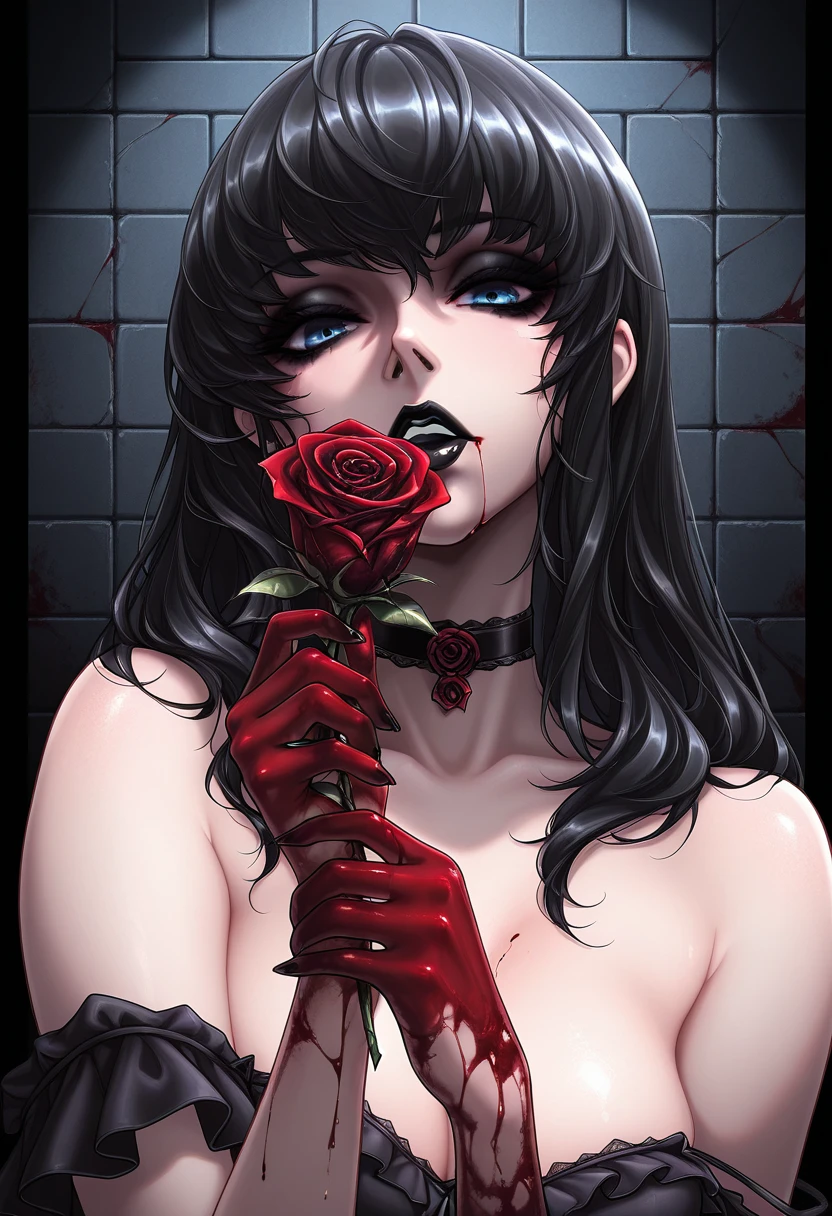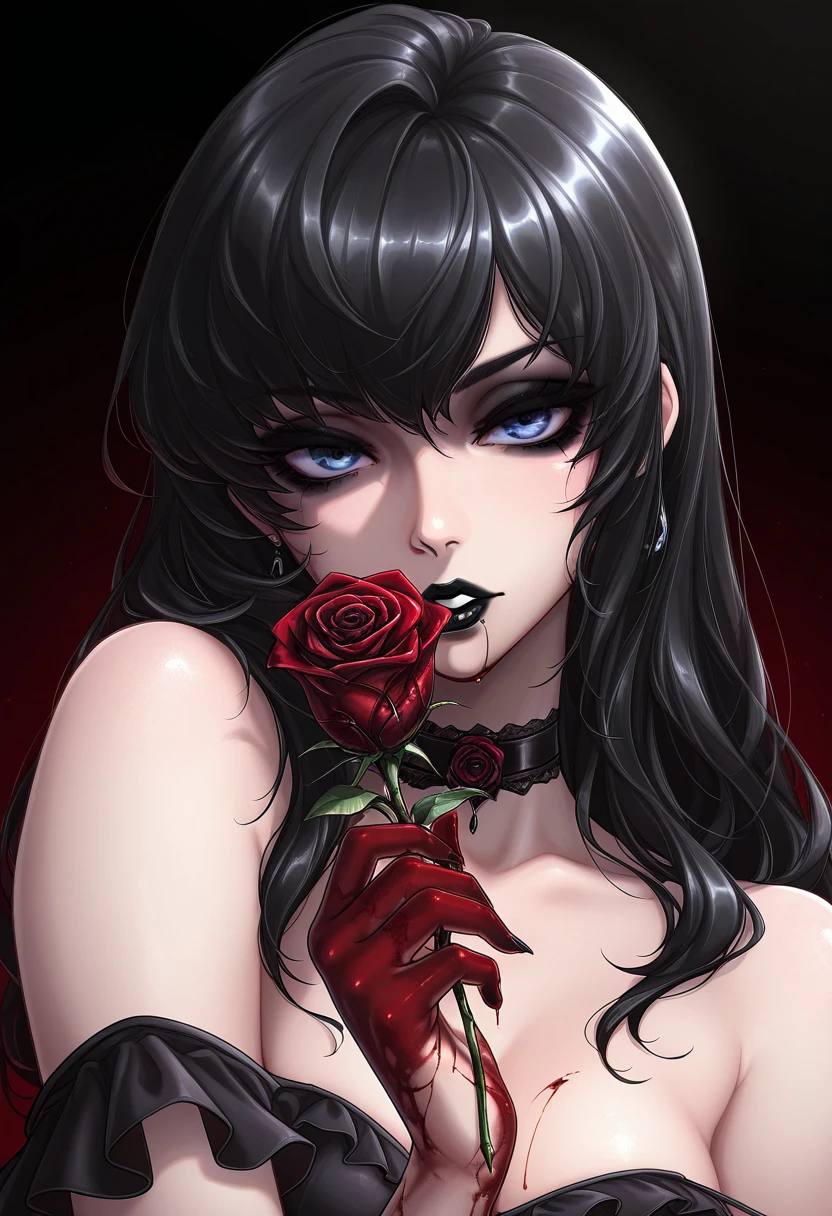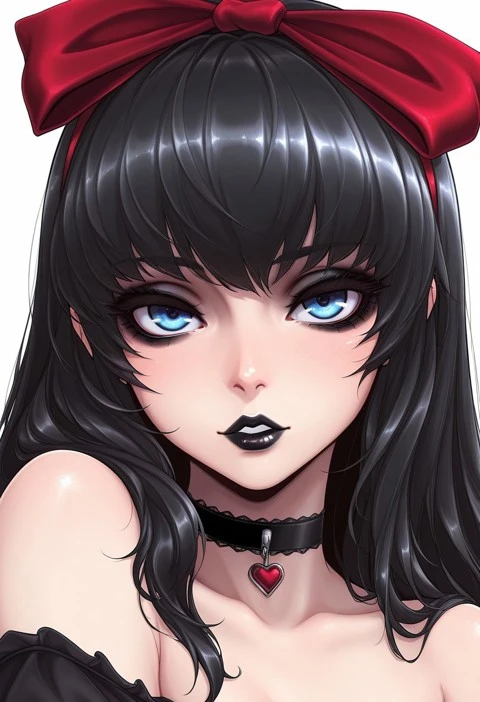 BLACK HAIR, BLUE EYES, BLACK LIPSTICK,